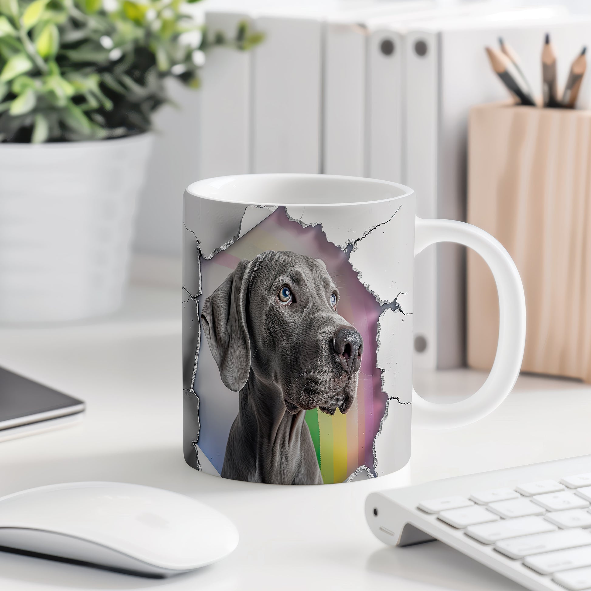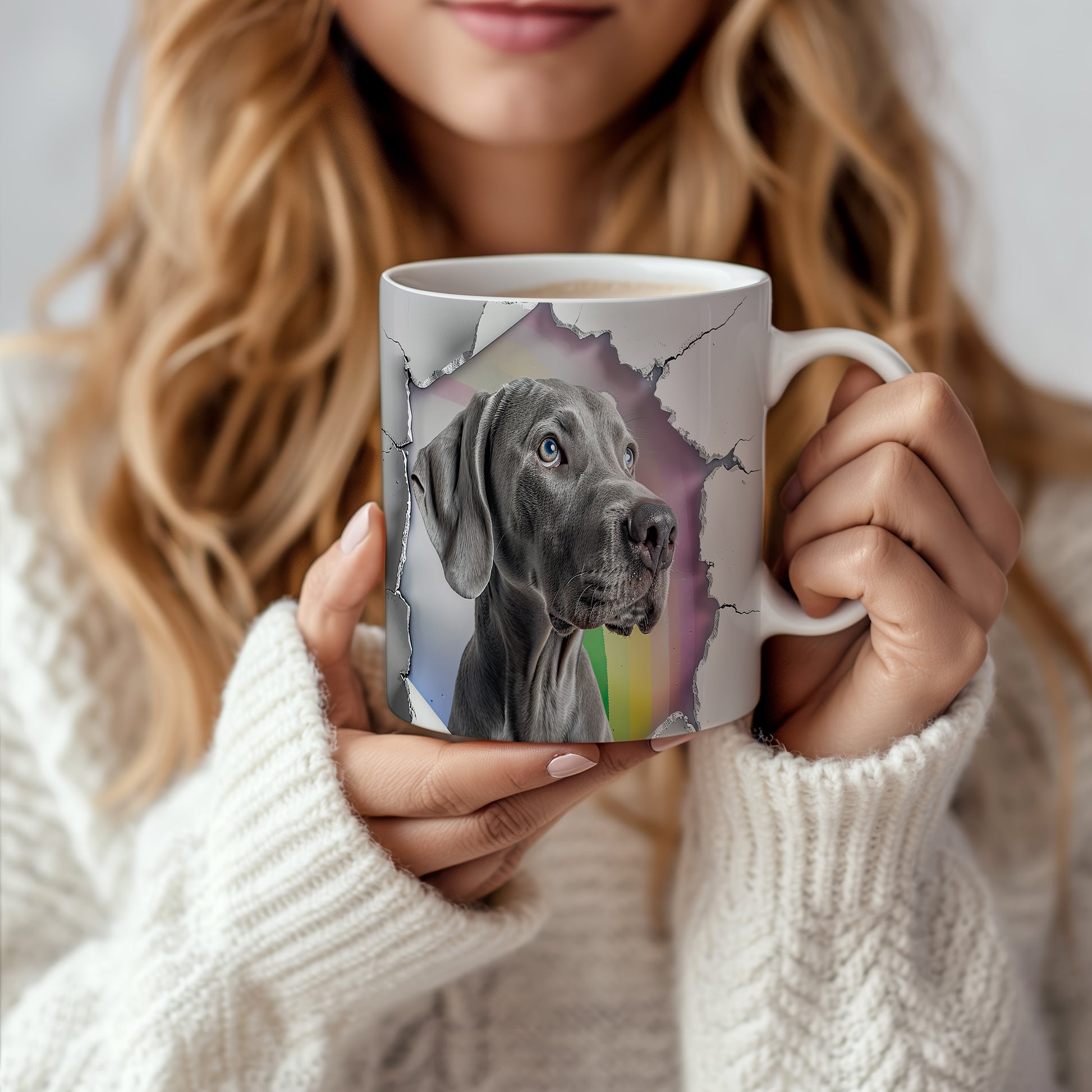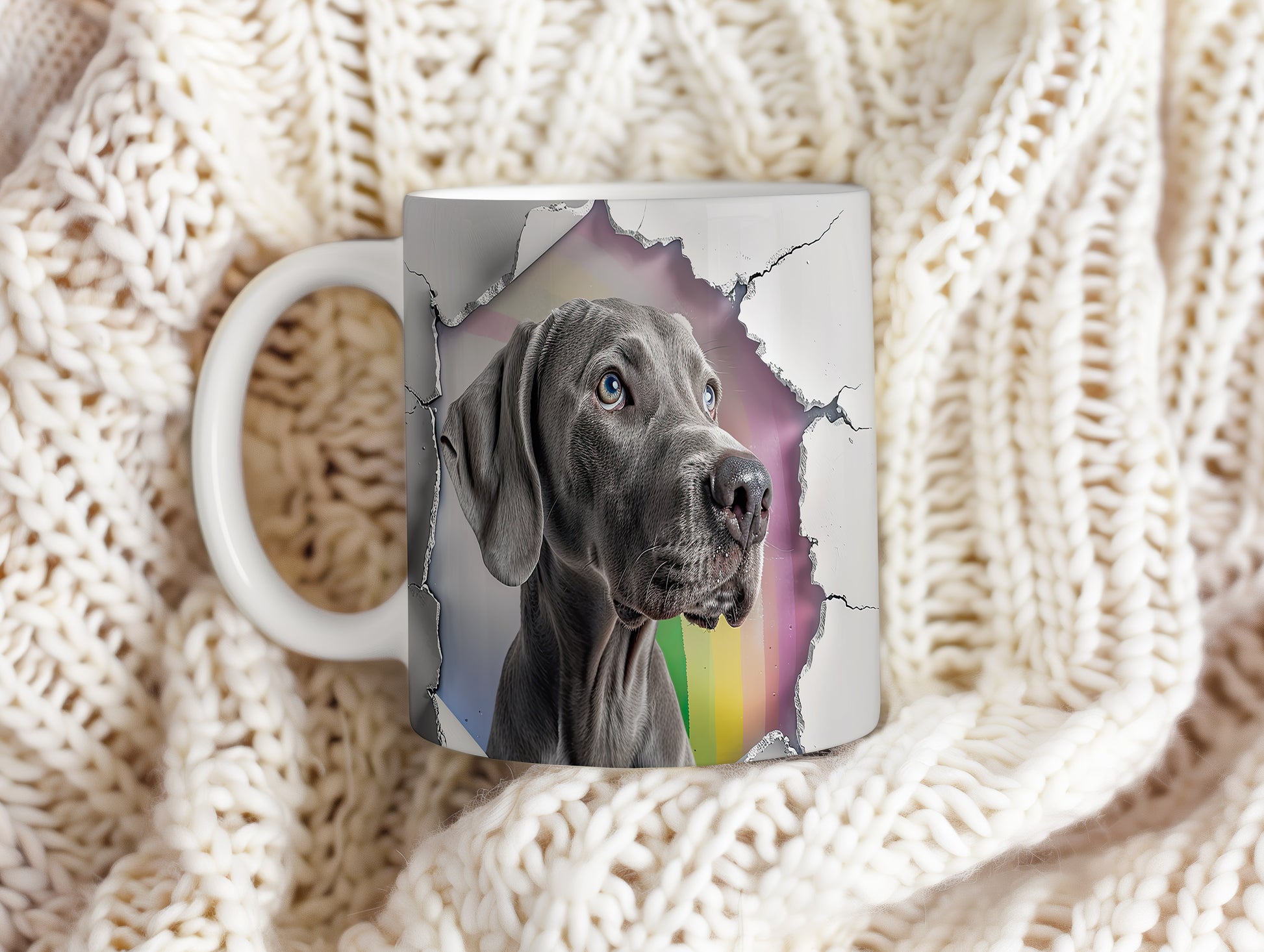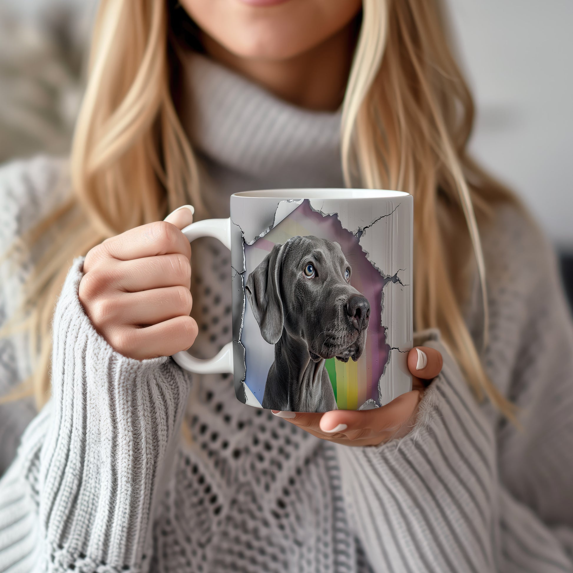 Hrnek se šedým ohařem a duhovým 3D efektem