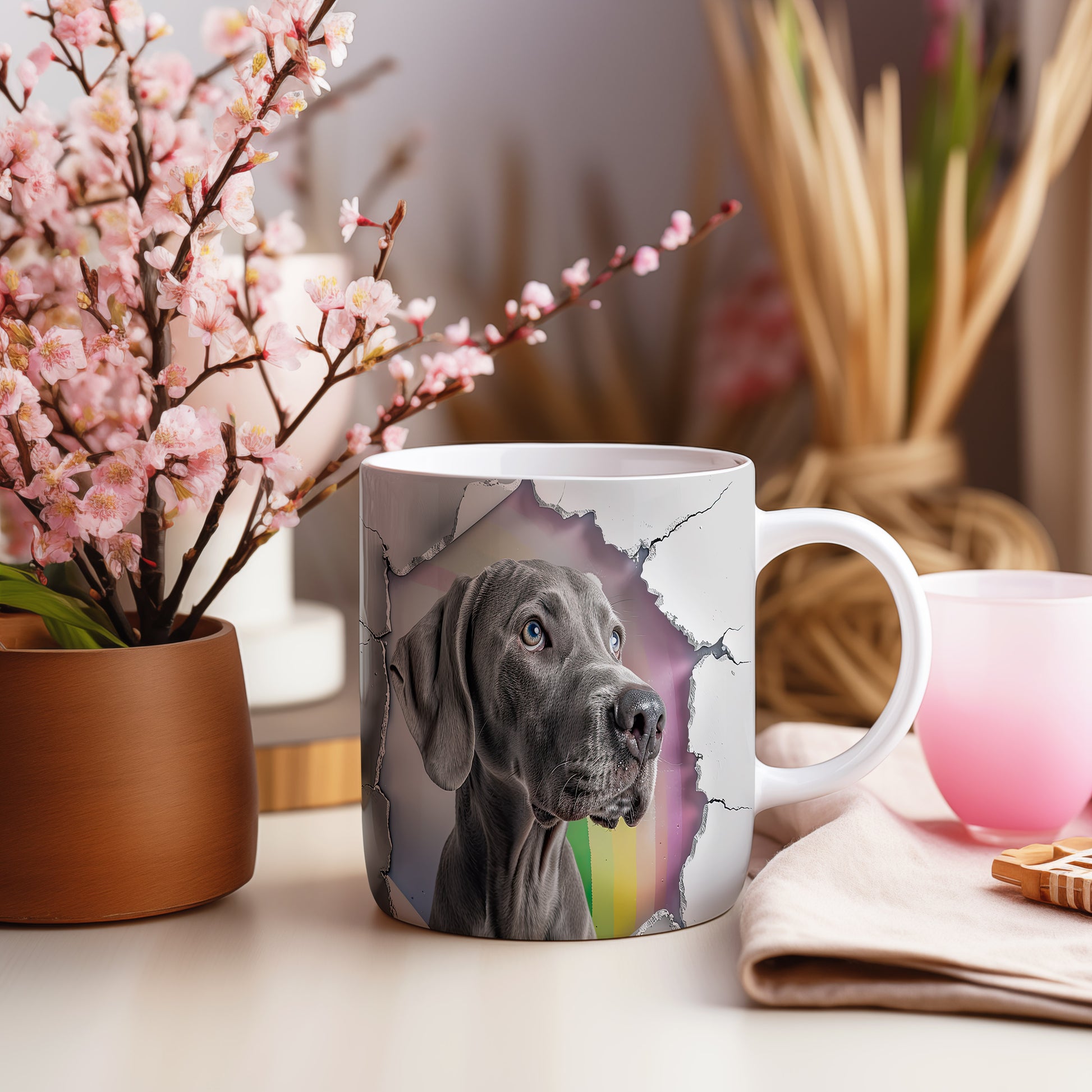 Tento hrnek s motivem šedého psa a duhovým pozadím přináší styl a radost do každého doušku. Je ideální pro milovníky psů a skvělým dárkem pro přátele či rodinu. Materiál: keramika. Objem: 330 ml. Vhodné do myčky i mikrovlnky. Díky svému designu se stane oblíbeným společníkem při každém pití.
