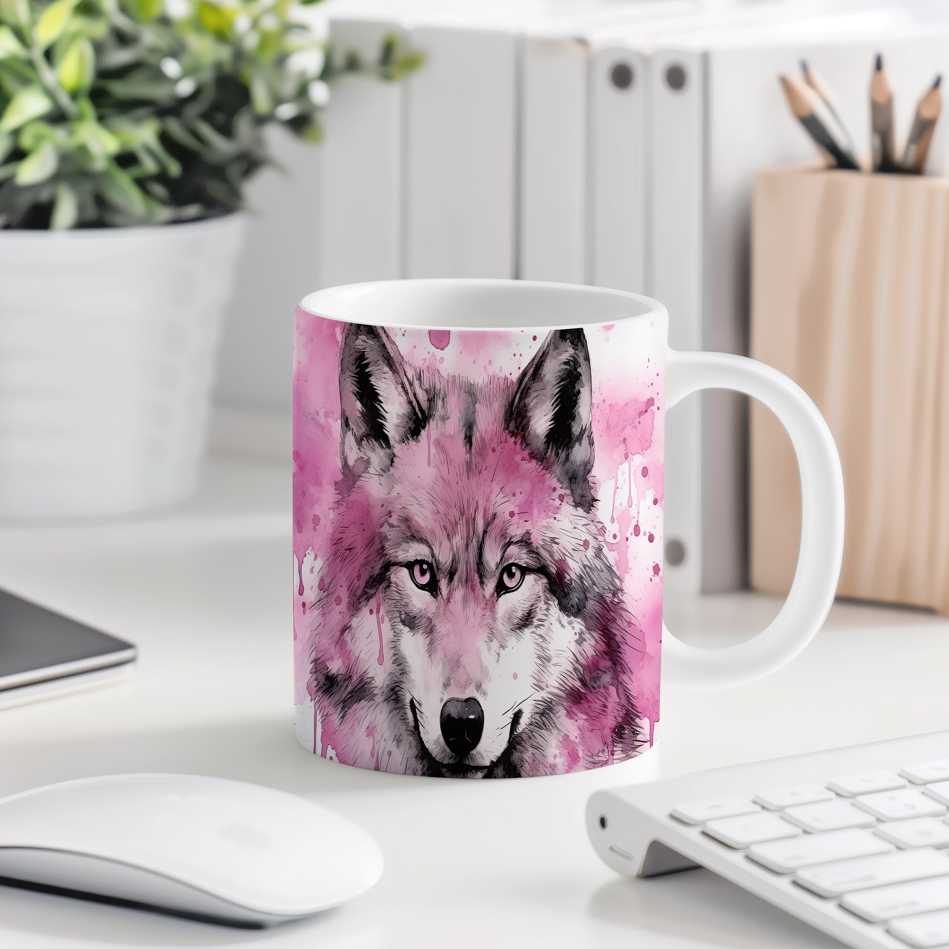 Keramický hrnek se stylizovaným motivem šedého vlka na růžovém pozadí. Tento hrnek je ideální pro milovníky přírody a zvířat, skvělý tip na dárek pro každého, kdo ocení krásu divoké přírody. Materiál: keramika. Objem: 330 ml. Vhodné do myčky i mikrovlnky. Používáním tohoto hrnku si užijete nejen skvělý design, ale i praktické vlastnosti.