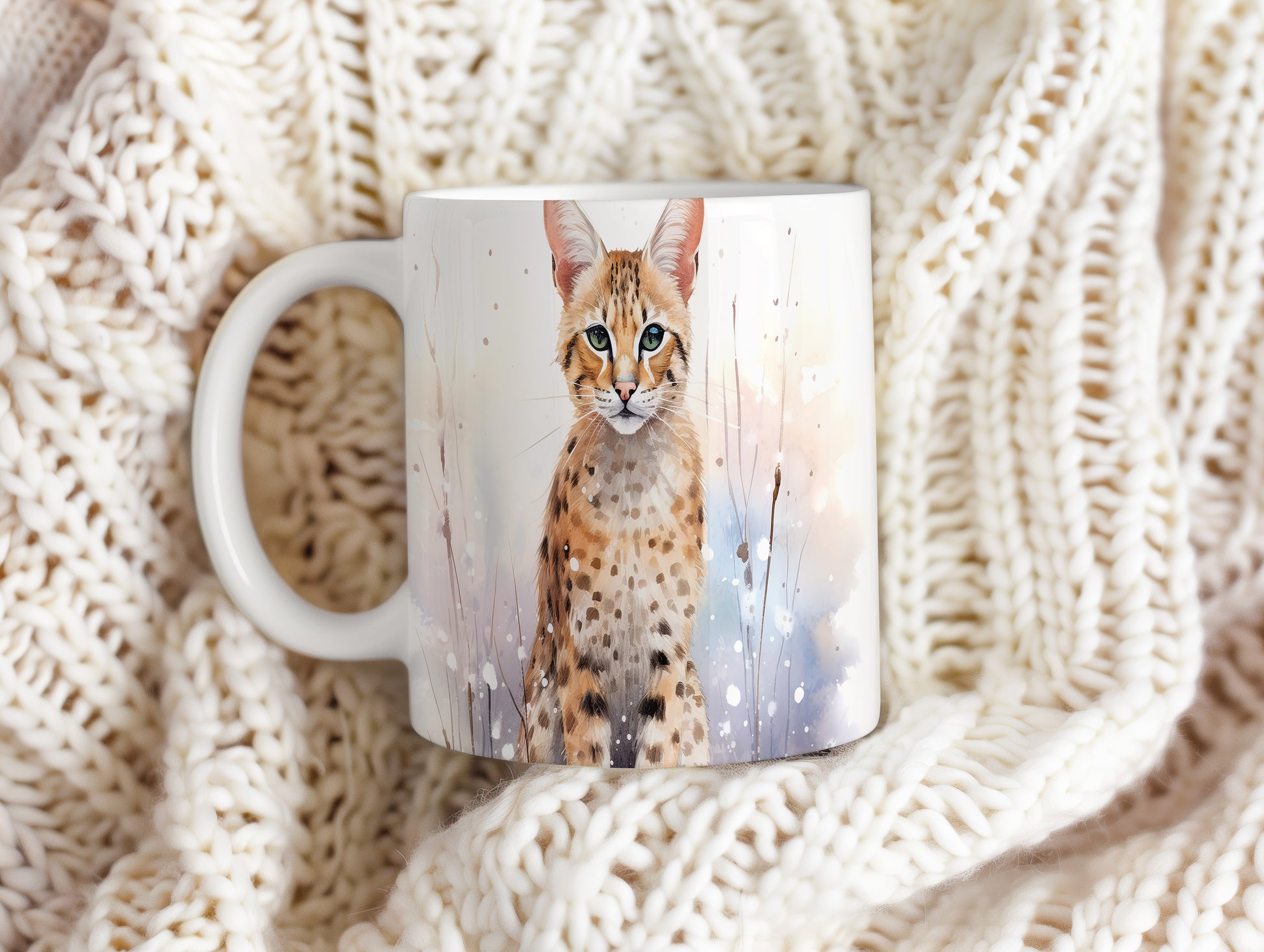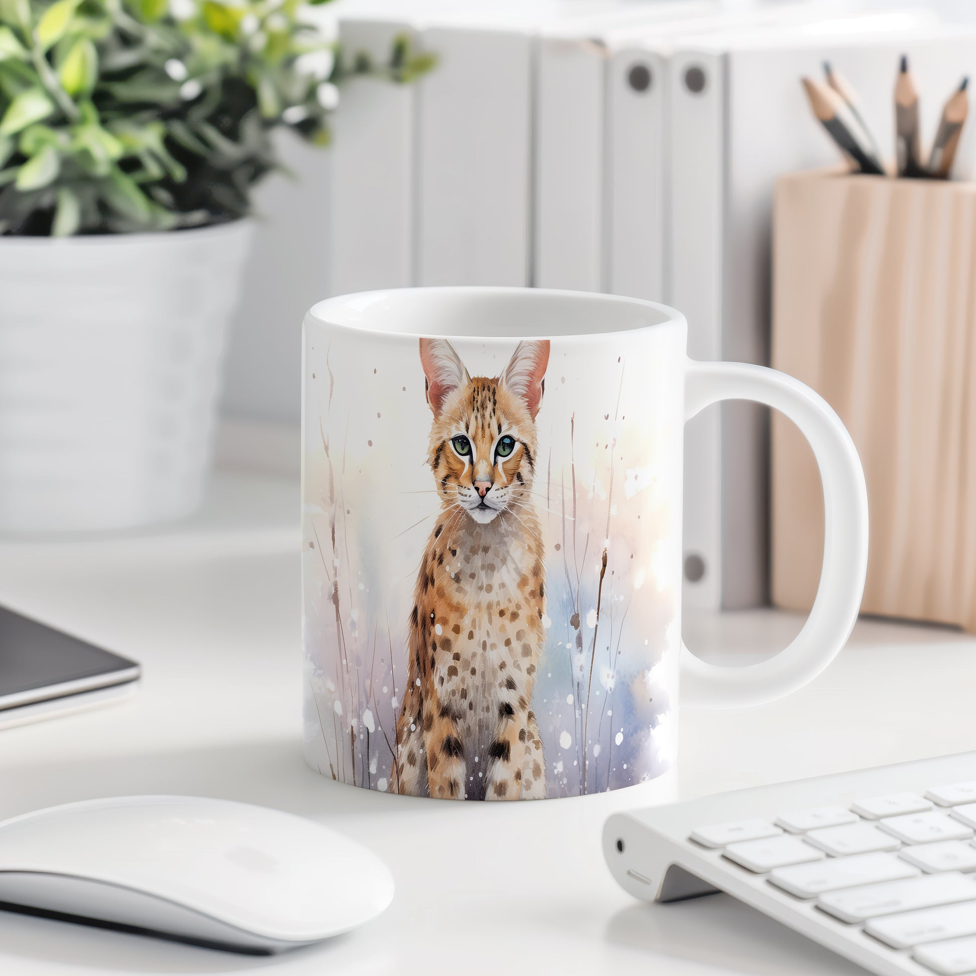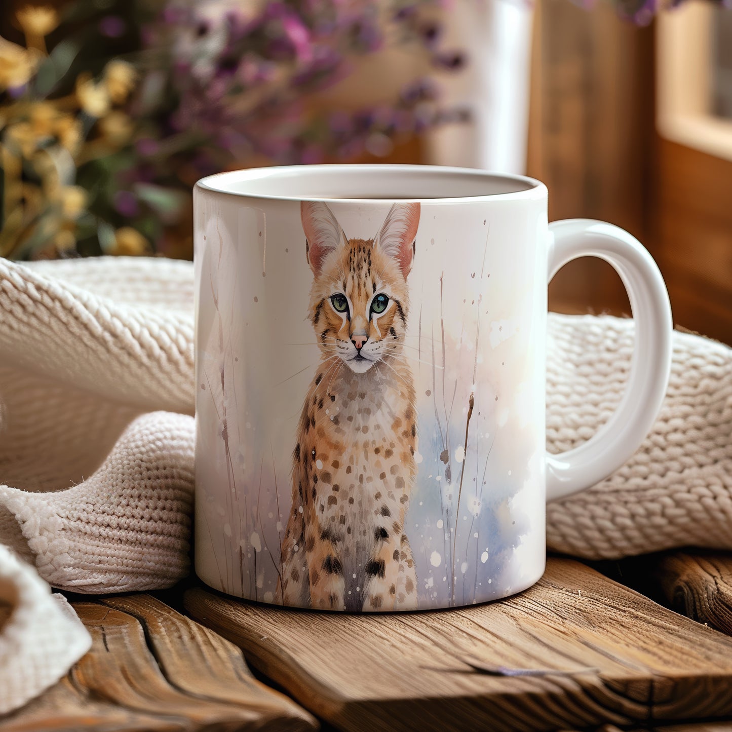 Hrnek se servalem v jemných tónech je stylovým kouskem pro milovníky přírody. Tento hrnek je skvělým dárkem pro všechny, kteří ocení jedinečný design a kvalitu. Materiál: keramika. Objem: 330 ml. Vhodné do myčky i mikrovlnky. Díky svému provedení přináší radost při každém doušku vašeho oblíbeného nápoje.