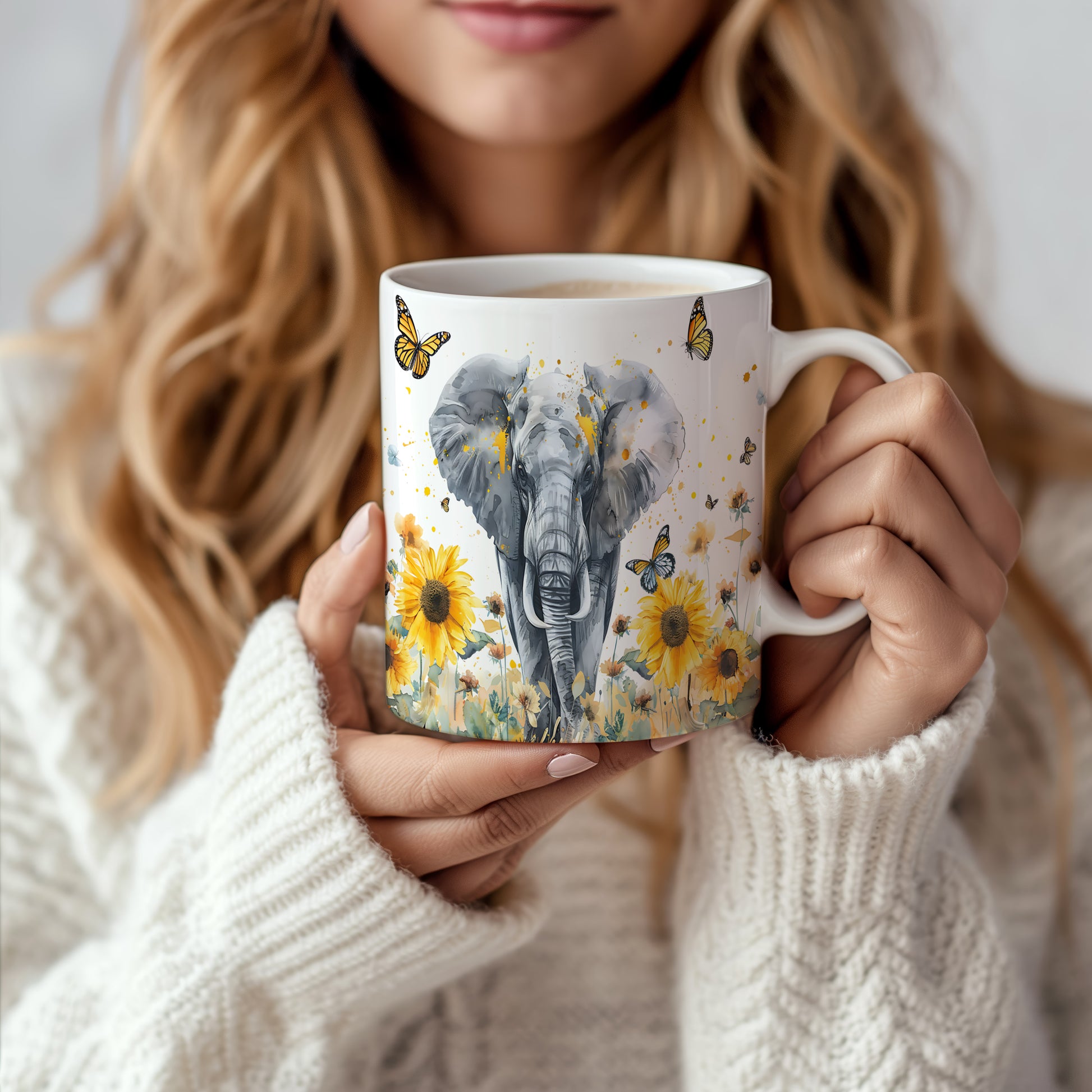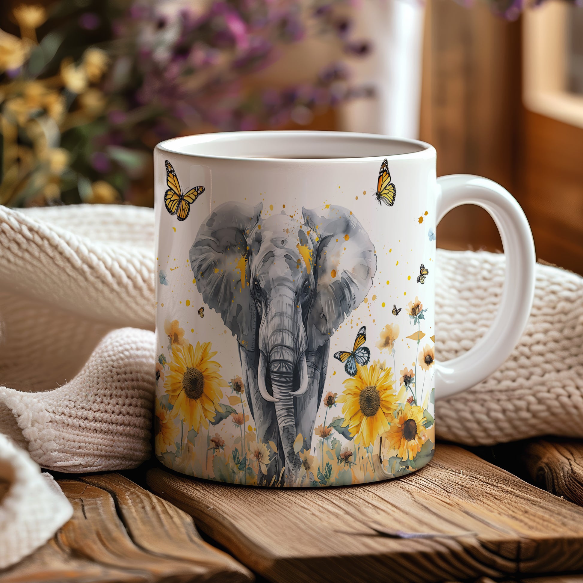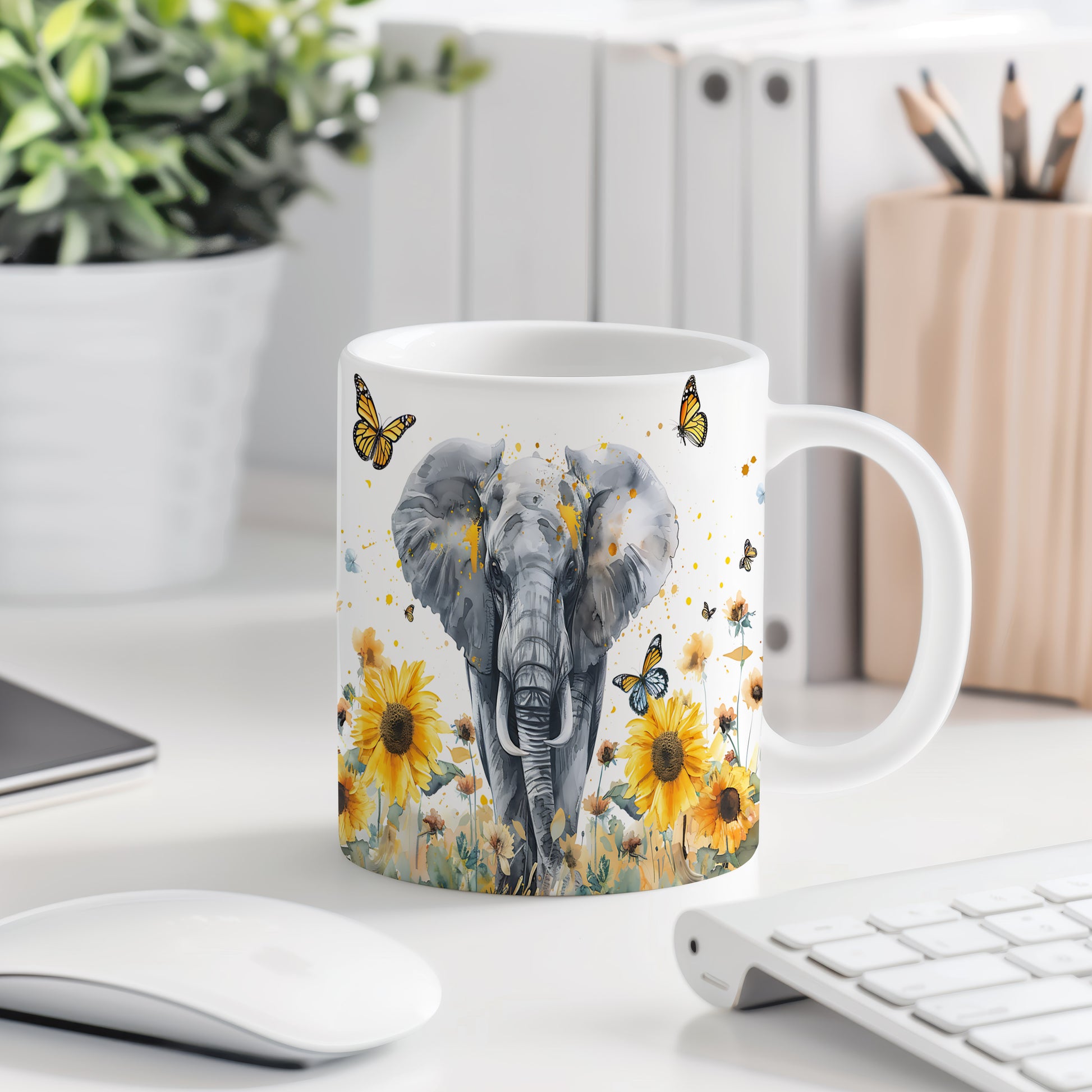 Hrnek s motivem slona a slunečnic, ideální pro milovníky přírody. Skvělý tip na dárek pro přátele nebo rodinu, kteří ocení krásu přírody. Materiál: keramika. Objem: 330 ml. Vhodné do myčky i mikrovlnky. Tento hrnek přináší radost při každém doušku a dodává na útulnosti vašeho domova.