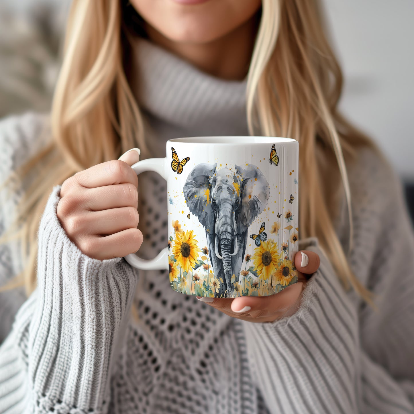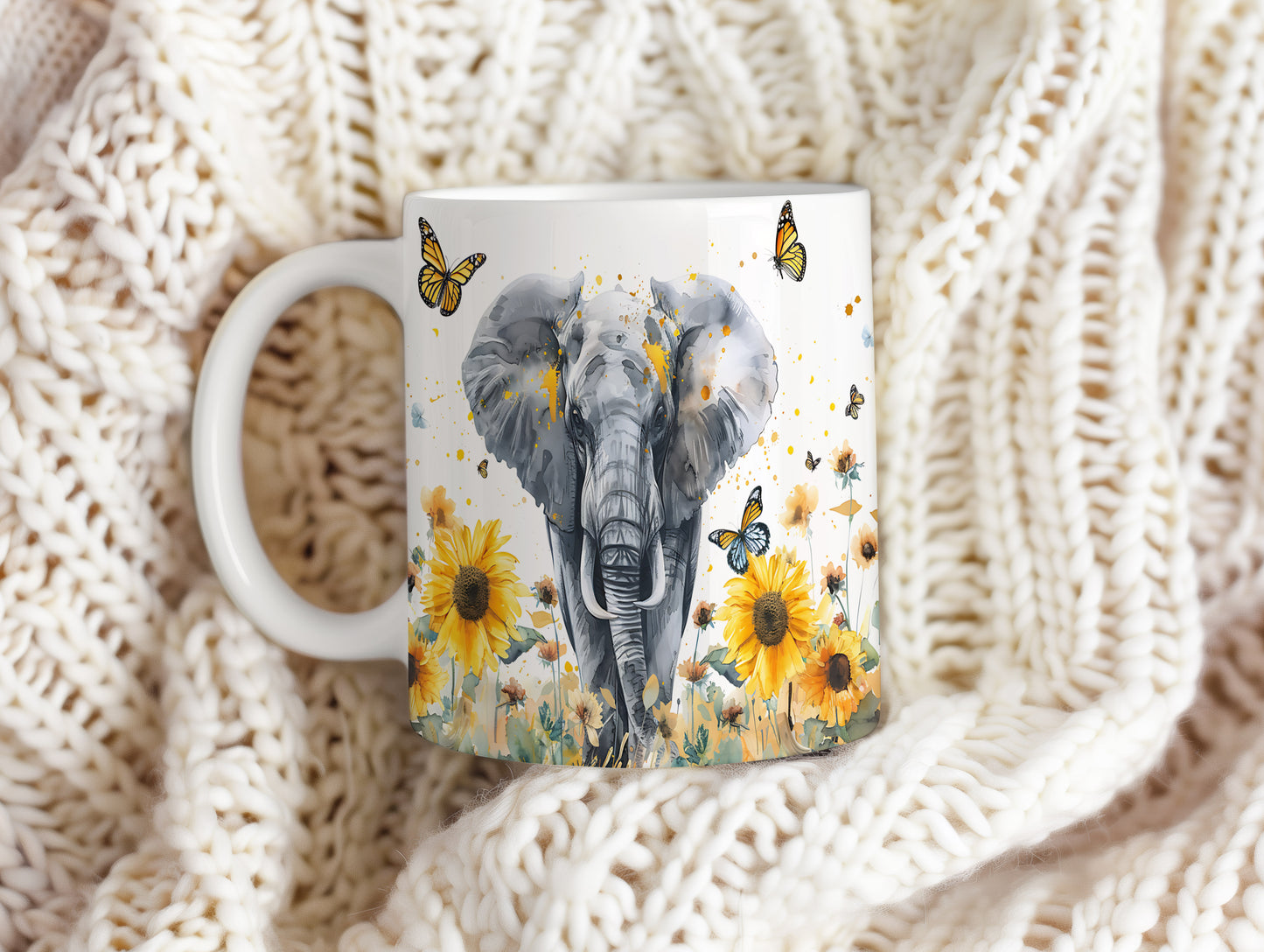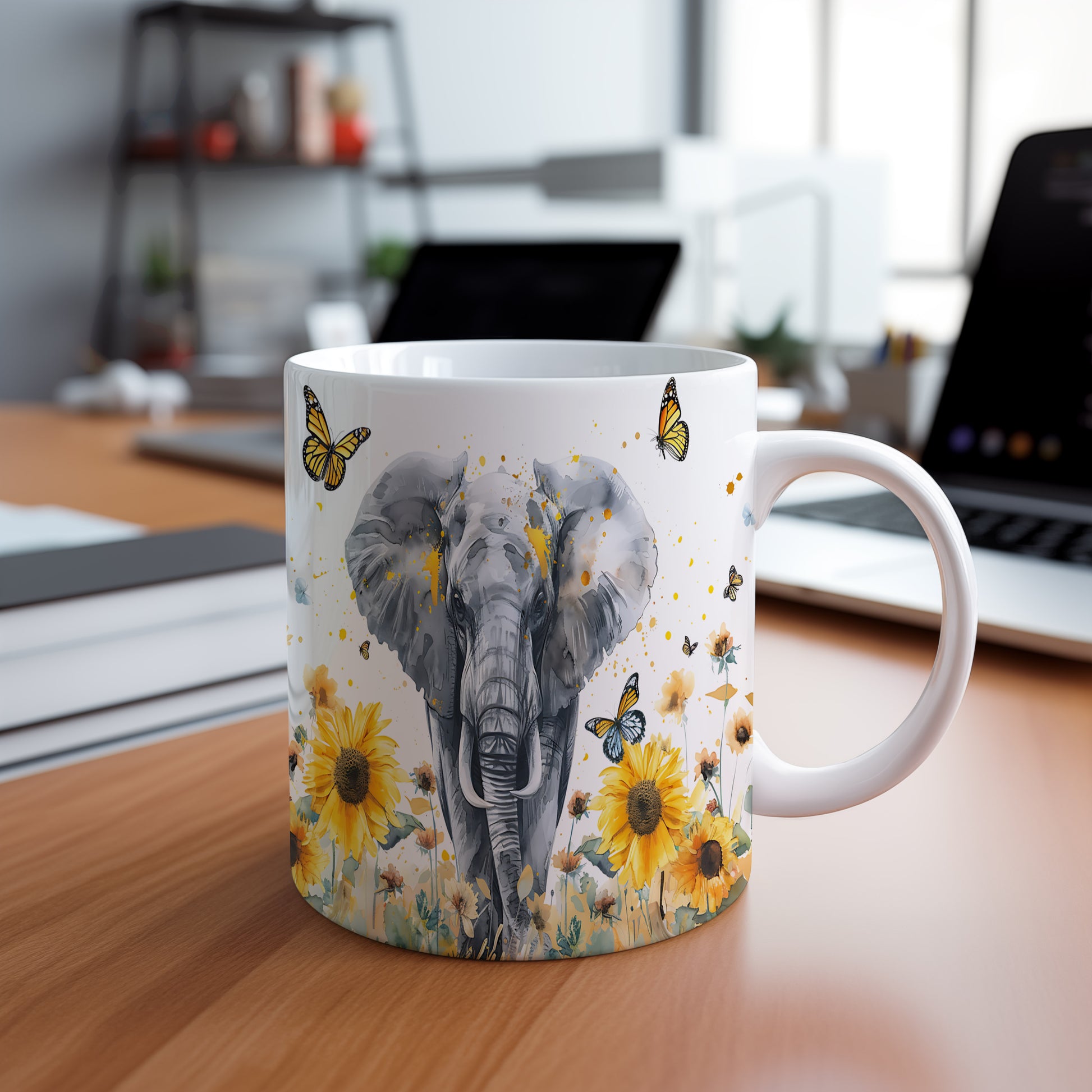 Hrnek s motivem slona a slunečnic, ideální pro milovníky přírody. Skvělý tip na dárek pro přátele nebo rodinu, kteří ocení krásu přírody. Materiál: keramika. Objem: 330 ml. Vhodné do myčky i mikrovlnky. Tento hrnek přináší radost při každém doušku a dodává na útulnosti vašeho domova.