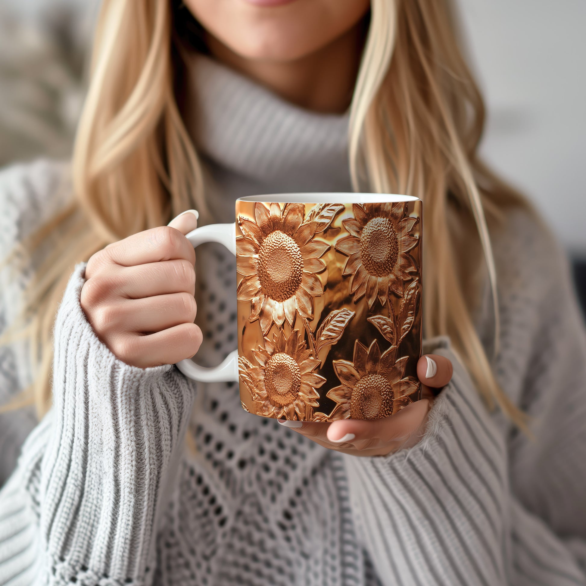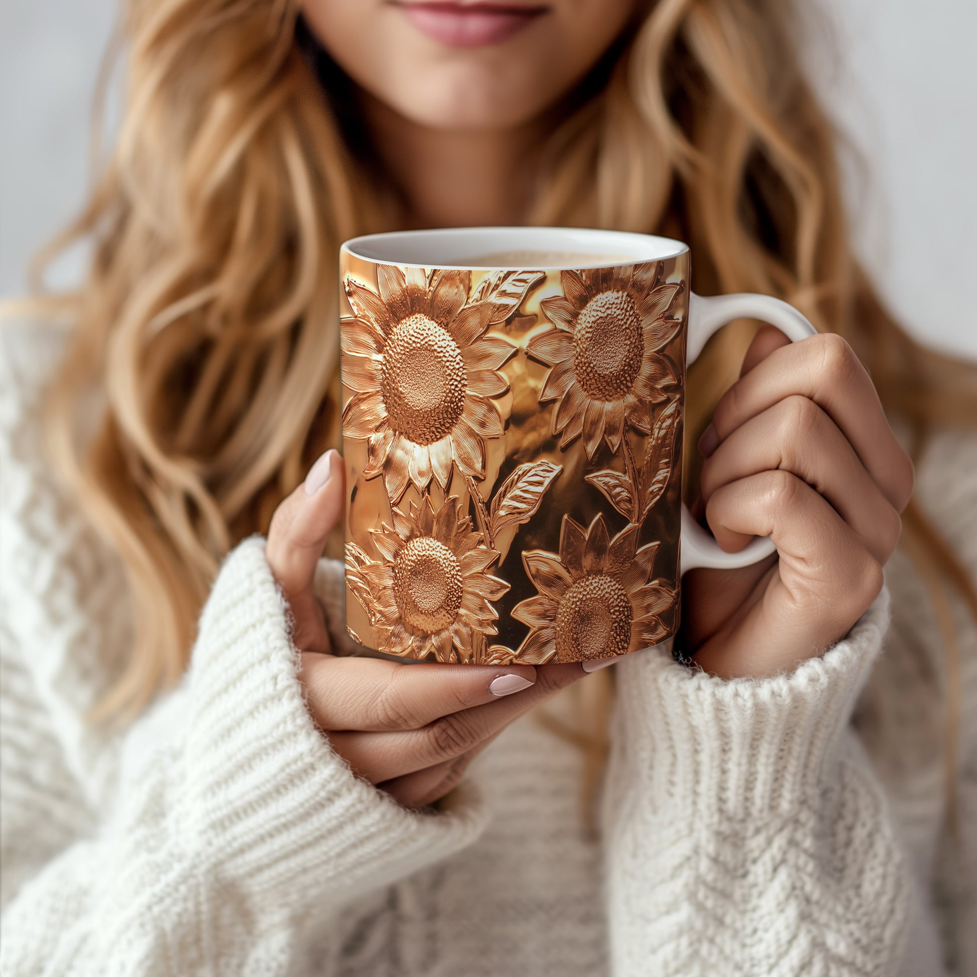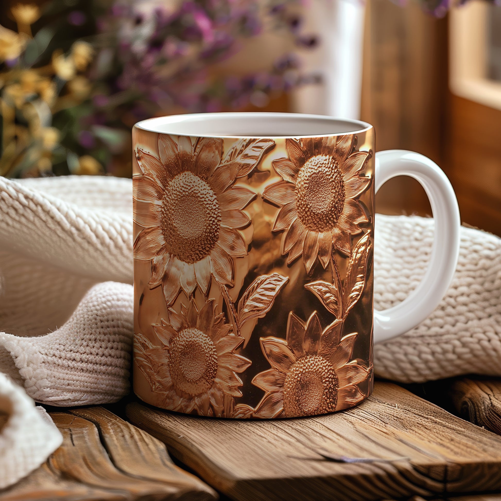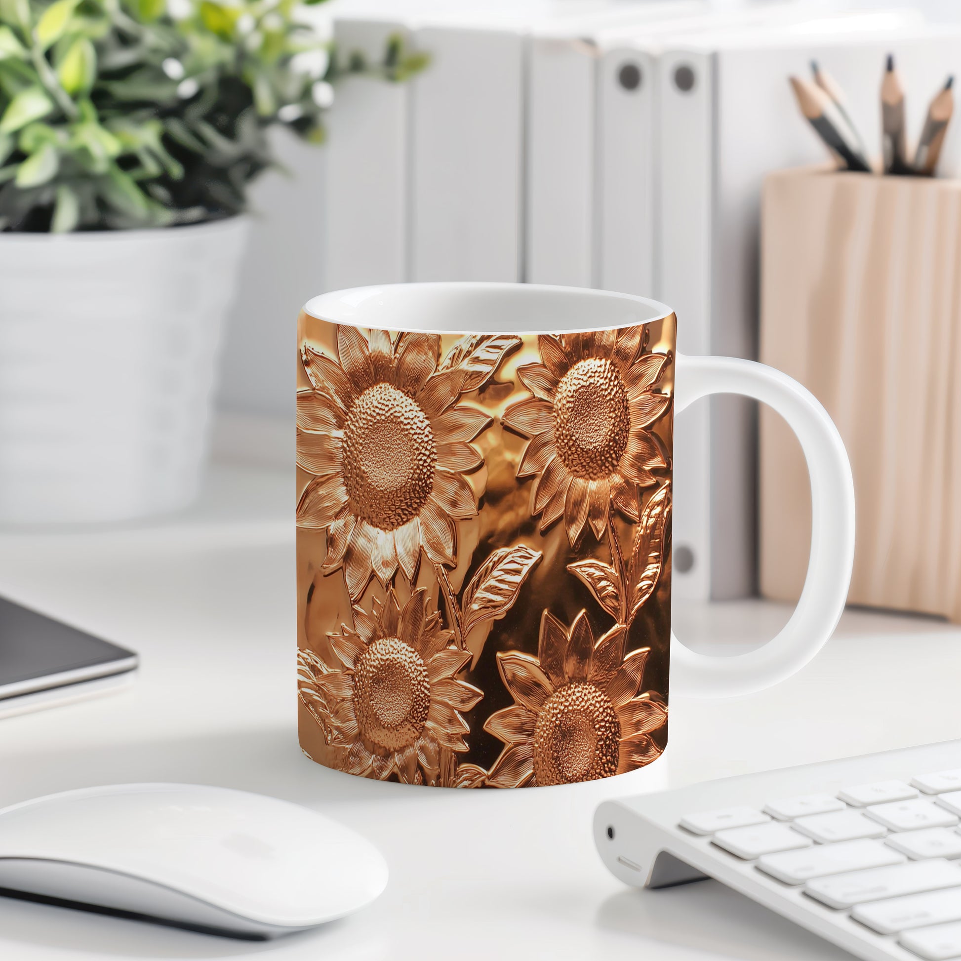 Tento keramický hrnek s motivem slunečnic v měděném designu je skvělým doplňkem pro každého milovníka přírody. Je ideální jako dárek pro přátele nebo rodinu, kteří ocení krásu květin. Materiál: keramika. Objem: 330 ml. Vhodné do myčky i mikrovlnky. Díky svému designu přináší do každodenního pití radost a pozitivní energii.