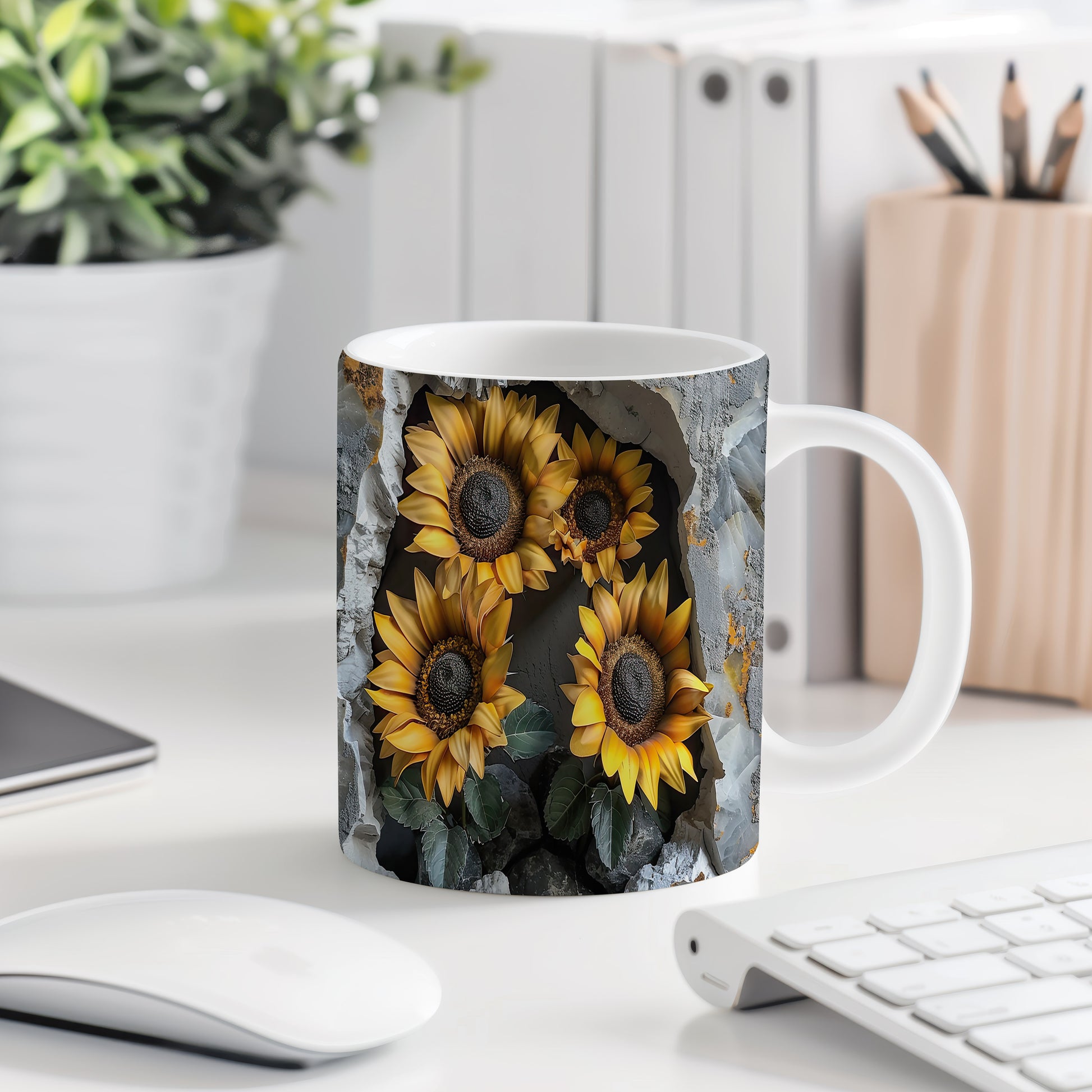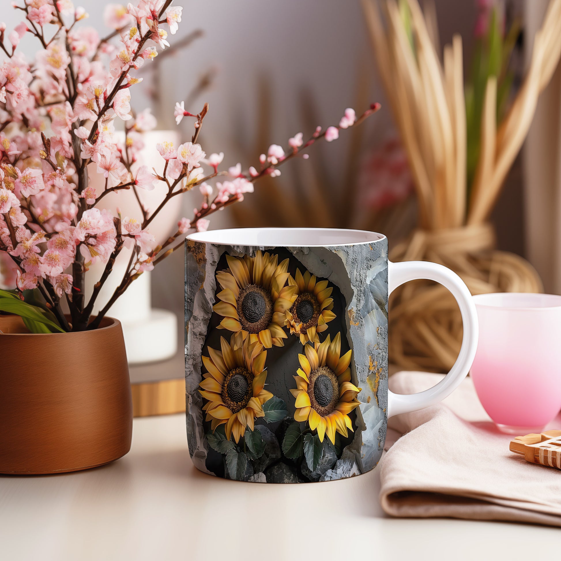 Tento elegantní hrnek je zdoben nádhernými slunečnicemi, které přinášejí do vašeho každodenního života přírodní atmosféru. Je ideální pro milovníky květin a přírody, skvělý tip na dárek pro přátele nebo rodinu. Materiál: keramika. Objem: 330 ml. Vhodné do myčky i mikrovlnky. Používání tohoto hrnku vám přinese radost z pití oblíbeného nápoje.