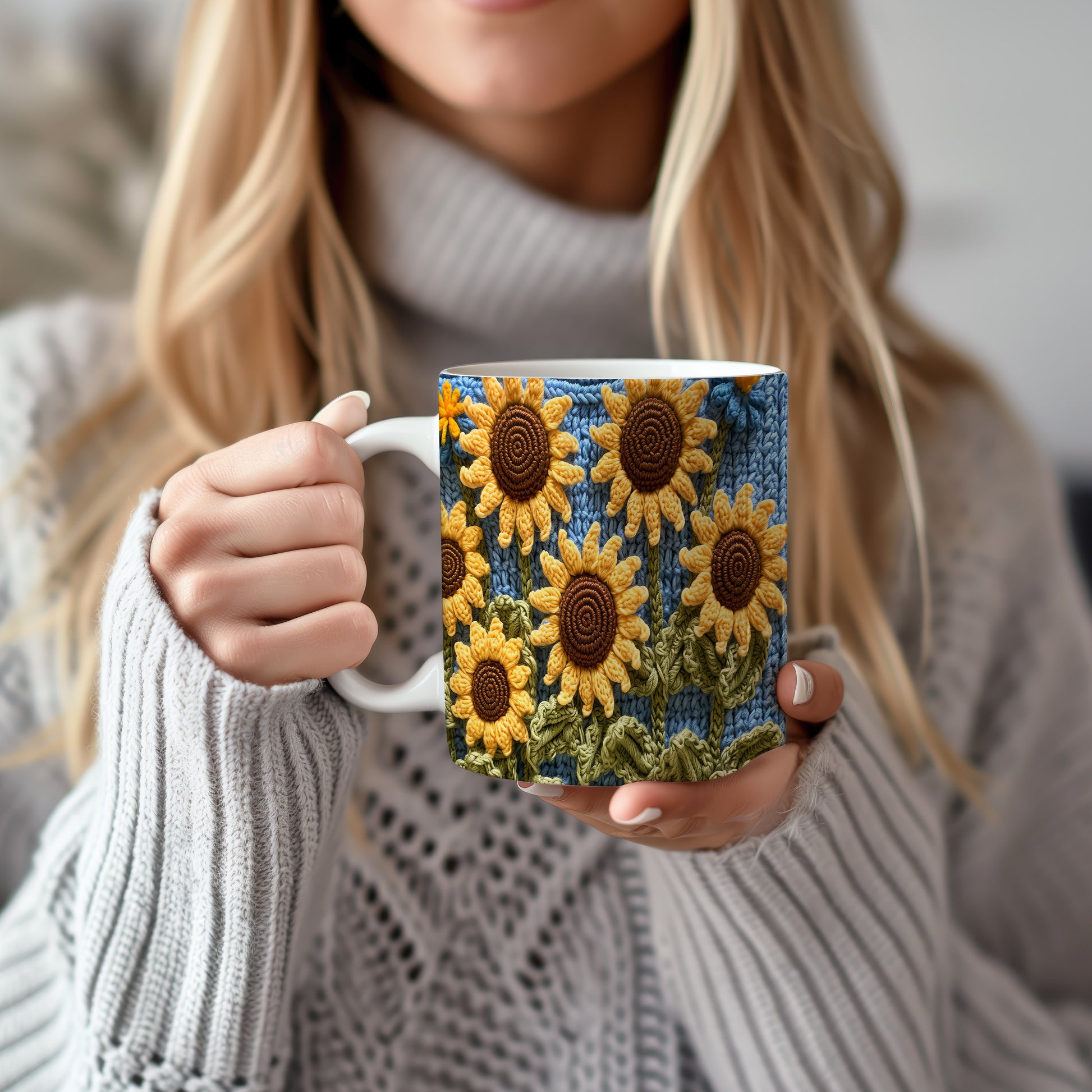 Hrnek se slunečnicemi – modrými detaily