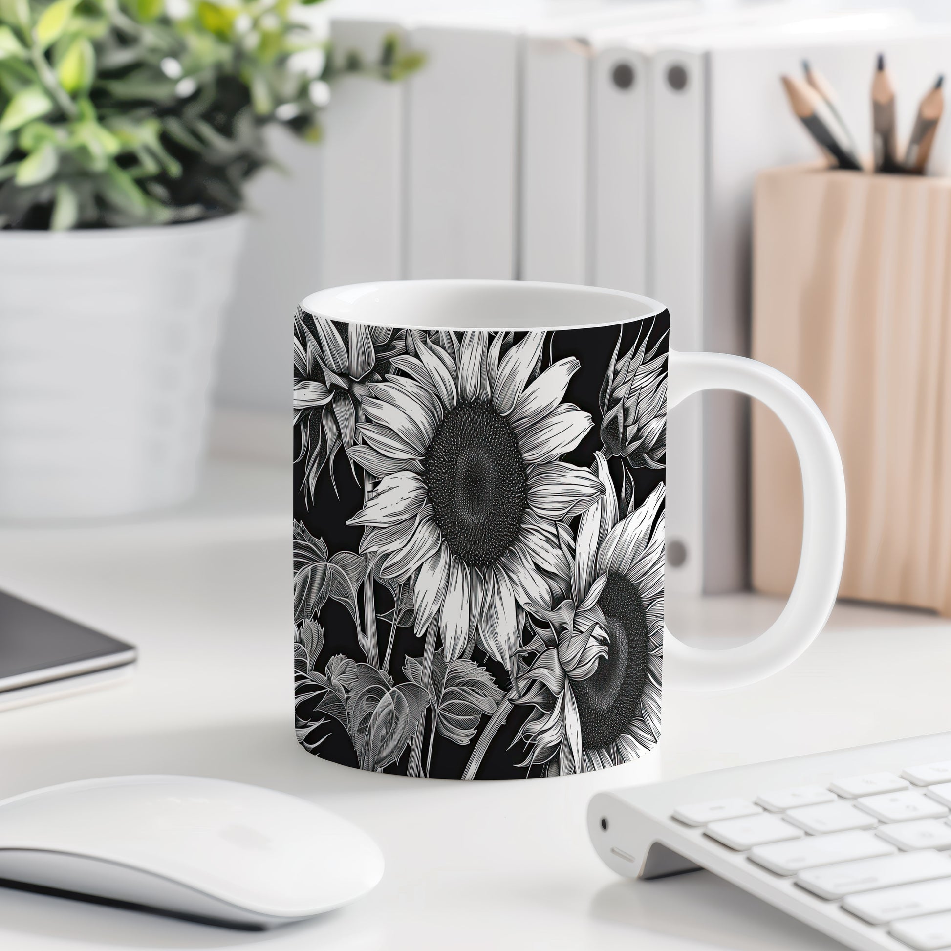 Tento keramický hrnek s motivem slunečnic vyniká svým elegantním stylem. Je ideální pro milovníky přírody a skvělým dárkem pro přátele či rodinu. Materiál: keramika. Objem: 330 ml. Vhodné do myčky i mikrovlnky. Používáním tohoto hrnku si zpříjemníte každodenní pití kávy nebo čaje.
