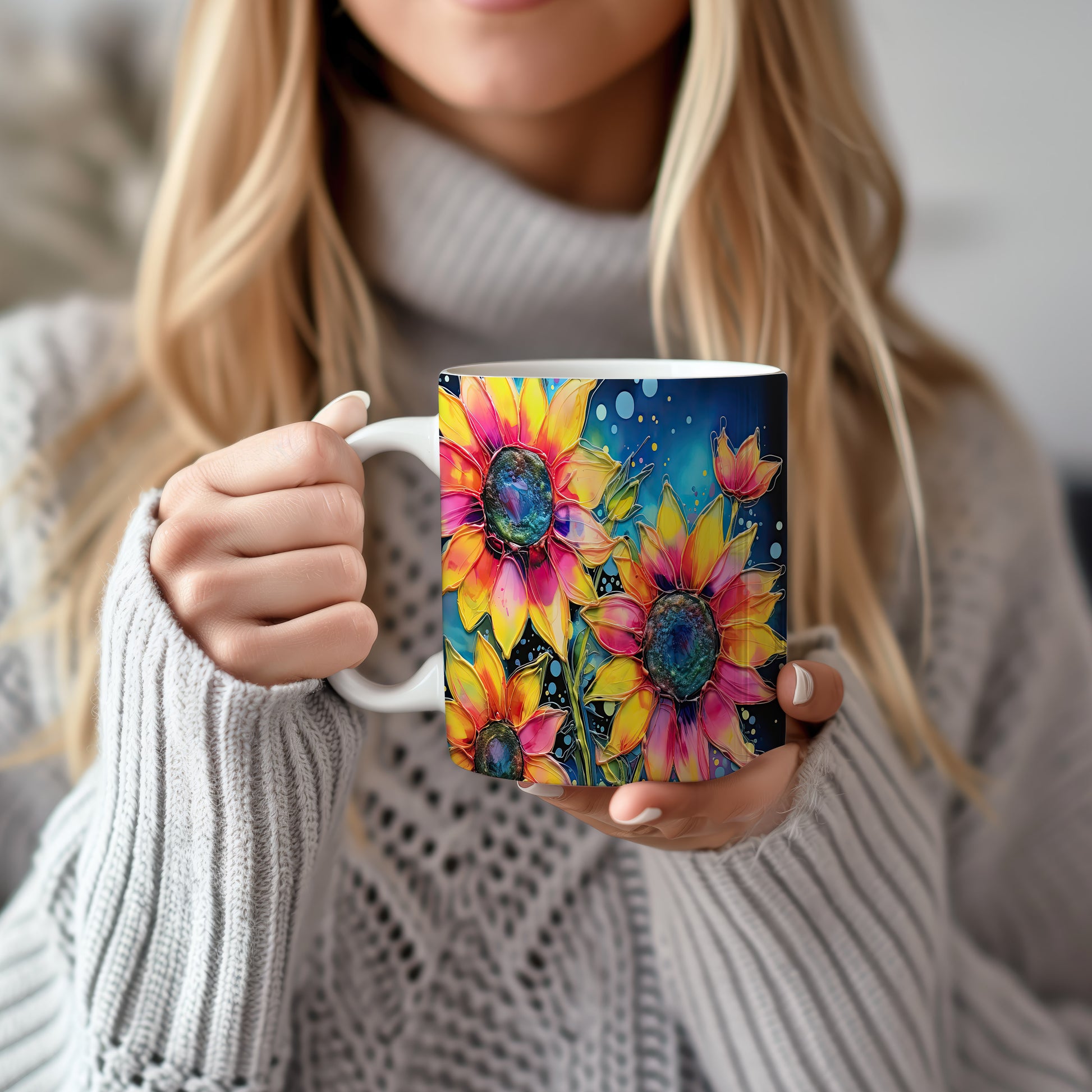 Tento hrnek s motivem slunečnic v teplých barvách je ideální pro milovníky přírody a slunečných dní. Skvěle se hodí jako dárek pro přátele nebo rodinu, kteří ocení originální design. Materiál: keramika. Objem: 330 ml. Vhodné do myčky i mikrovlnky. Používání tohoto hrnku přináší radost z každého doušku oblíbeného nápoje.