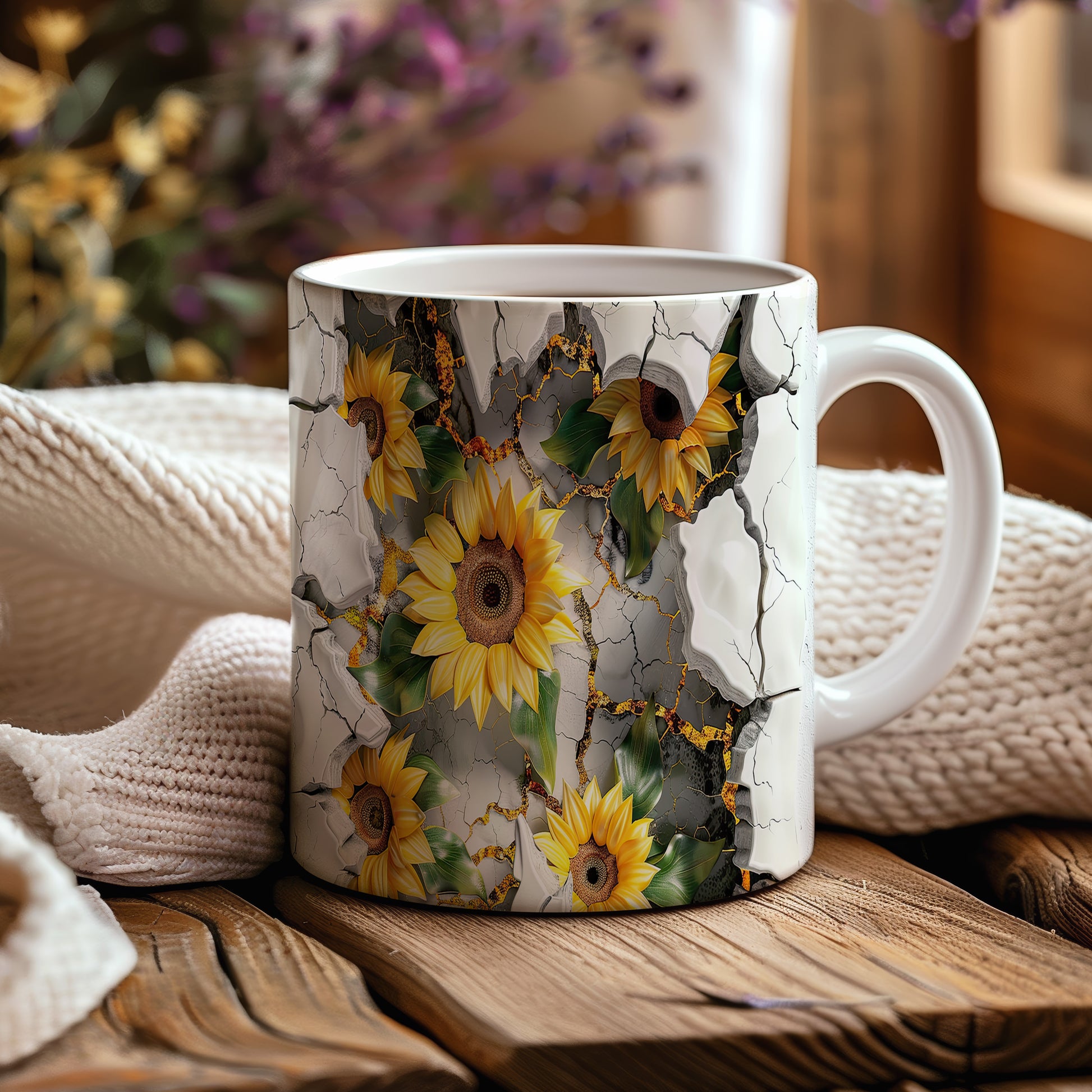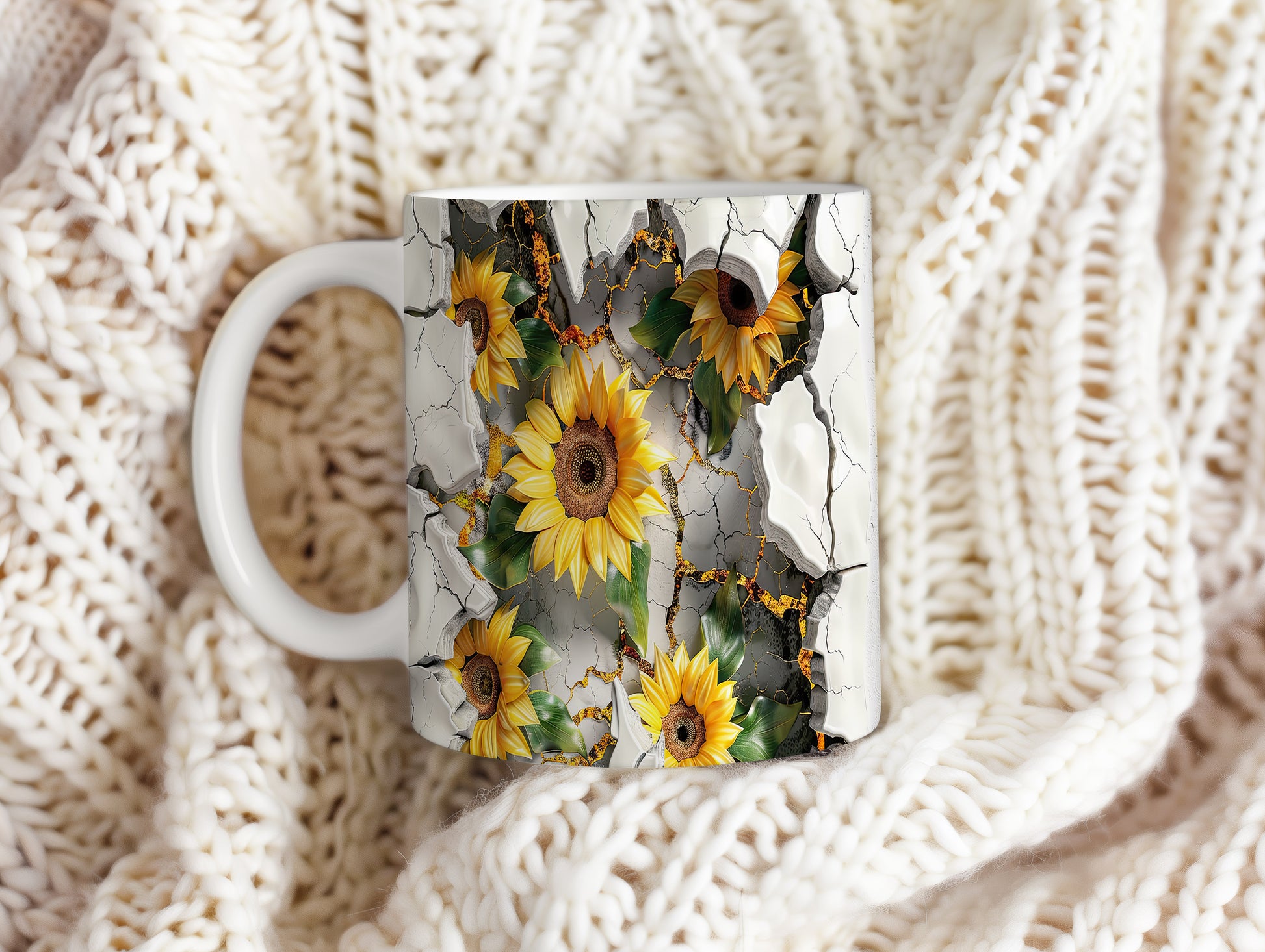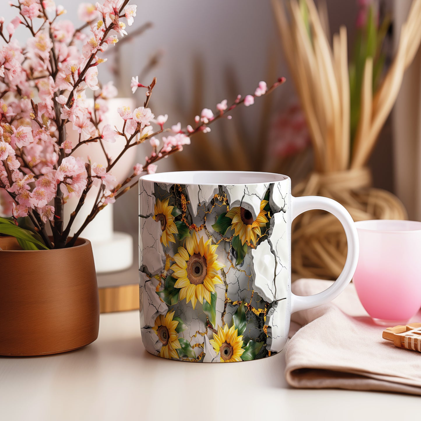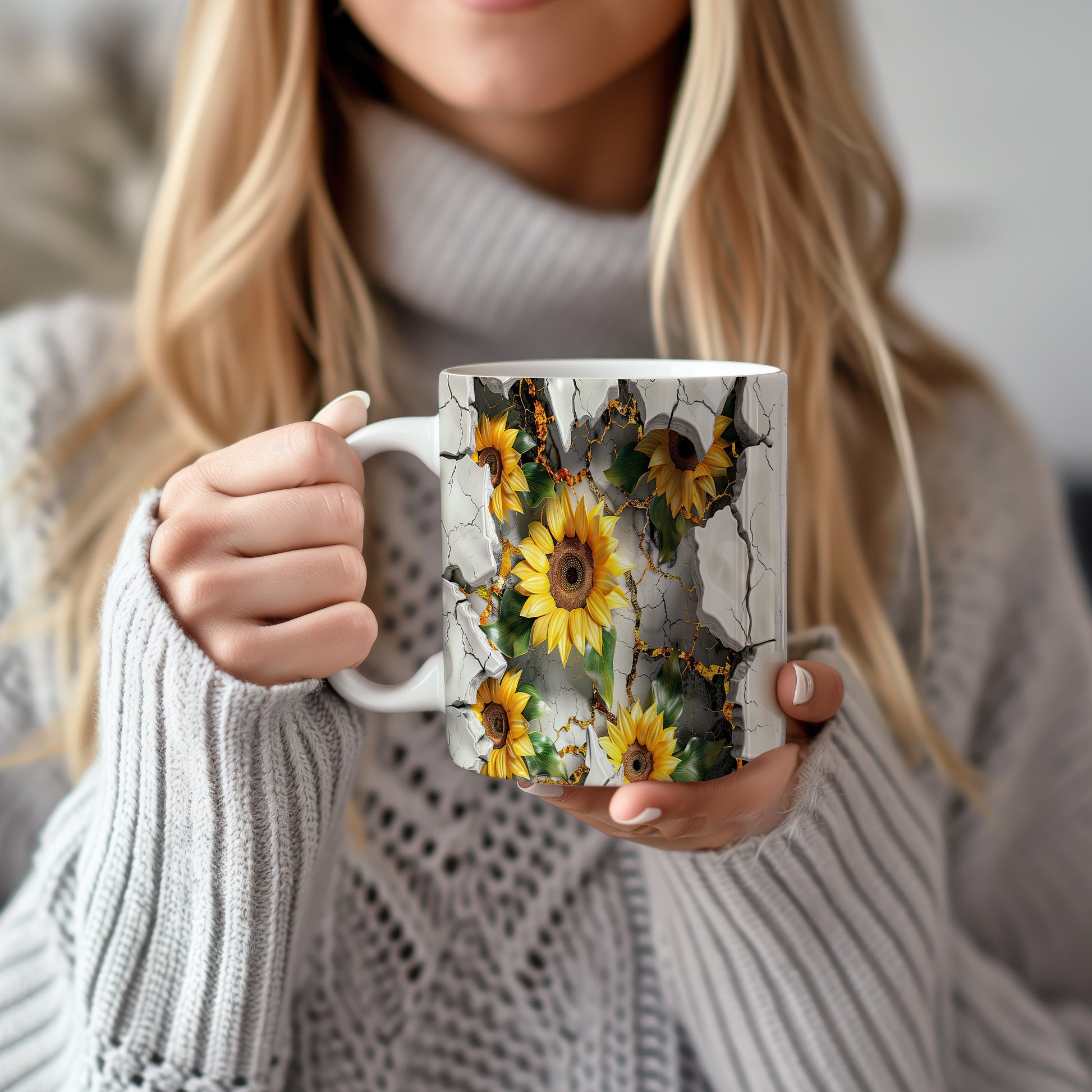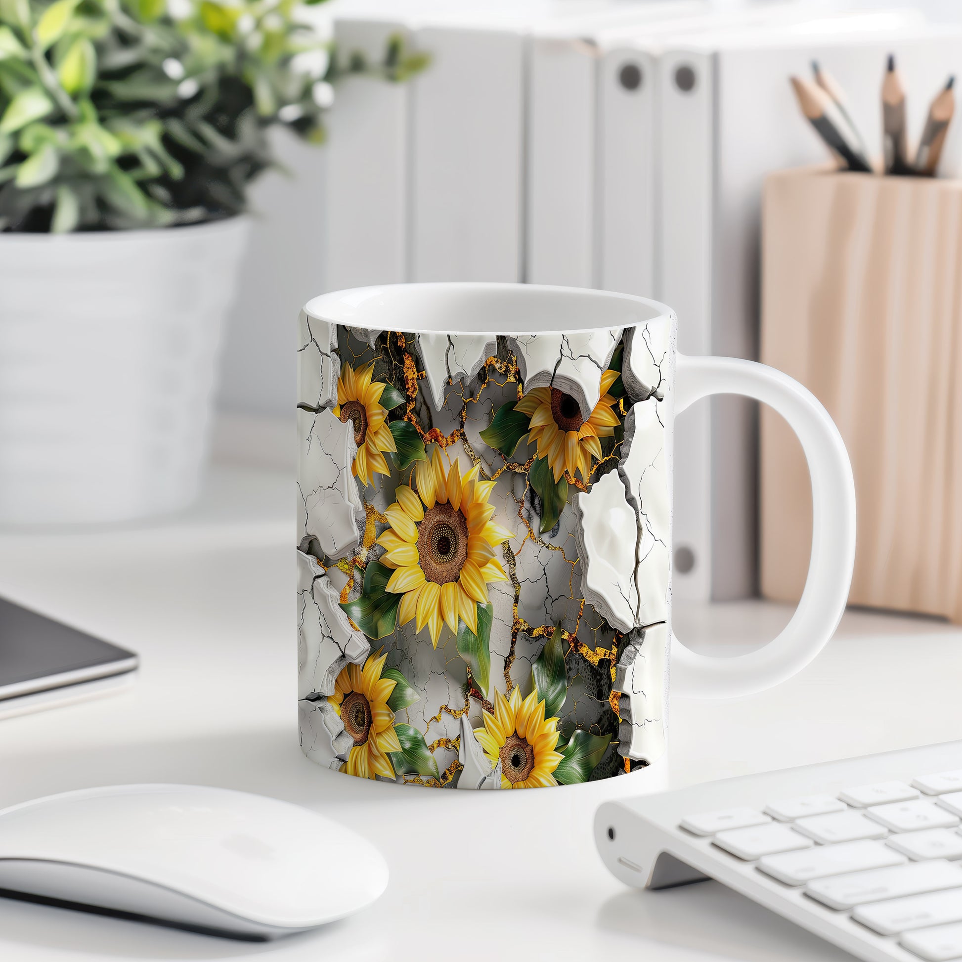Tento hrnek zobrazuje slunečnice, které vyrůstají z šedého pozadí. Je ideální pro milovníky přírody a skvělým dárkem pro každého, kdo ocení originální design. Materiál: keramika. Objem: 330 ml. Vhodné do myčky i mikrovlnky. Používání tohoto hrnku přináší radost a oživuje každé ráno.