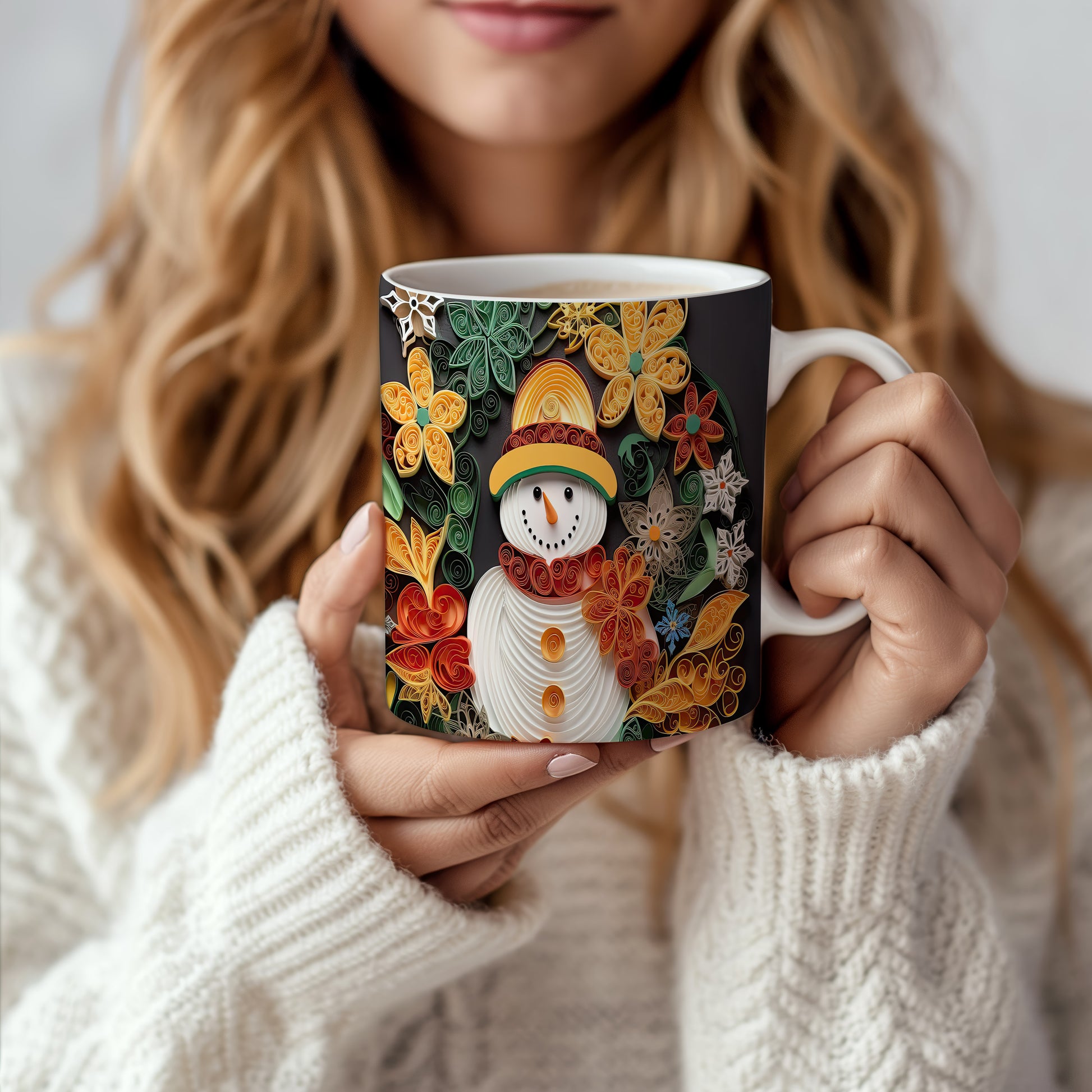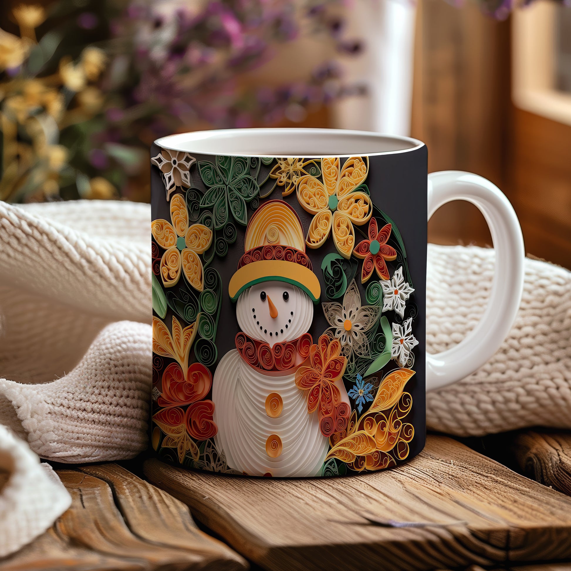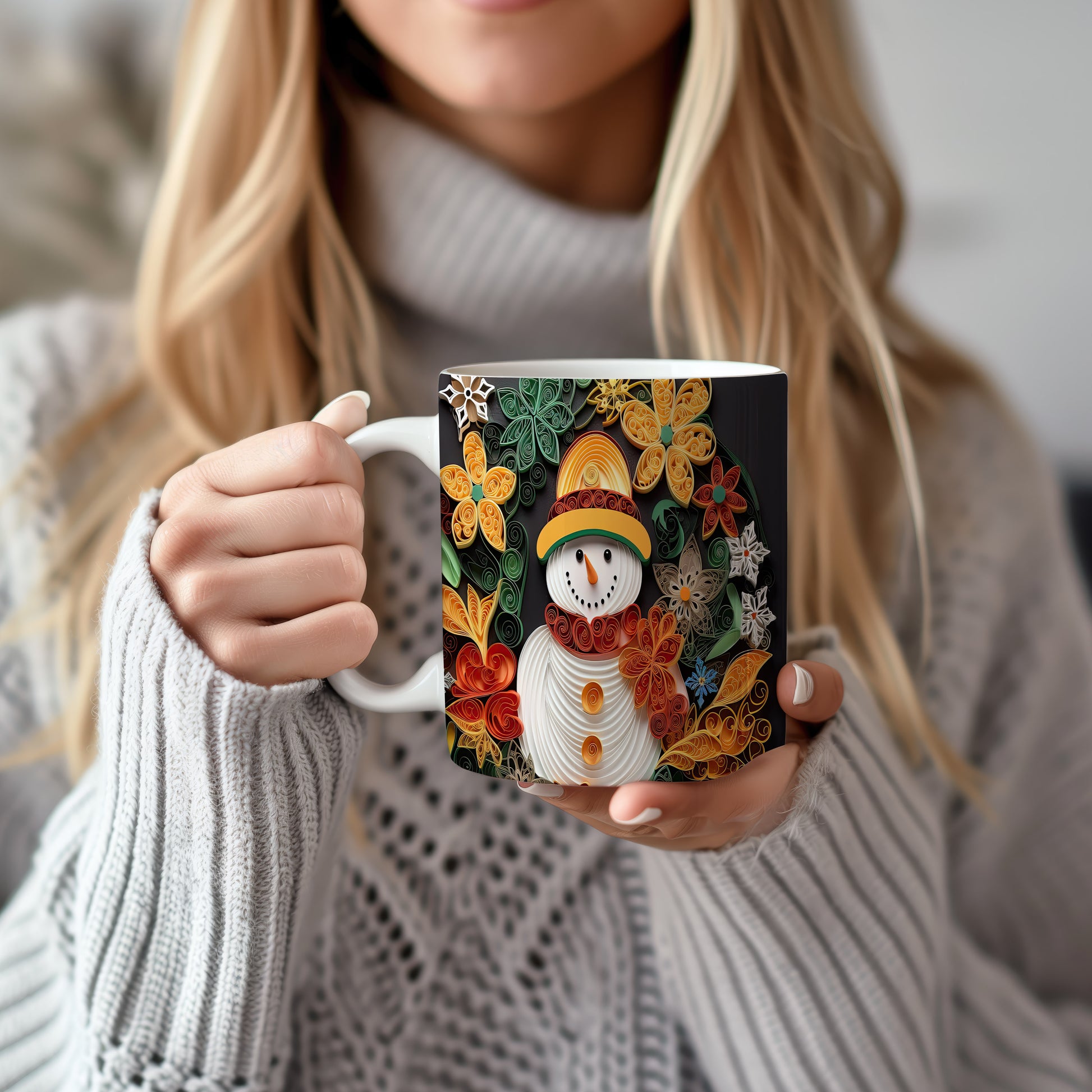 Hrnek se sněhulákem – černobílým motivem