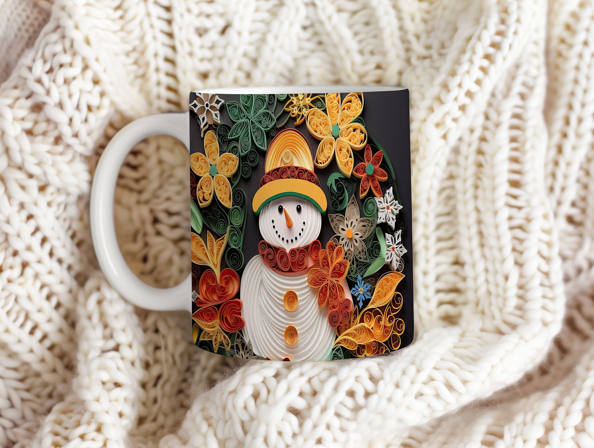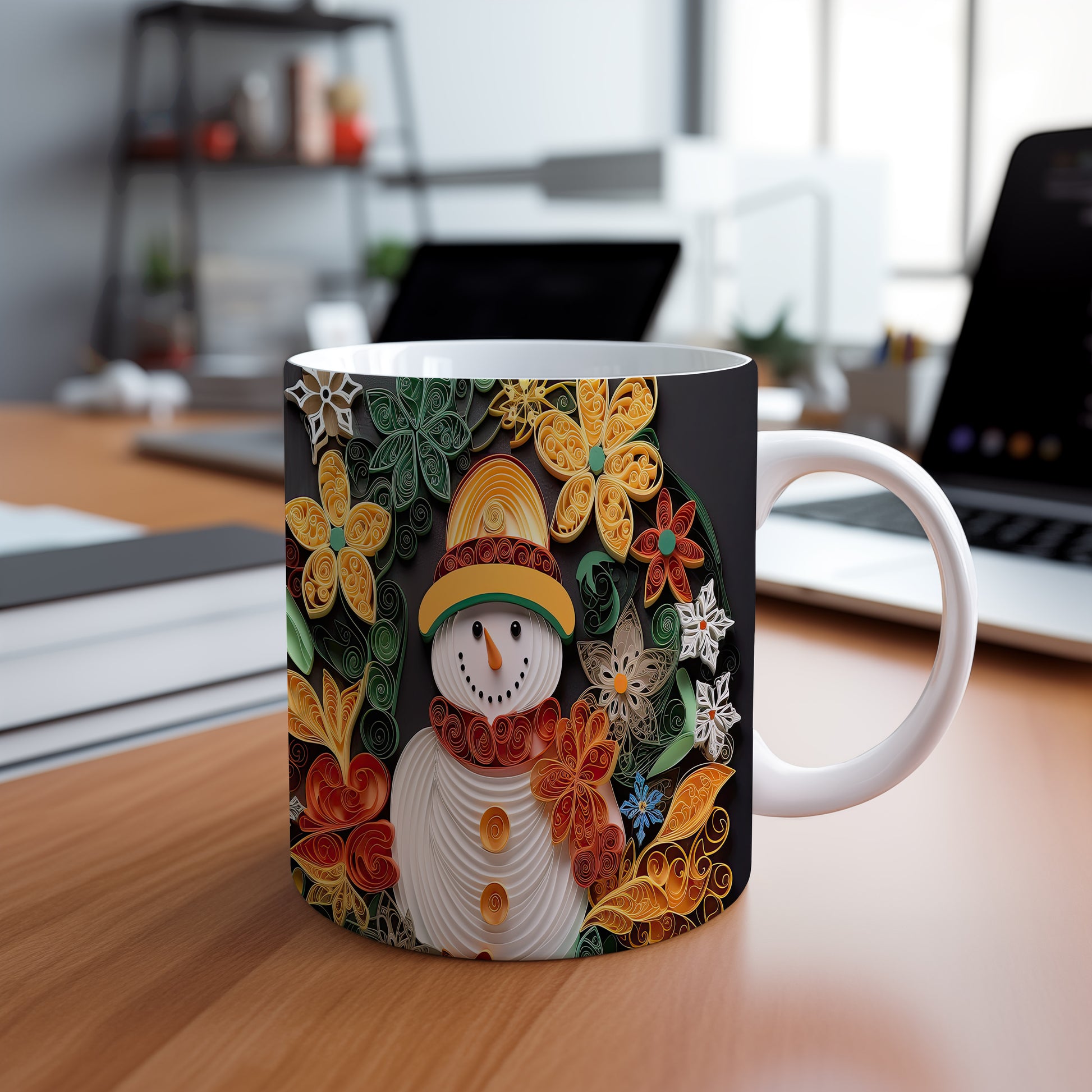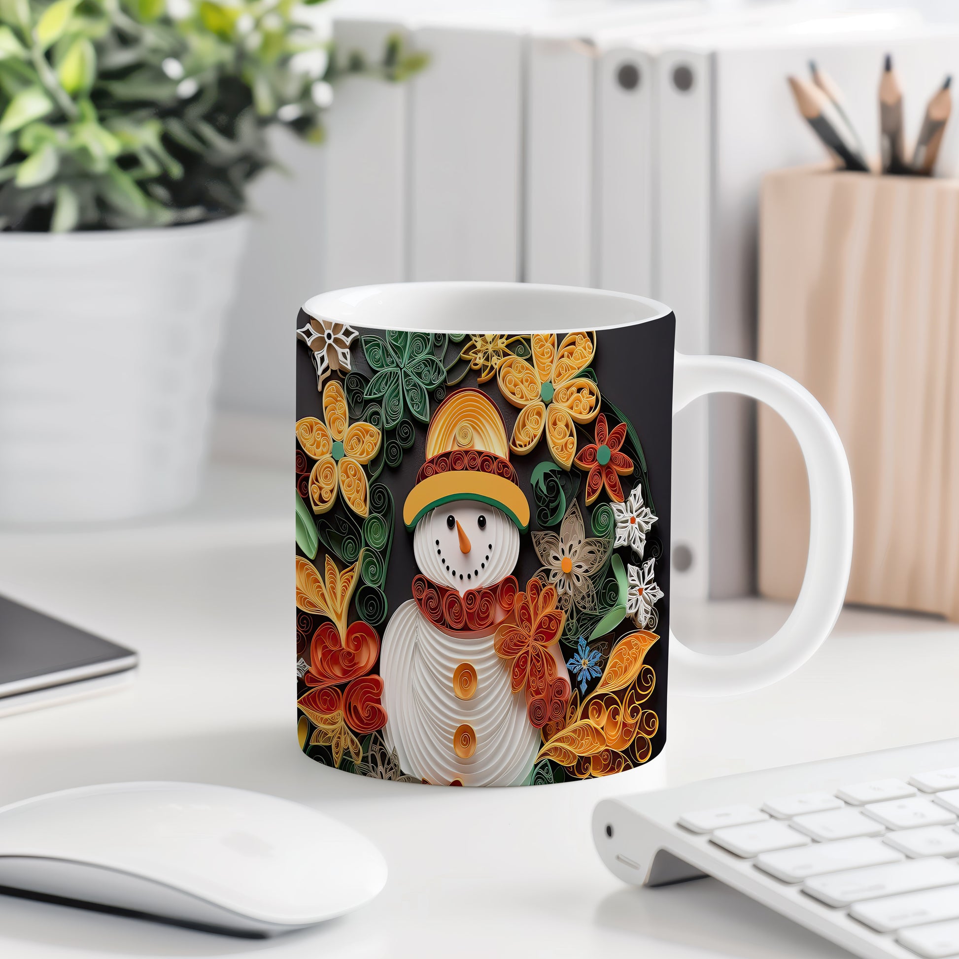 Hrnek se sněhulákem – černobílým motivem