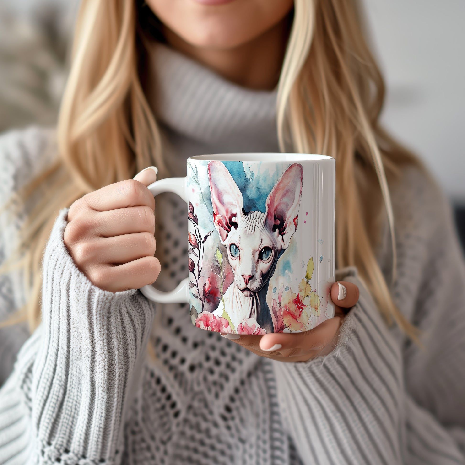 Elegantní hrnek s motivem sphynx kočky obklopené barevnými květinami. Tento hrnek je ideální pro milovníky koček a přírody, skvělý tip na dárek pro každého, kdo ocení krásu a originalitu. Materiál: keramika. Objem: 330 ml. Vhodné do myčky i mikrovlnky. Používání tohoto hrnku přináší radost z každého doušku.