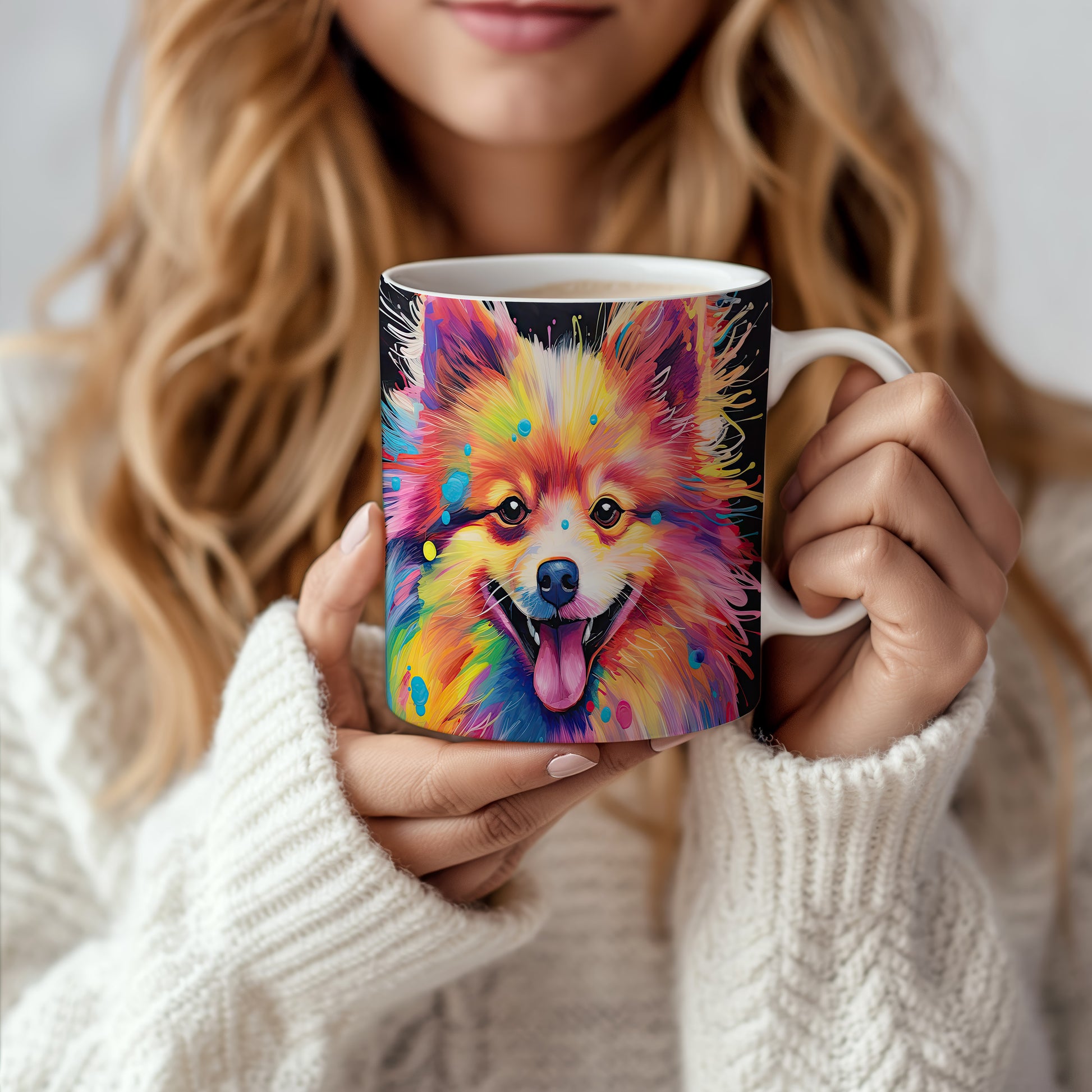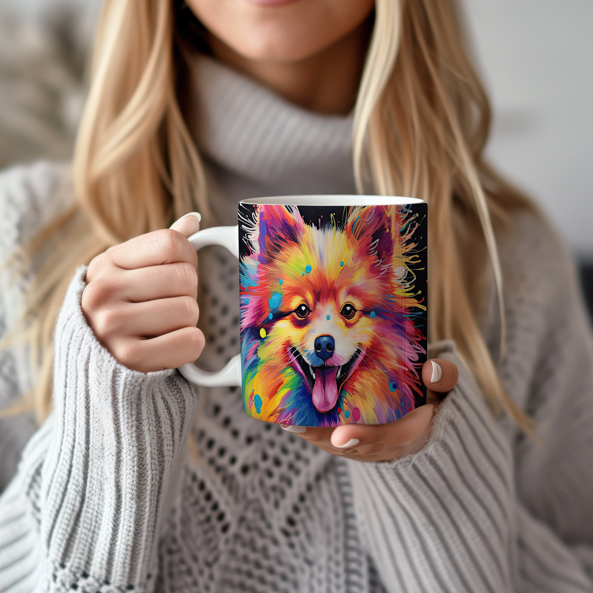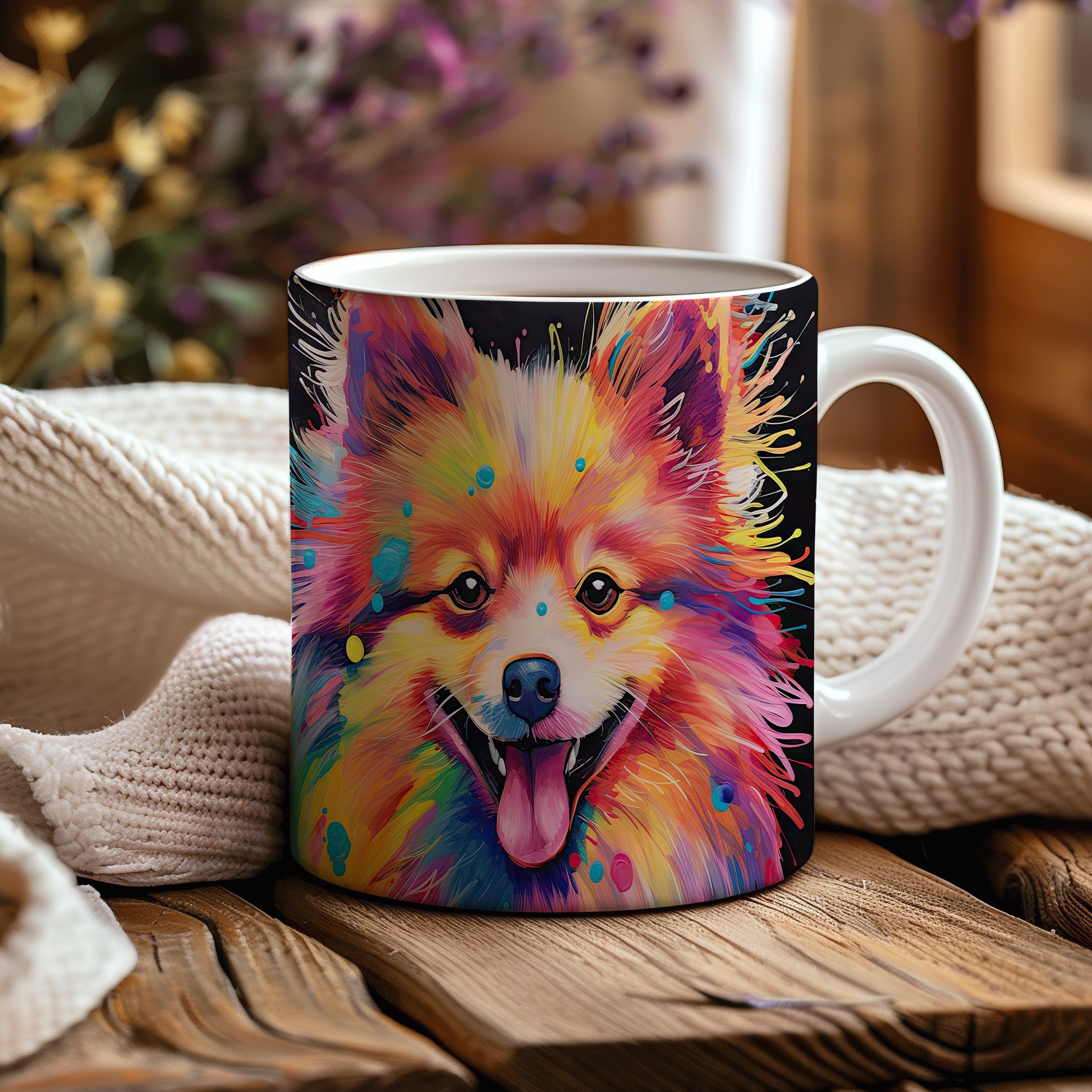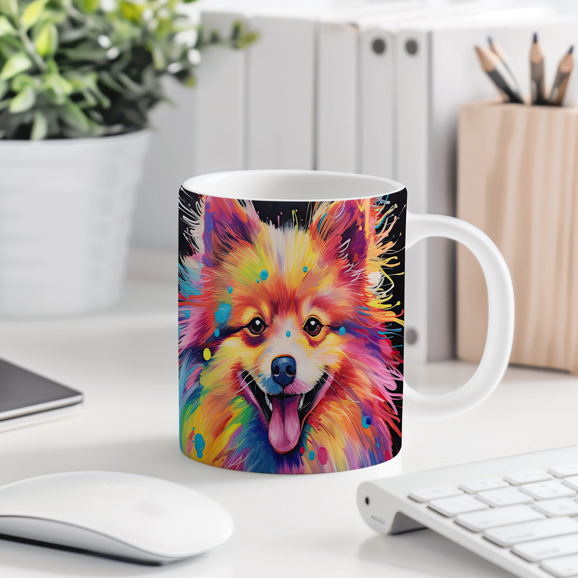 Tento hrnek s veselým psem přináší radost do každého dne. Motiv zobrazuje barevného Pomeraniana s usmívající se tváří, ideální pro milovníky zvířat. Skvělý tip na dárek pro přátele nebo rodinu. Materiál: keramika. Objem: 330 ml. Vhodné do myčky i mikrovlnky. Užijte si každé sousto s úsměvem na tváři.