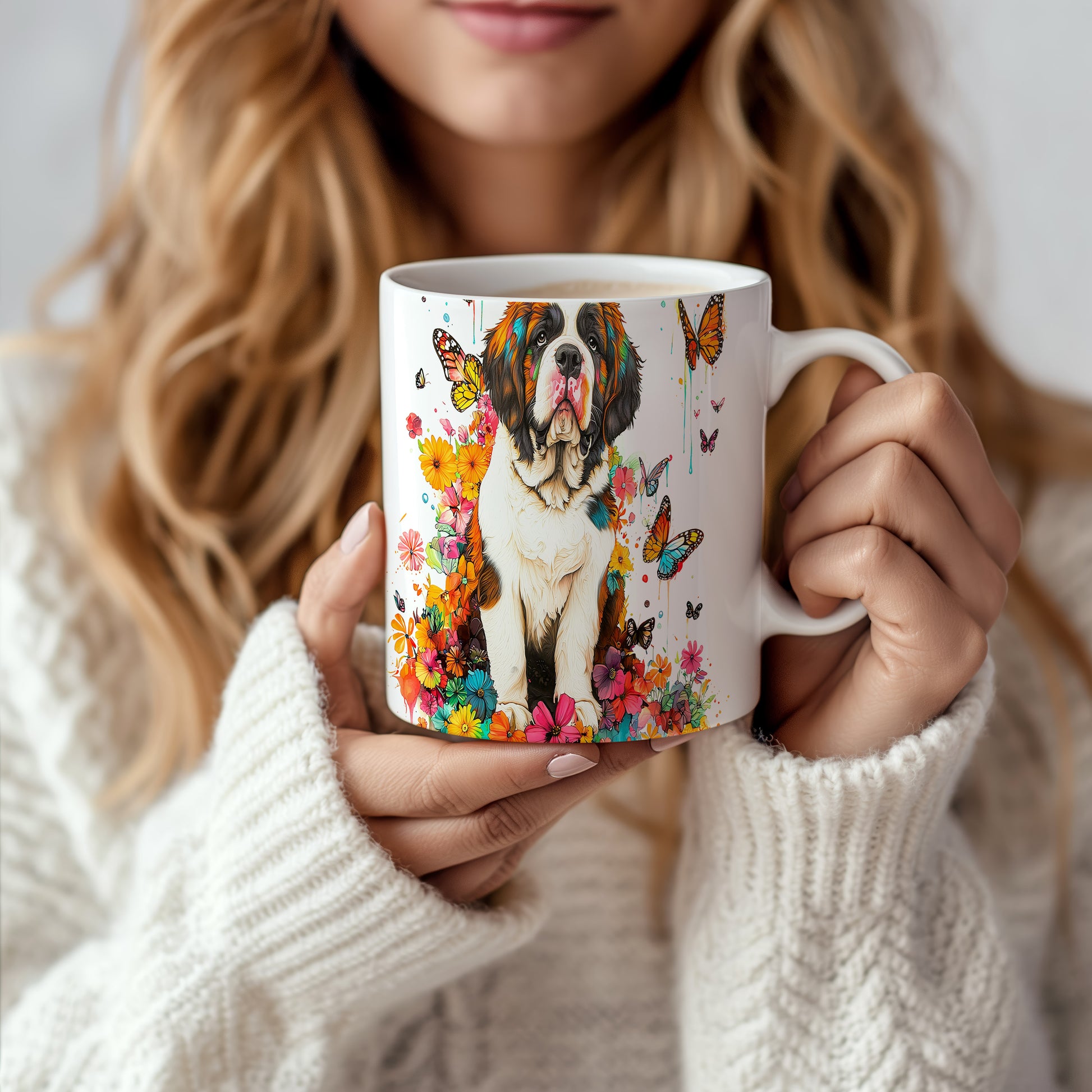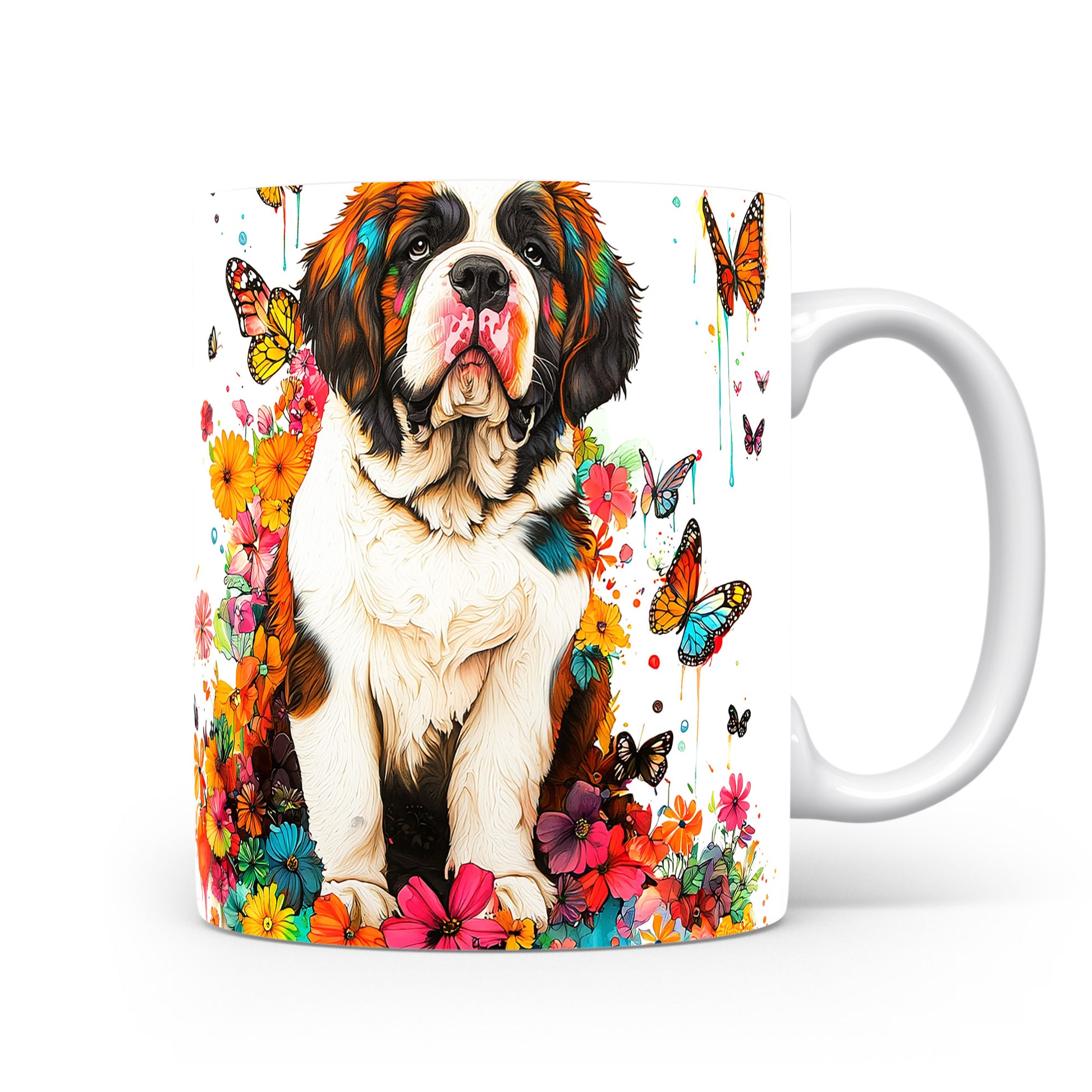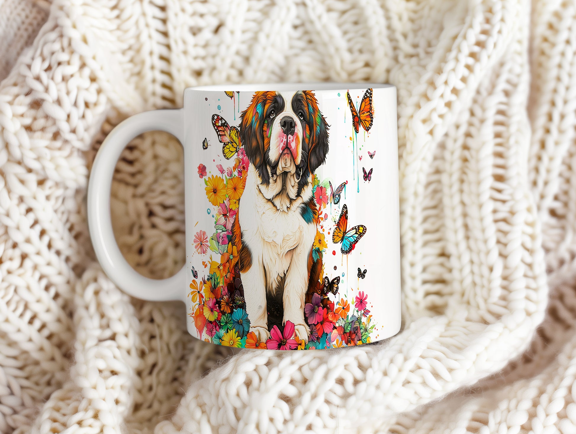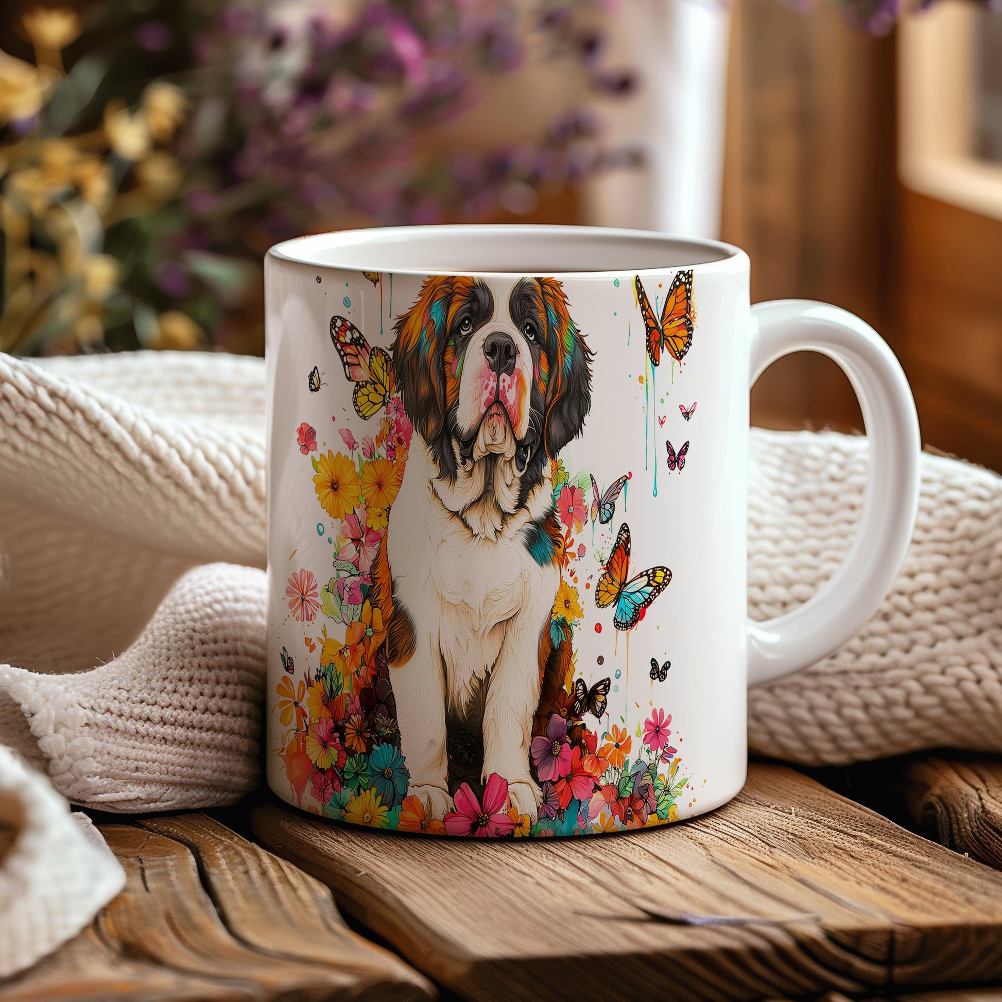 Tento keramický hrnek s motivem psa plemene St. Bernard a barevnými květinami přináší do každého dne radost a pohodu. Je ideální pro milovníky psů a přírody, skvělý tip na dárek pro přátele nebo rodinu. Materiál: keramika. Objem: 330 ml. Vhodné do myčky i mikrovlnky. Užívejte si svůj oblíbený nápoj s tímto stylovým hrnkem, který vám zpříjemní každou chvíli.