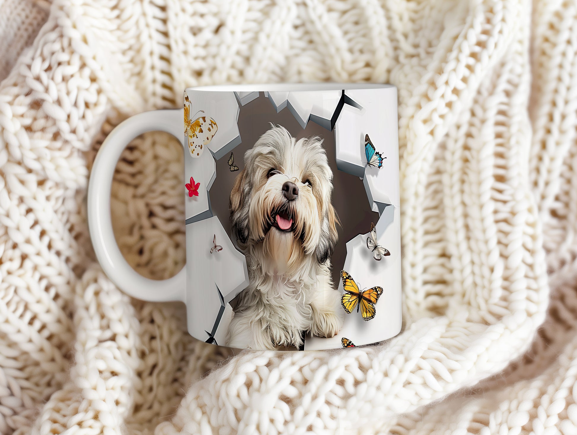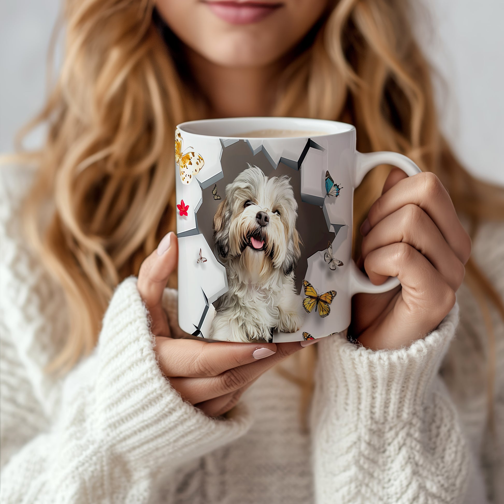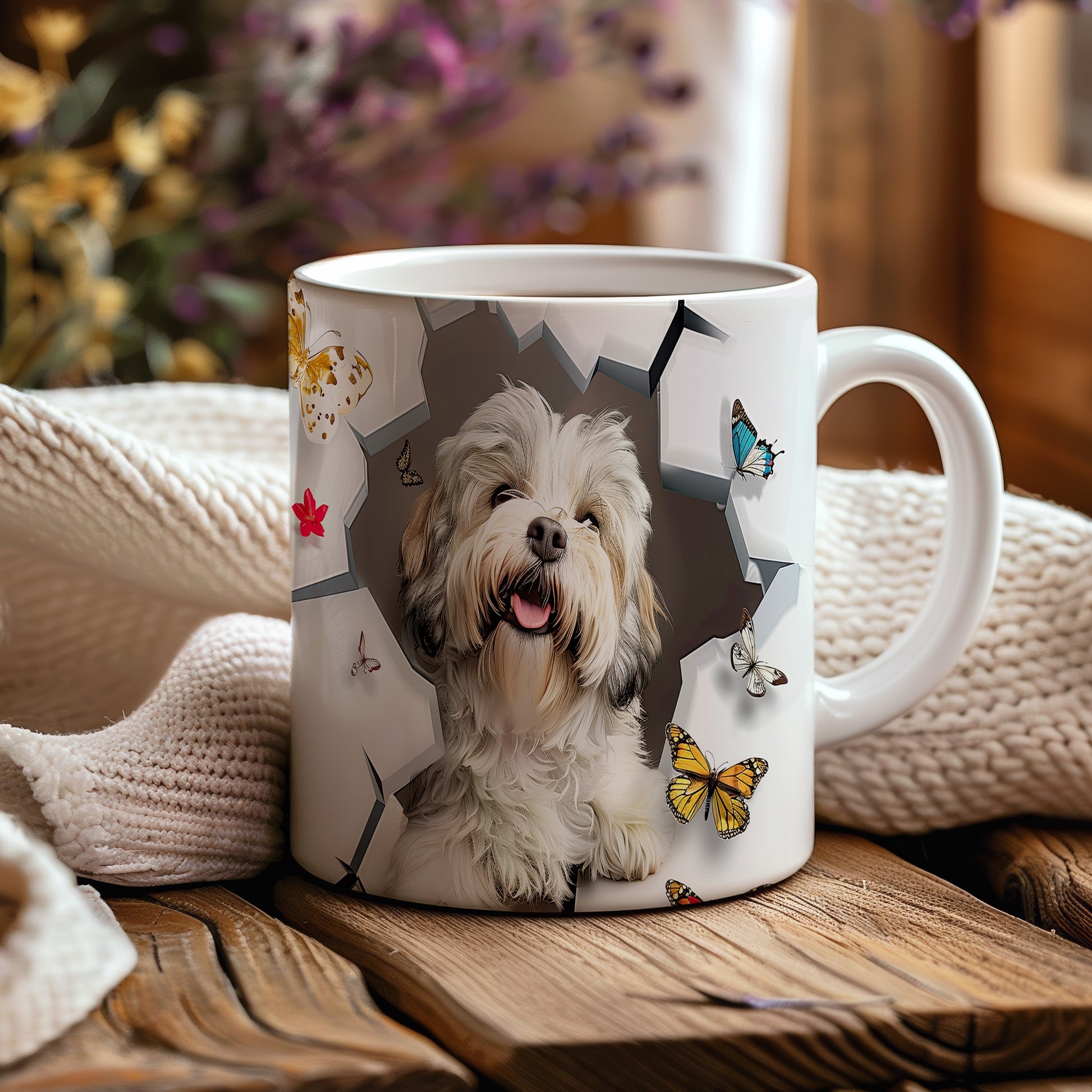 Tento keramický hrnek zobrazuje roztomilého pejska s veselým úsměvem a barevnými motýly. Je ideální pro milovníky zvířat a skvělým dárkem pro přátele či rodinu. Materiál: keramika. Objem: 330 ml. Vhodné do myčky i mikrovlnky. Používání tohoto hrnku přináší radost do každodenního pití.