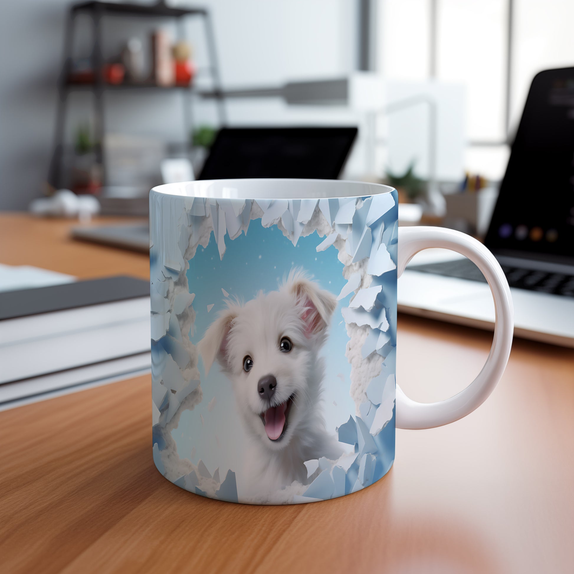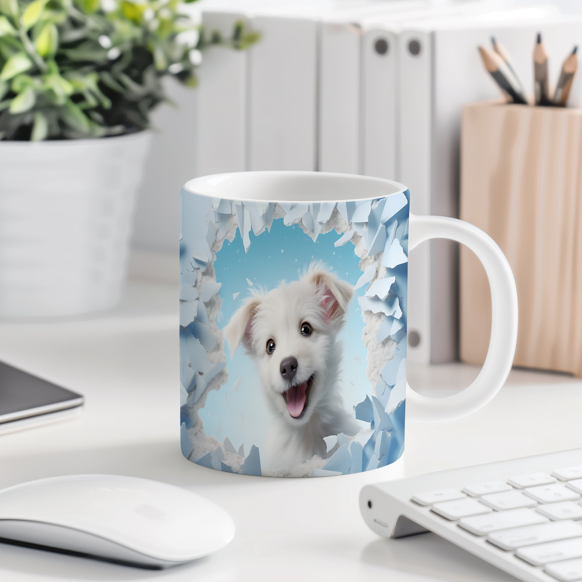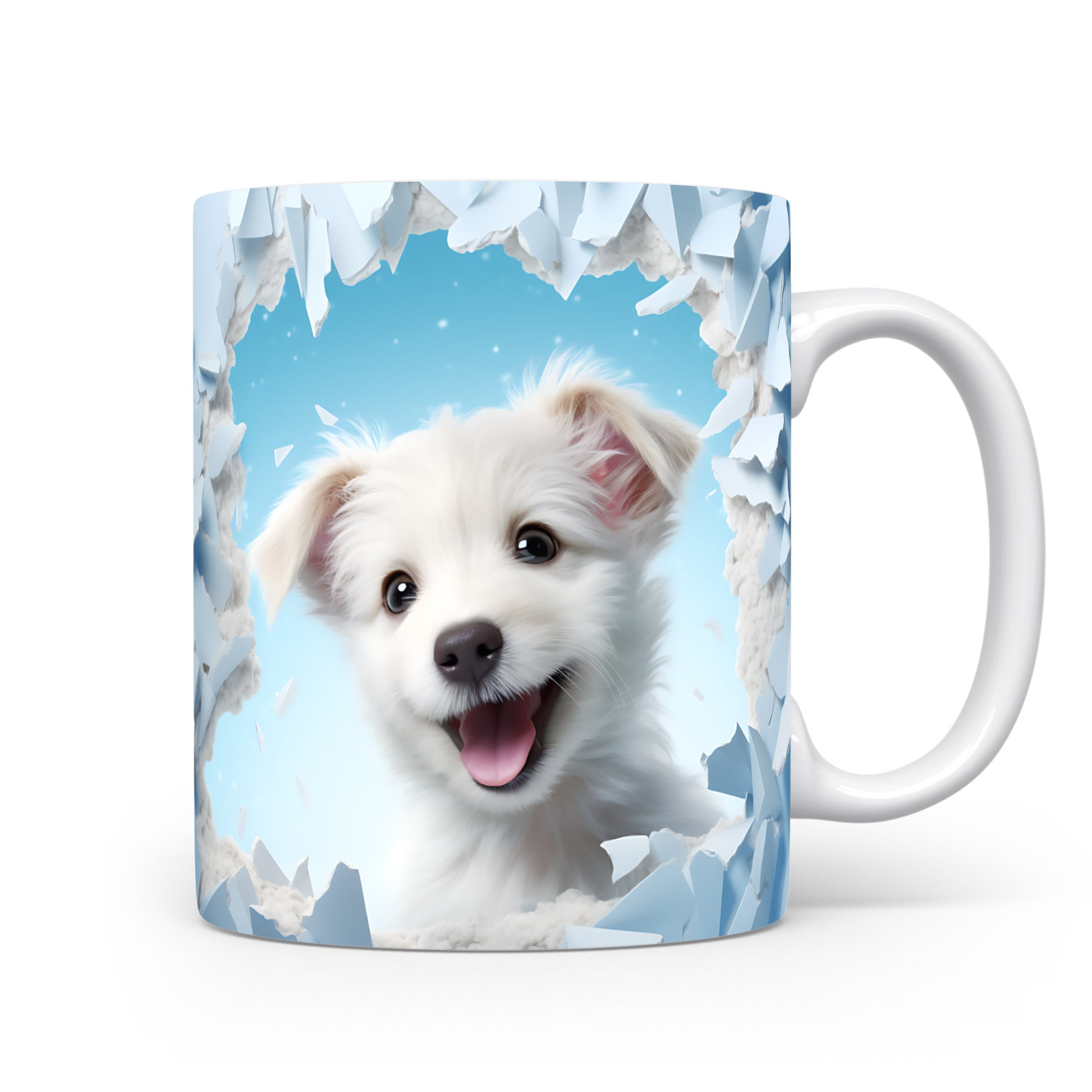 Tento hrnek zobrazuje roztomilé bílé štěně s nadšeným výrazem. Je ideální pro milovníky psů a skvělým dárkem pro každého, kdo si rád vychutnává kávu nebo čaj. Materiál: keramika. Objem: 330 ml. Vhodné do myčky i mikrovlnky. Používání tohoto hrnku přináší radost a útulnost do každého dne.