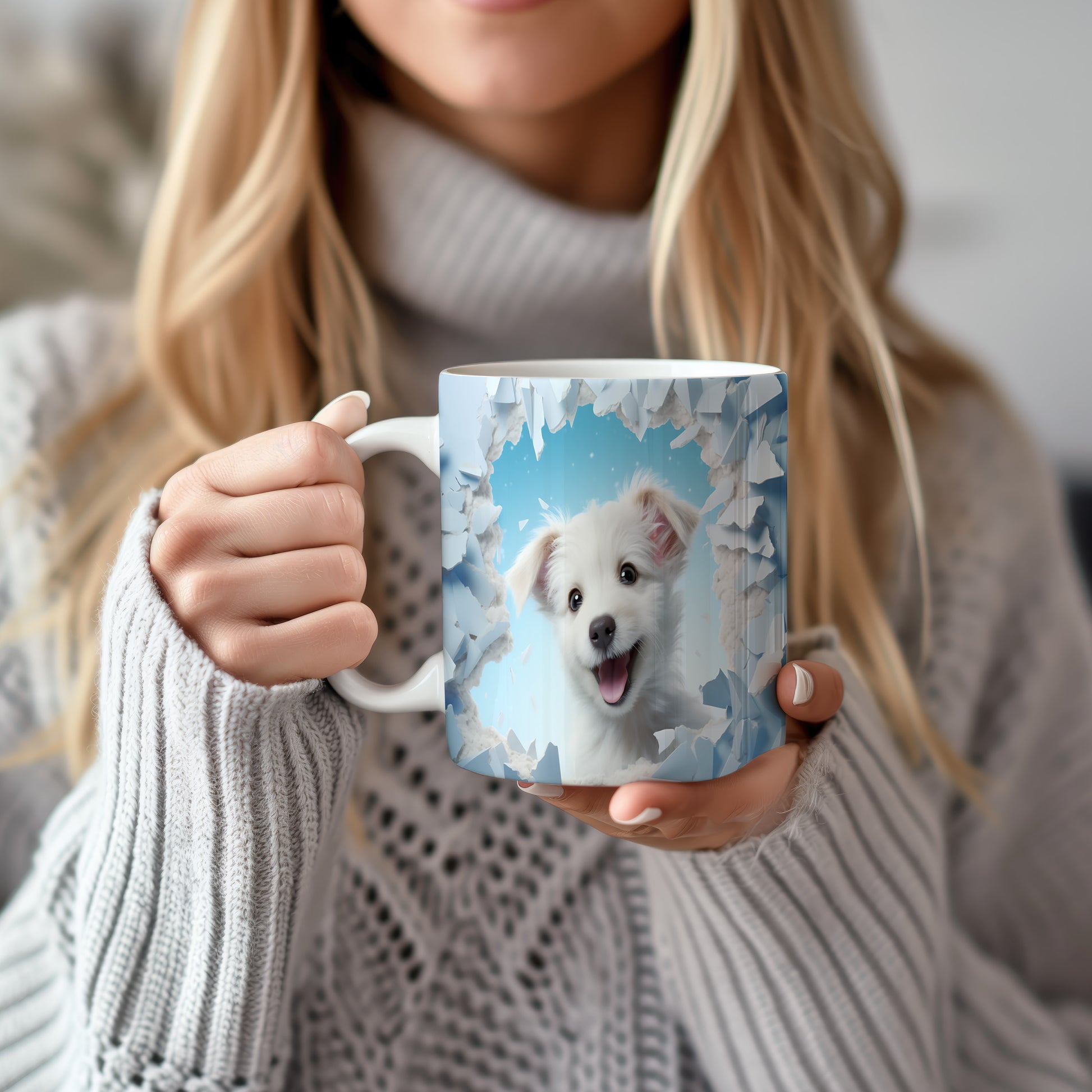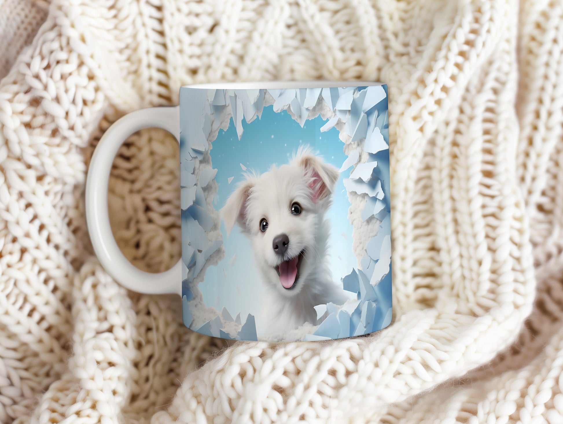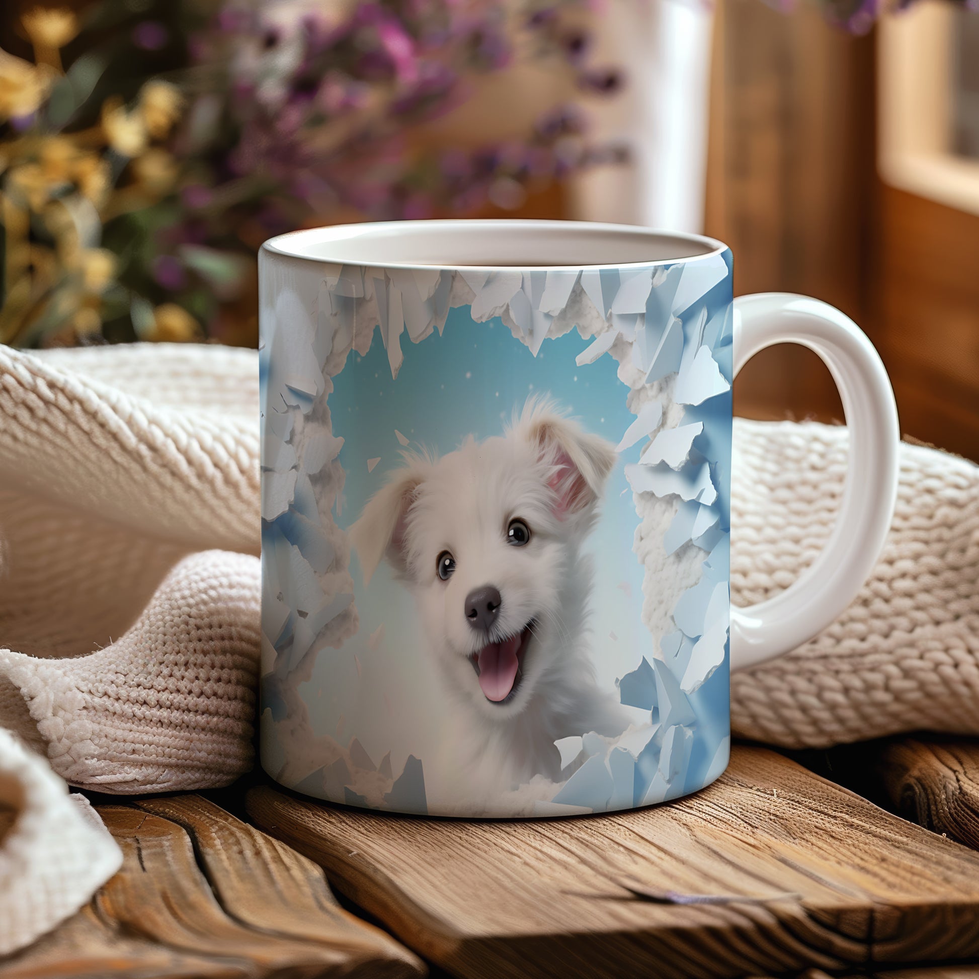 Tento hrnek zobrazuje roztomilé bílé štěně s nadšeným výrazem. Je ideální pro milovníky psů a skvělým dárkem pro každého, kdo si rád vychutnává kávu nebo čaj. Materiál: keramika. Objem: 330 ml. Vhodné do myčky i mikrovlnky. Používání tohoto hrnku přináší radost a útulnost do každého dne.