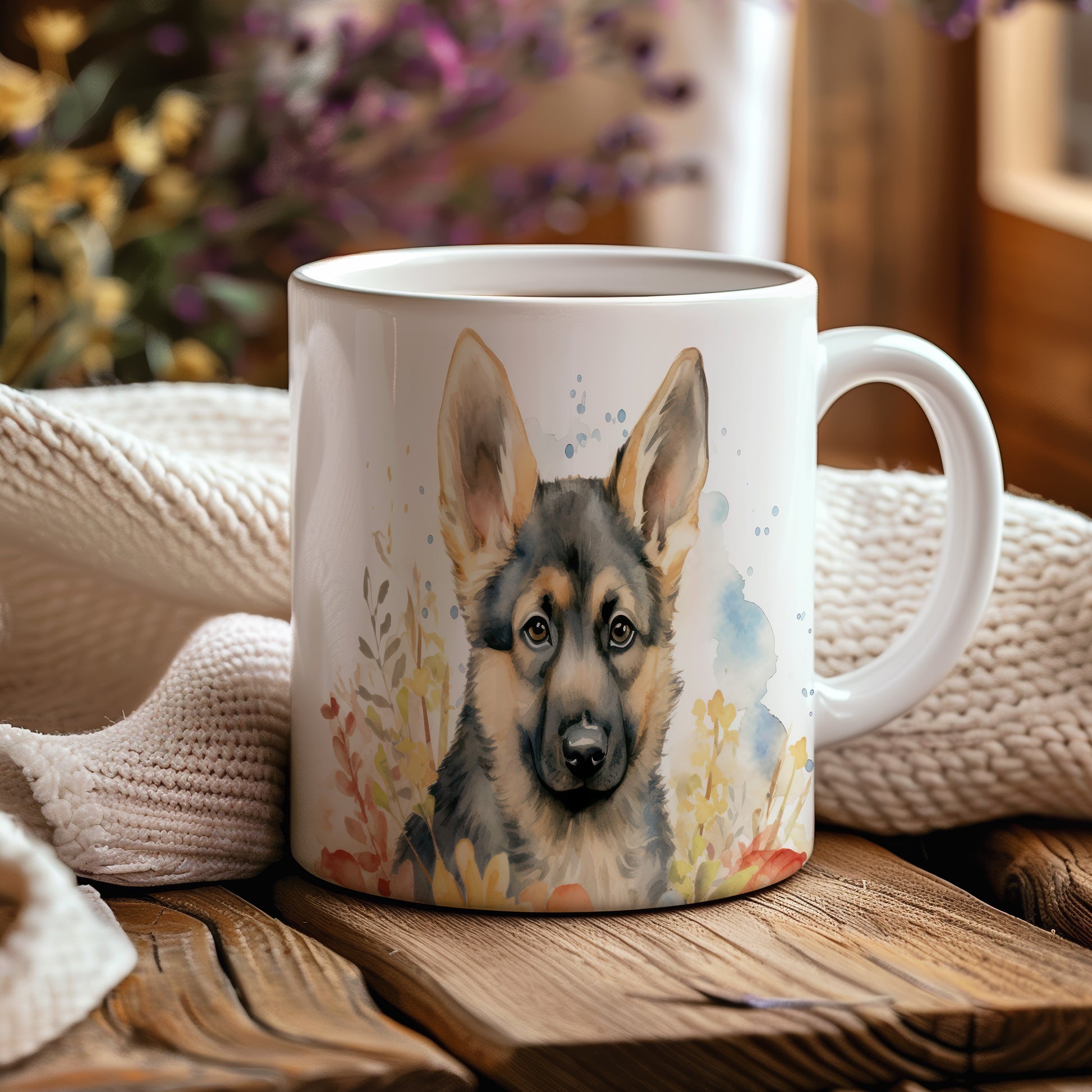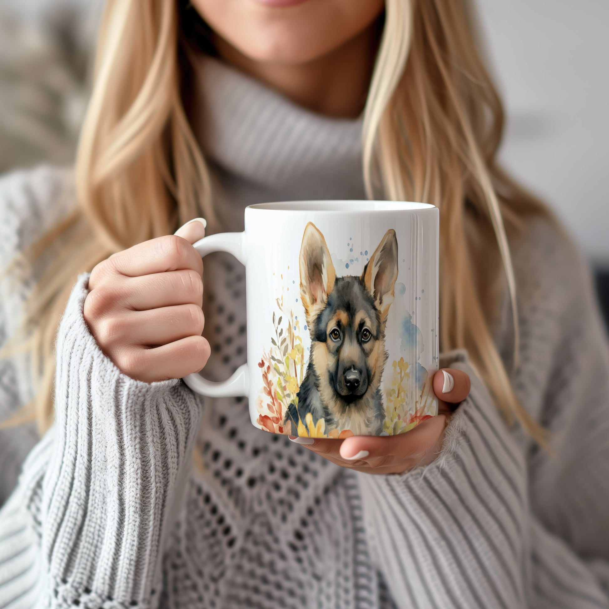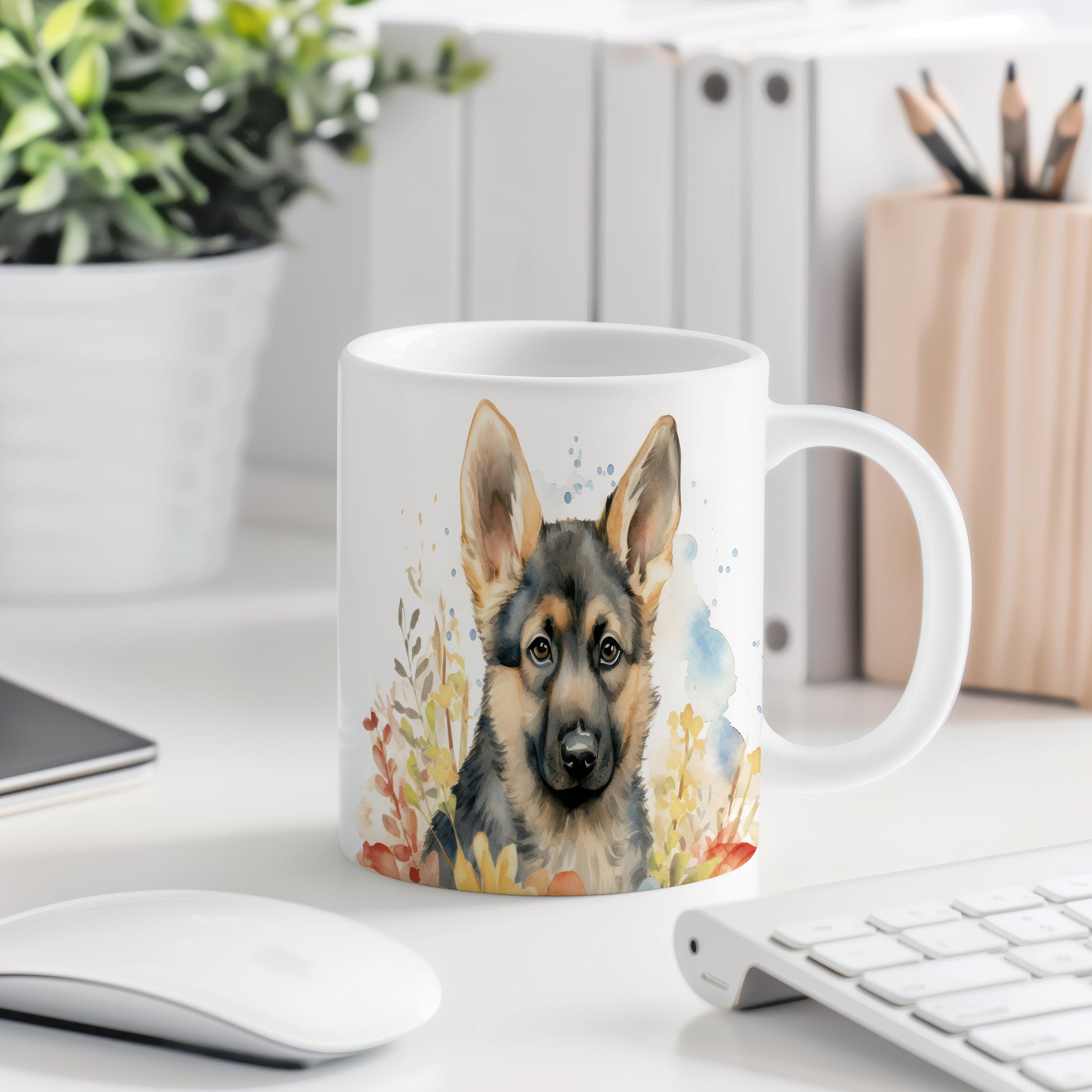 Hrnek s motivem štěněte německého ovčáka v květinách je ideálním společníkem pro milovníky psů a přírody. Tento hrnek potěší každého, kdo hledá originální dárek pro přátele nebo rodinu. Materiál: keramika. Objem: 330 ml. Vhodné do myčky i mikrovlnky. Užívejte si kávu nebo čaj s nádechem přírody a radosti.