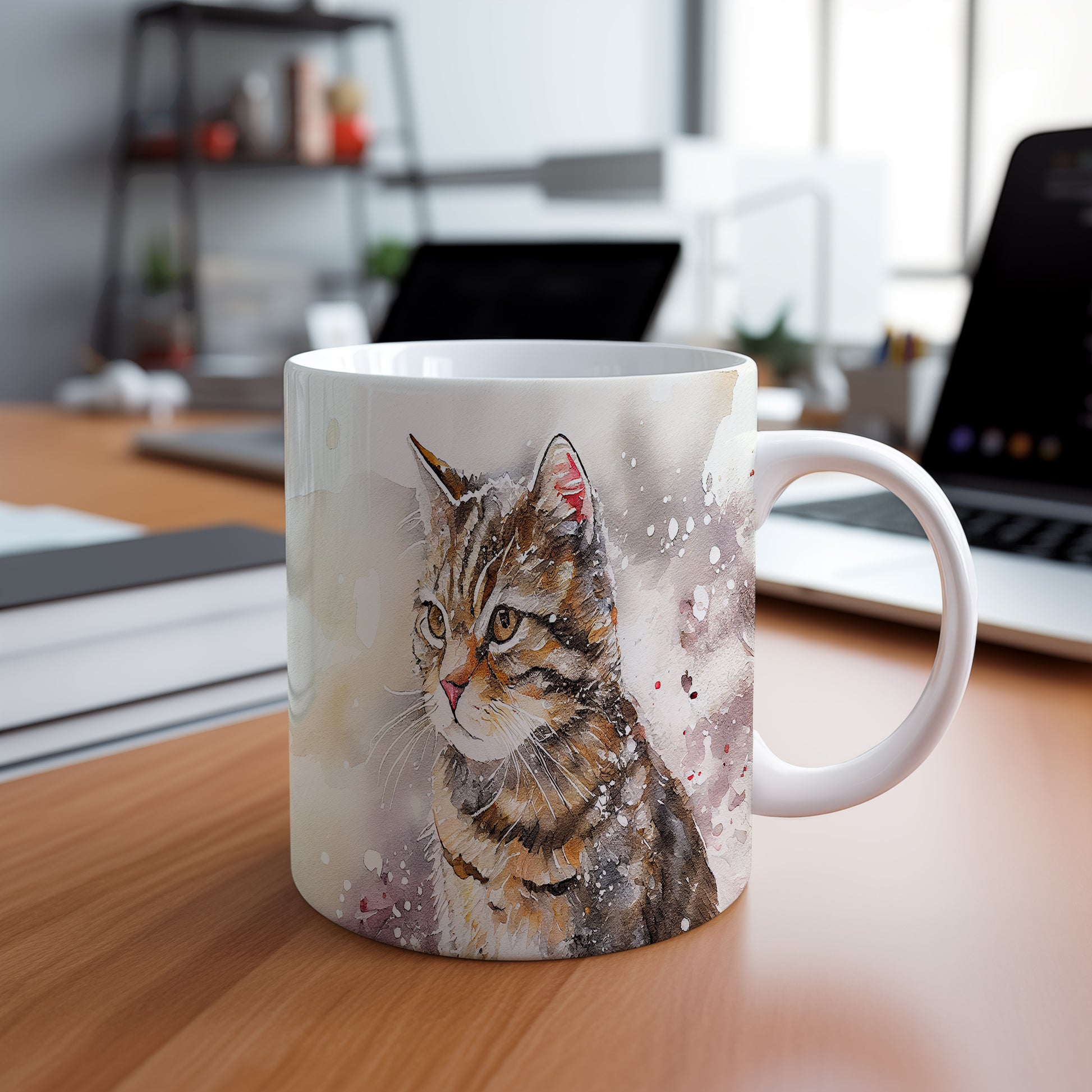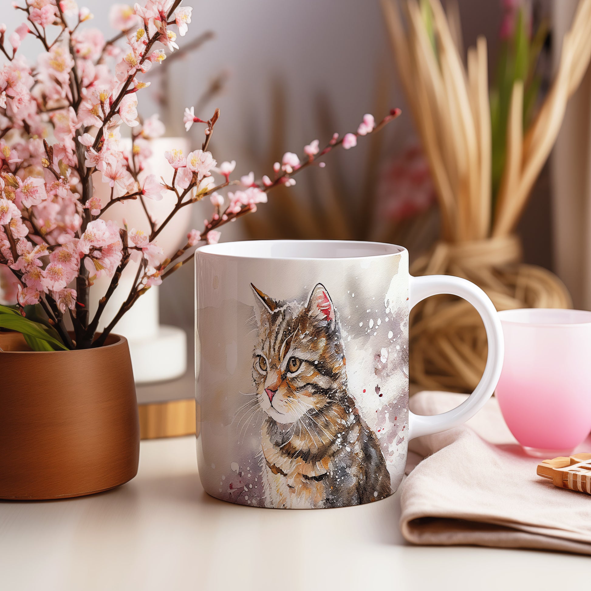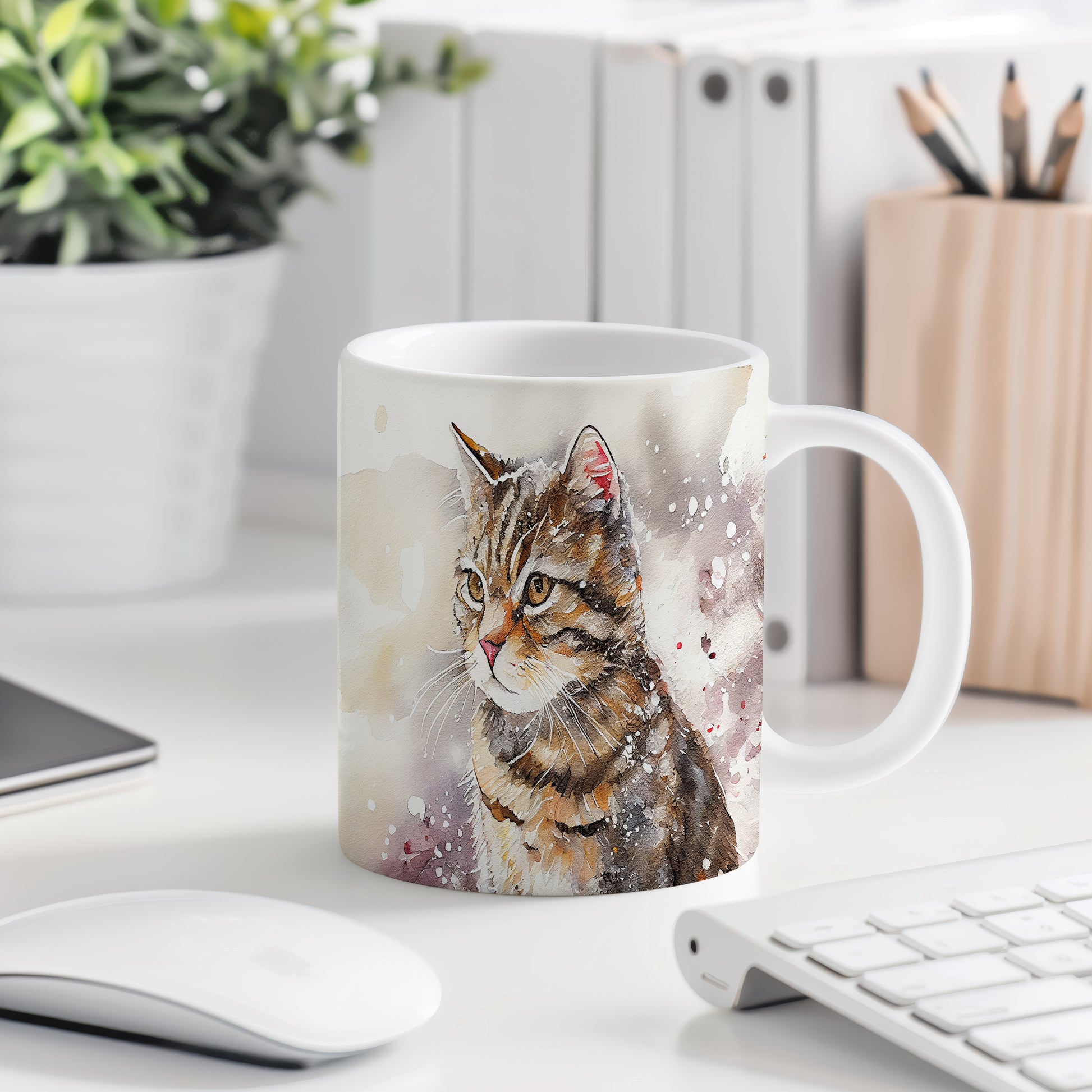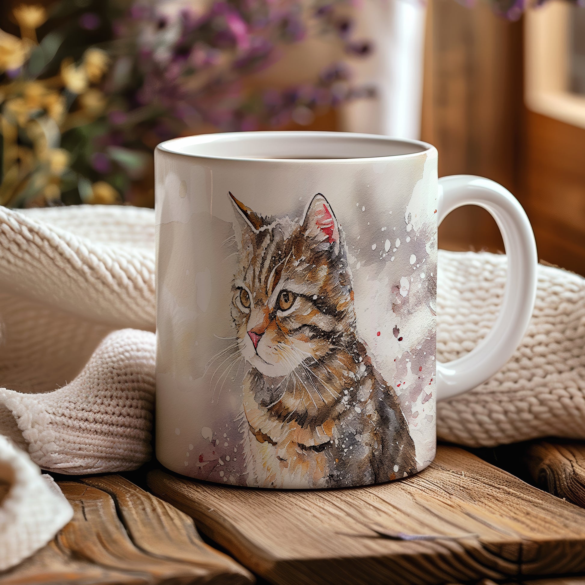 Hrnek se stylizovanou kočkou v akvarelovém stylu je skvělým doplňkem pro milovníky těchto domácích mazlíčků. Tento hrnek je ideální jako dárek pro přátele nebo rodinu, kteří mají rádi kočky. Materiál: keramika. Objem: 330 ml. Vhodné do myčky i mikrovlnky. Používání tohoto hrnku přináší radost a pohodlí při každém doušku.