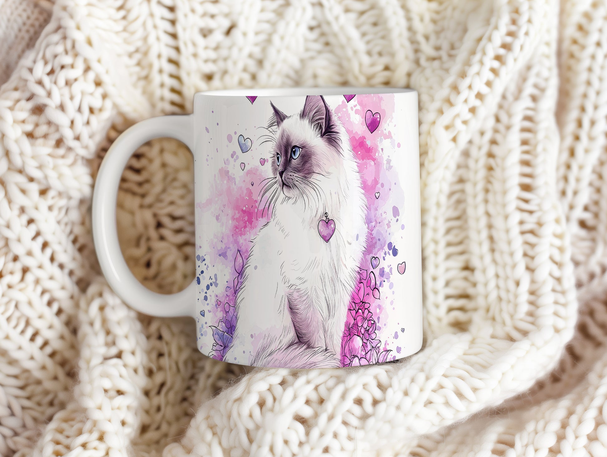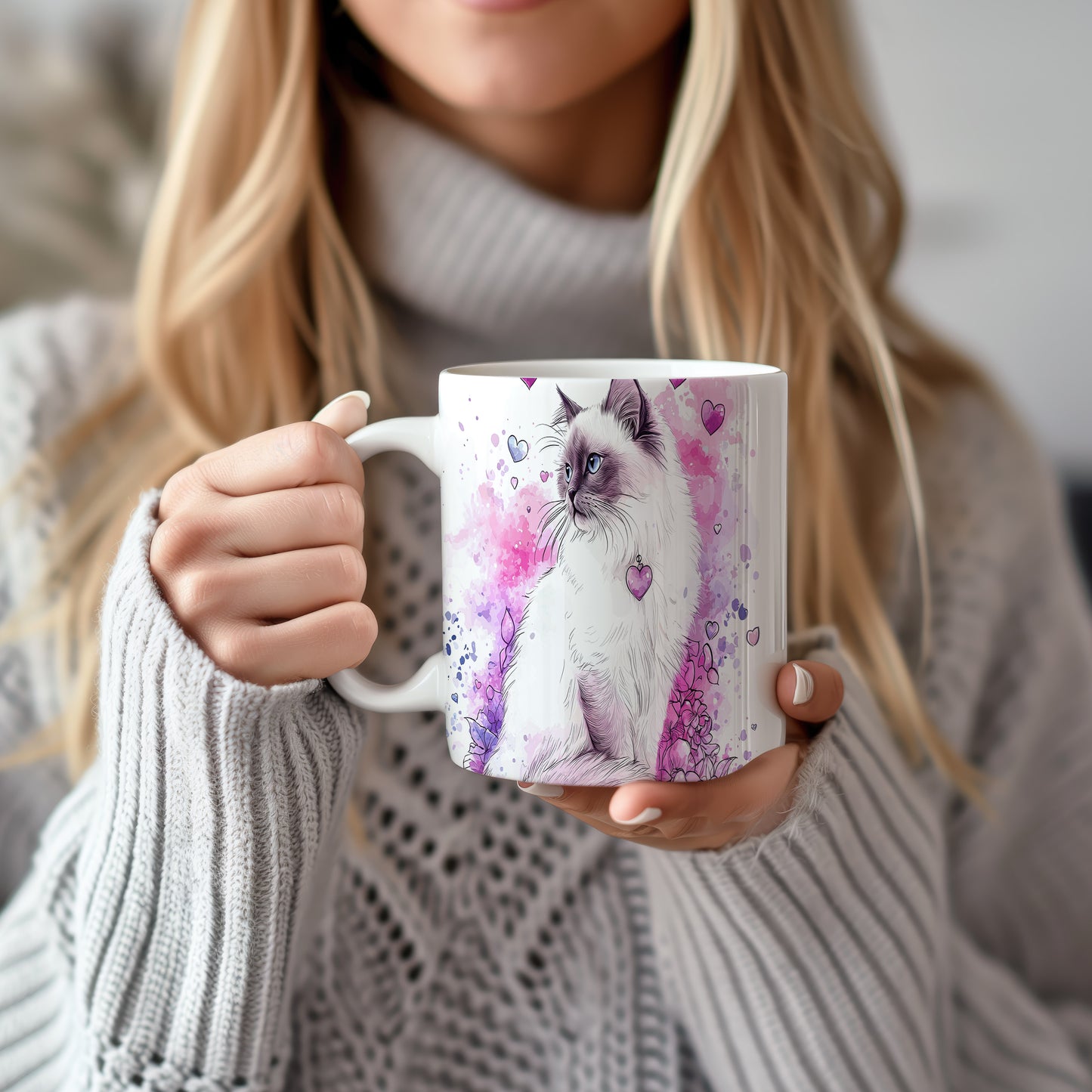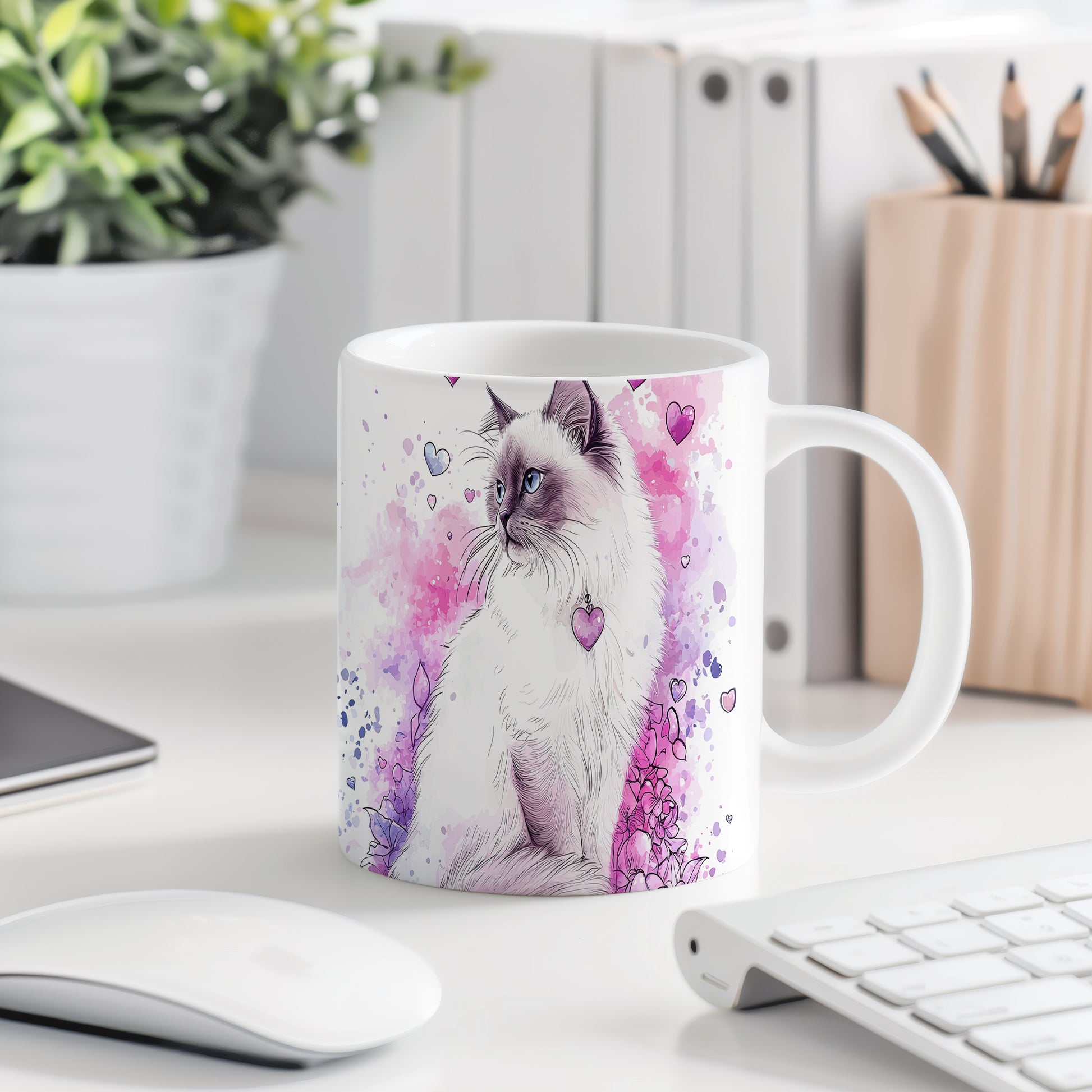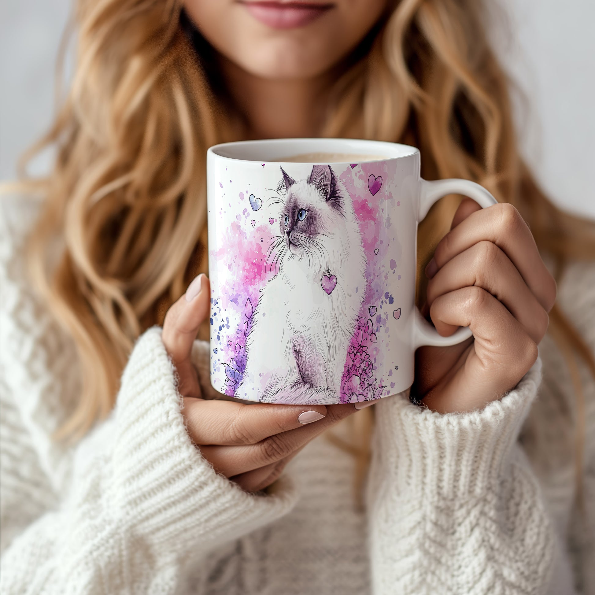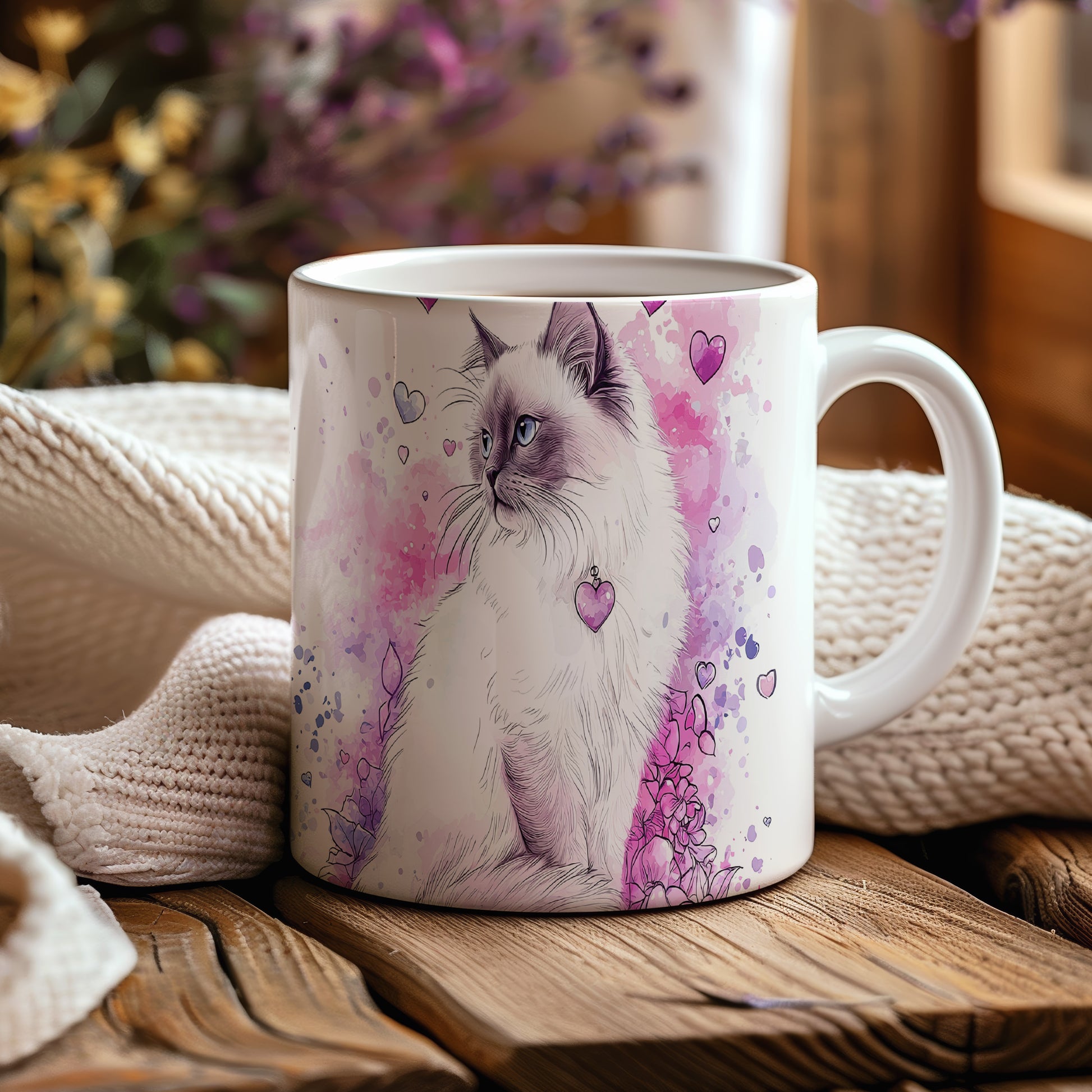 Elegantní hrnek s motivem kočky a veselými srdíčky. Tento hrnek je ideální pro milovníky koček a skvělým dárkem pro přátele nebo rodinu. Materiál: keramika. Objem: 330 ml. Vhodné do myčky i mikrovlnky. Používání tohoto hrnku přináší radost a zútulňuje každé pití.