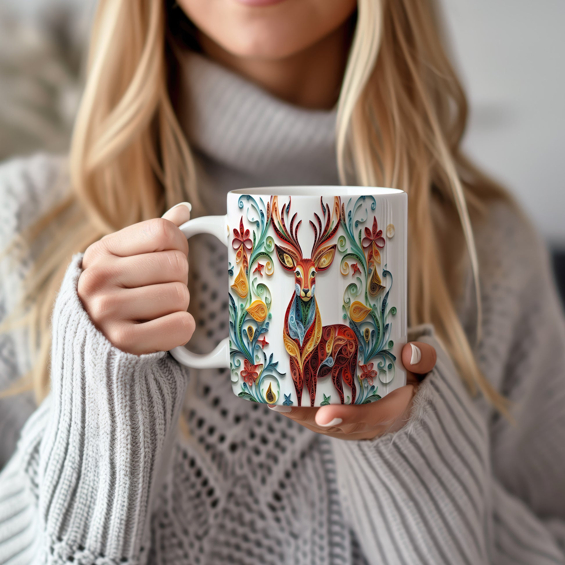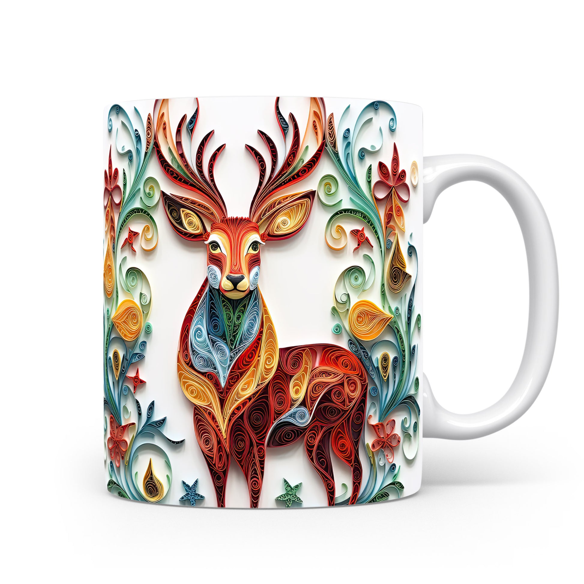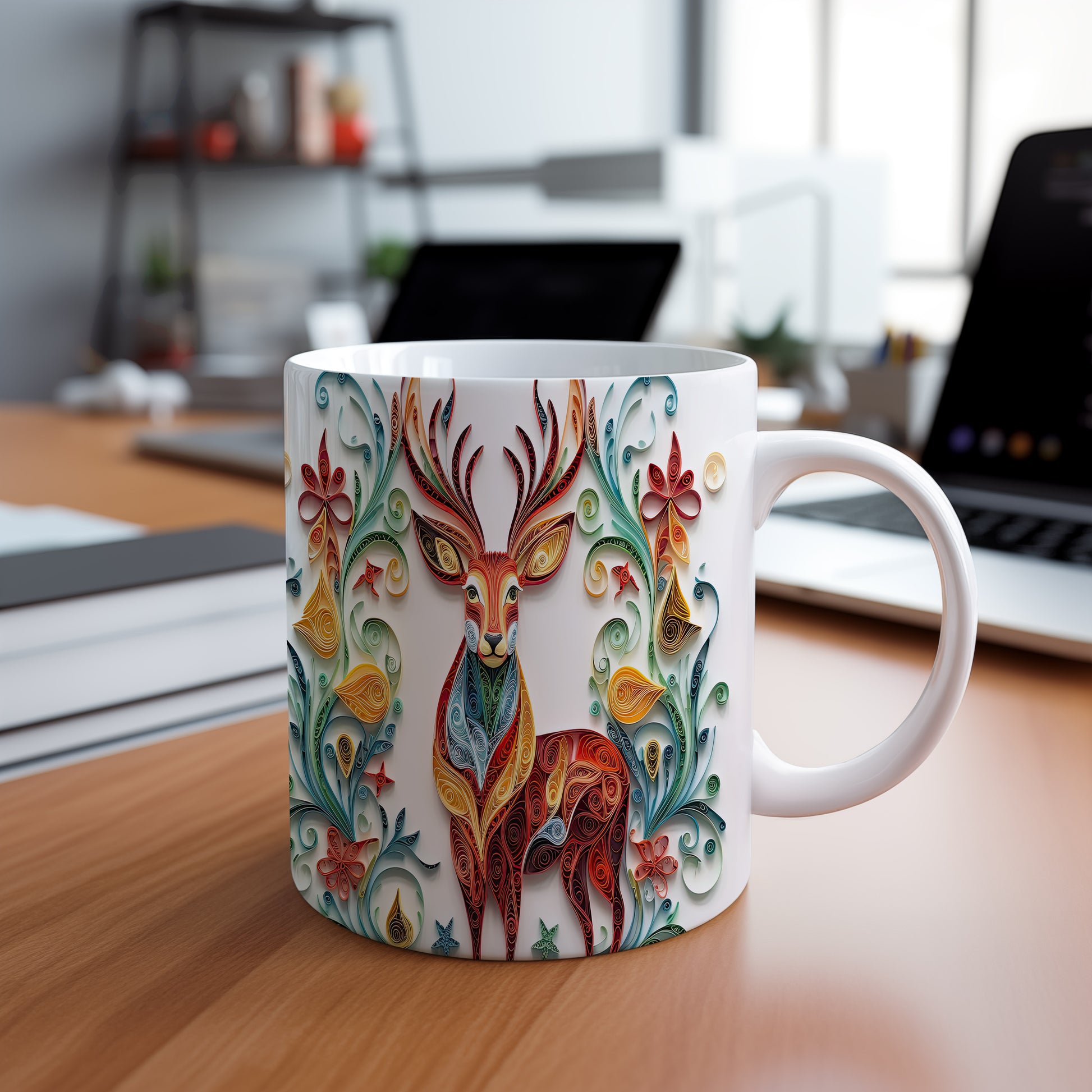 Hrnek s motivem stylového jelena a ornamenty je skvělým doplňkem pro každodenní pití. Tento hrnek potěší všechny milovníky přírody a je ideálním dárkem pro přátele či rodinu. Materiál: keramika. Objem: 330 ml. Vhodné do myčky i mikrovlnky. Díky svému designu přináší radost a oživí každý okamžik pití.