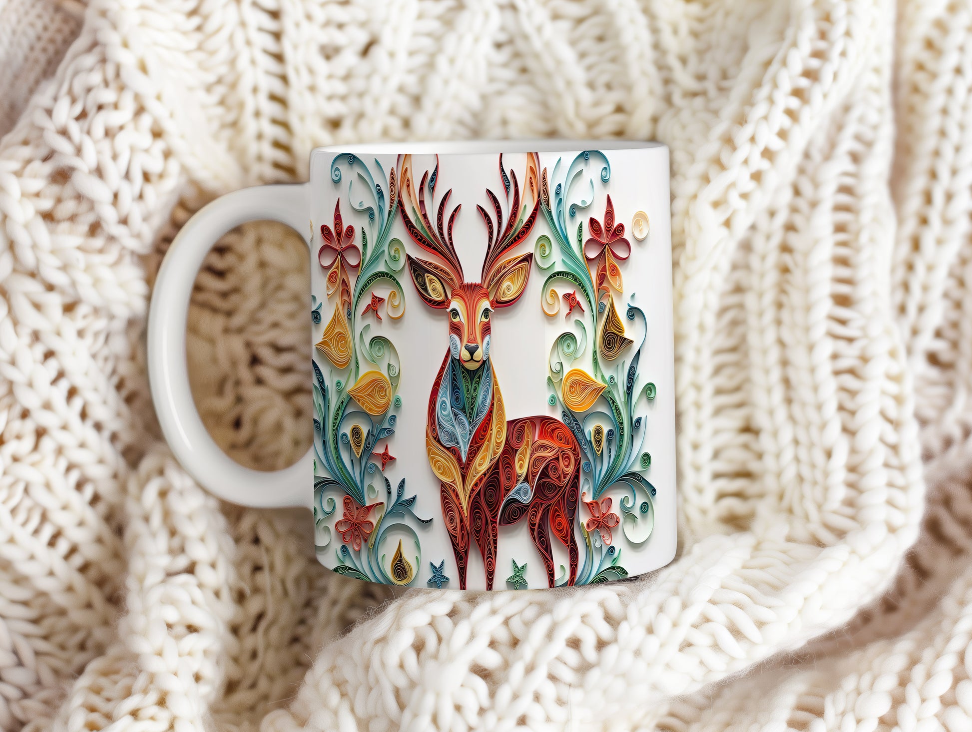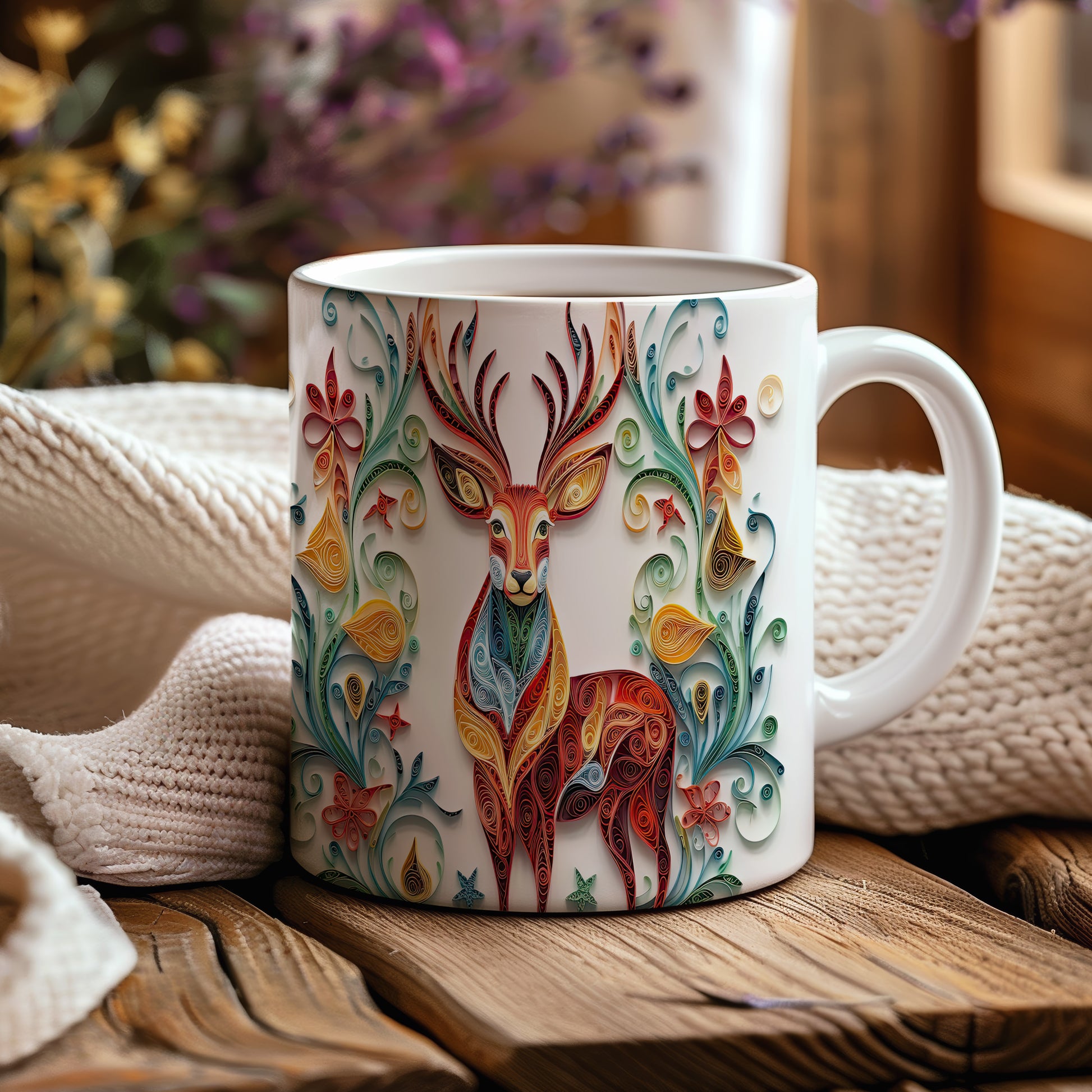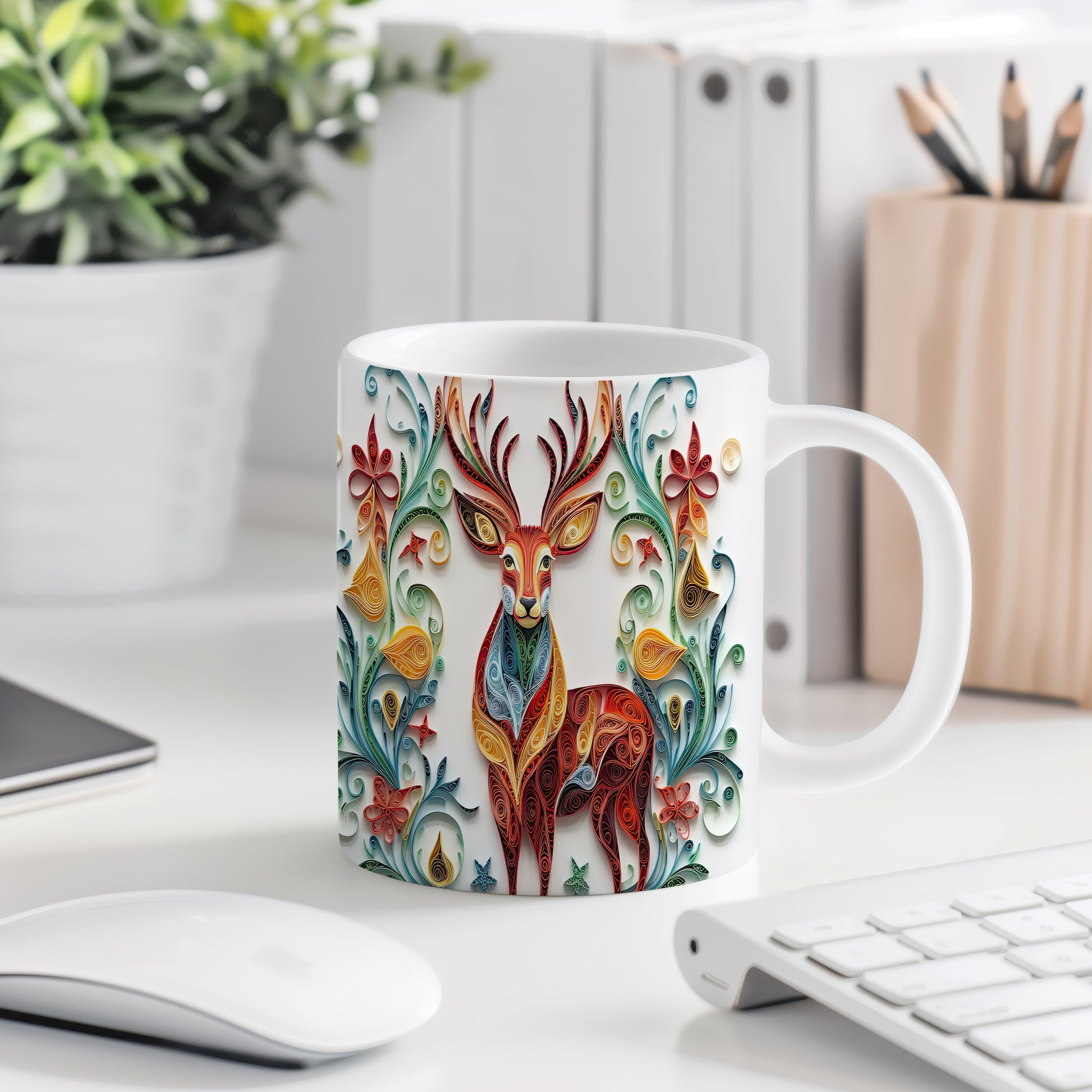 Hrnek s motivem stylového jelena a ornamenty je skvělým doplňkem pro každodenní pití. Tento hrnek potěší všechny milovníky přírody a je ideálním dárkem pro přátele či rodinu. Materiál: keramika. Objem: 330 ml. Vhodné do myčky i mikrovlnky. Díky svému designu přináší radost a oživí každý okamžik pití.
