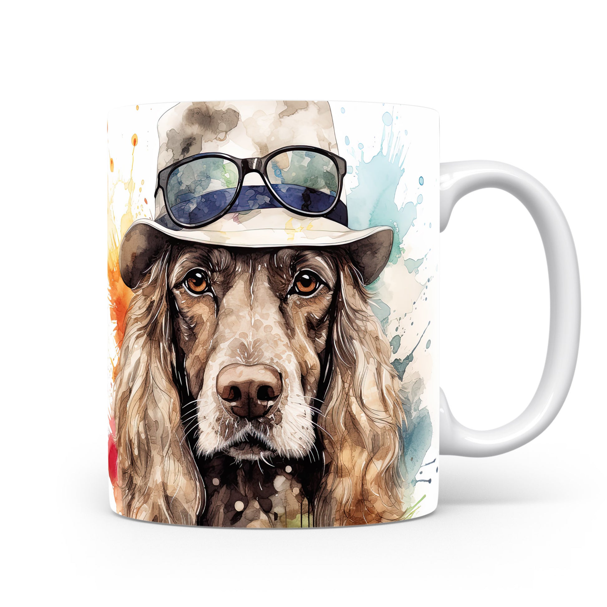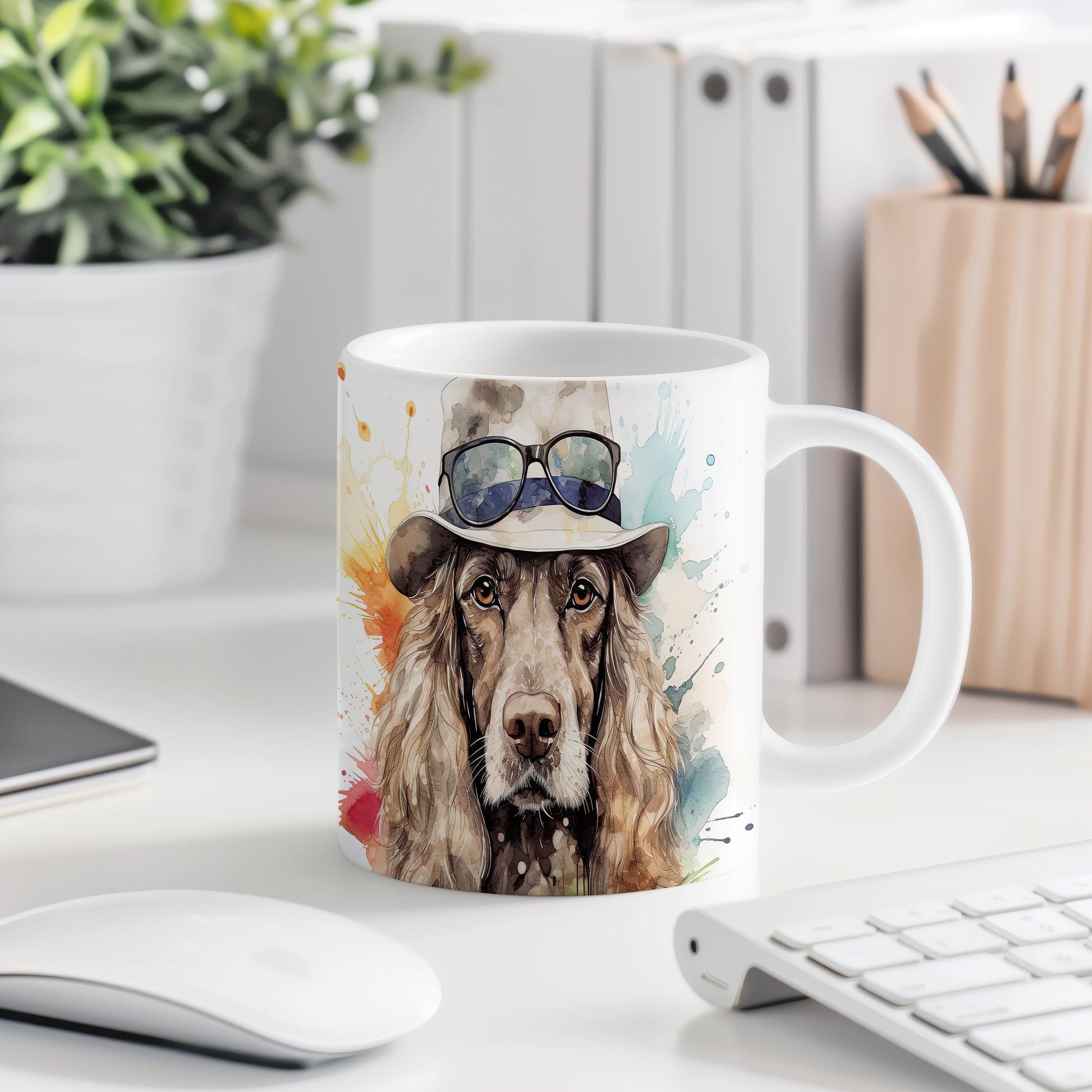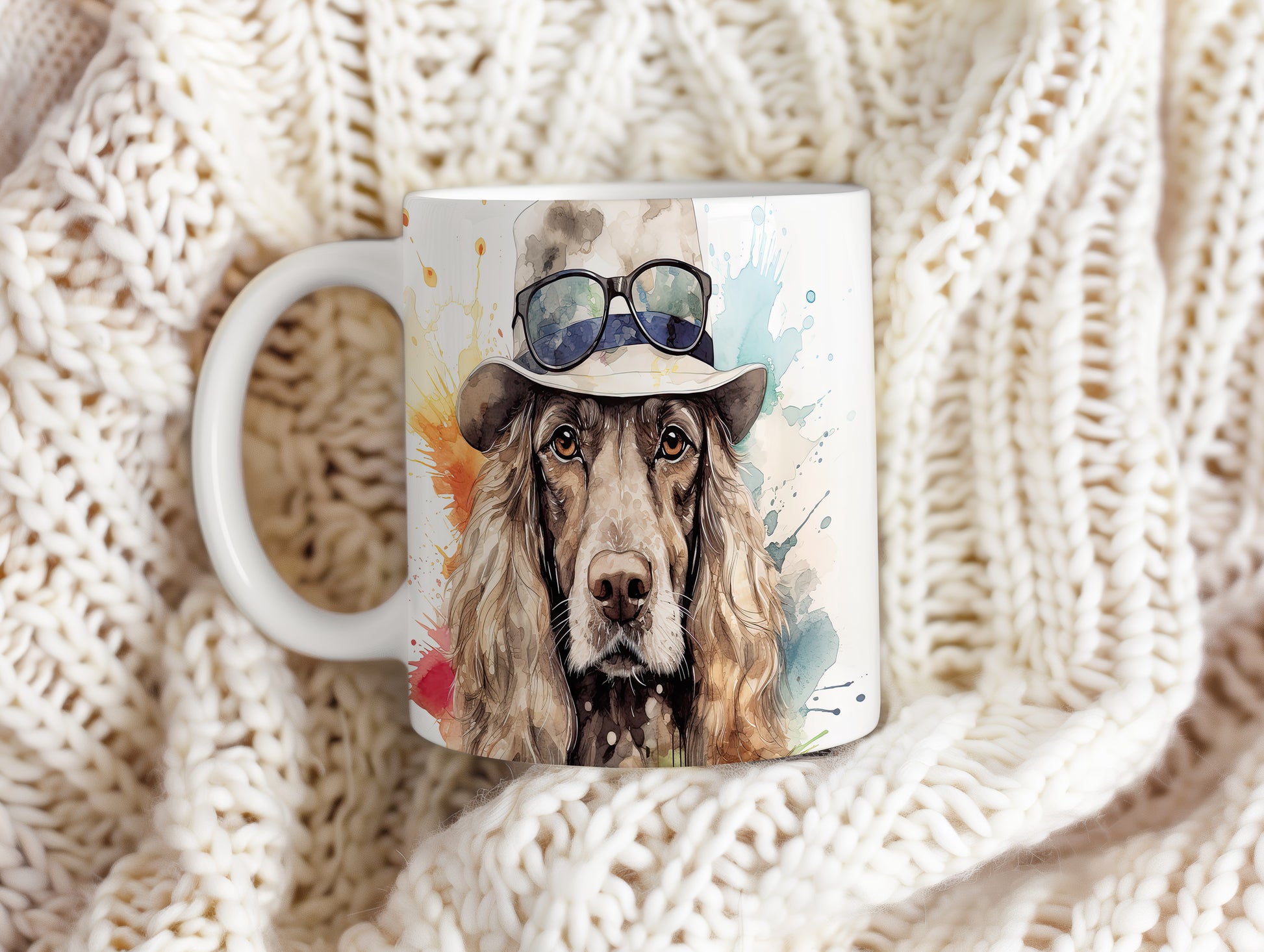 Hrnek se stylovým kokršpanělím psem v klobouku