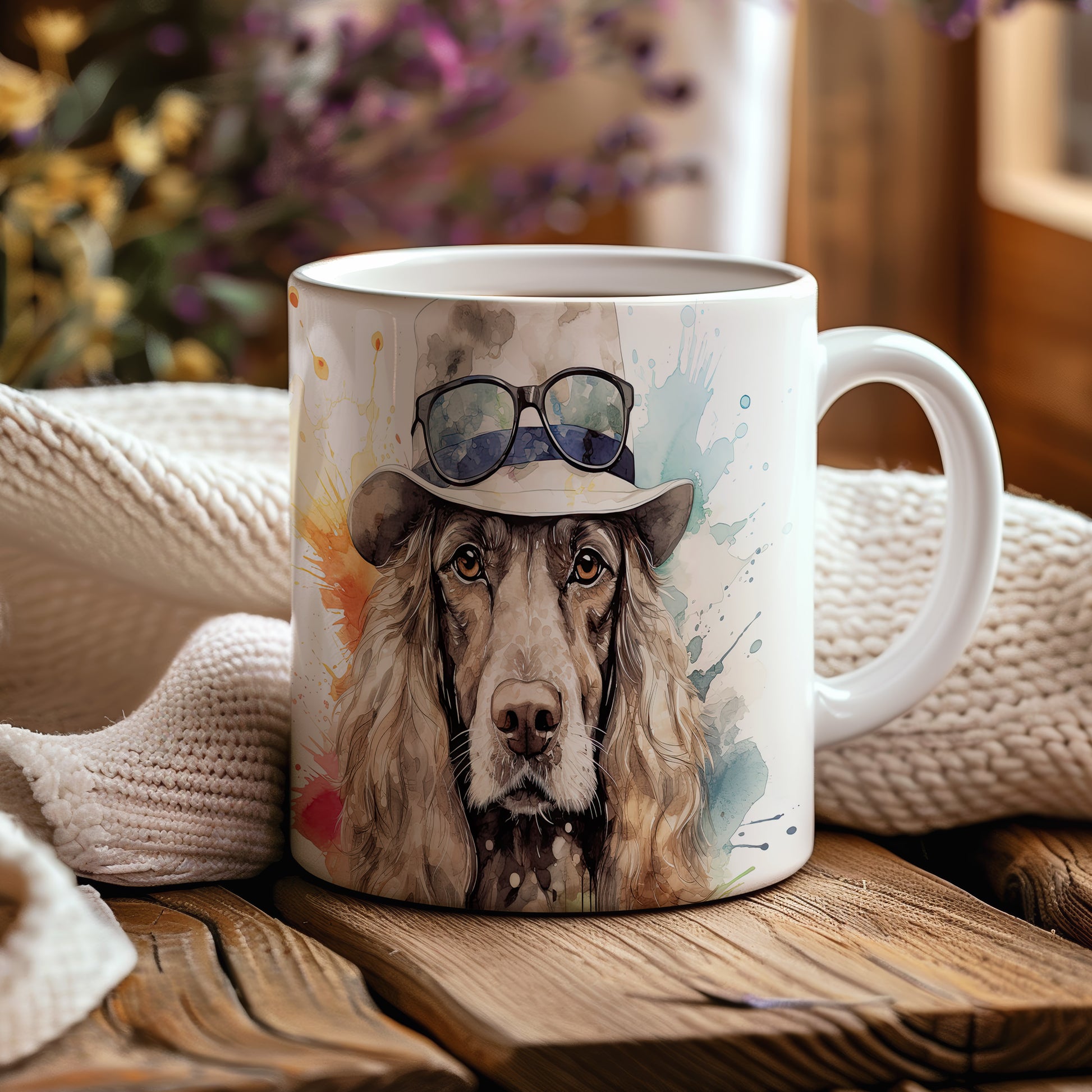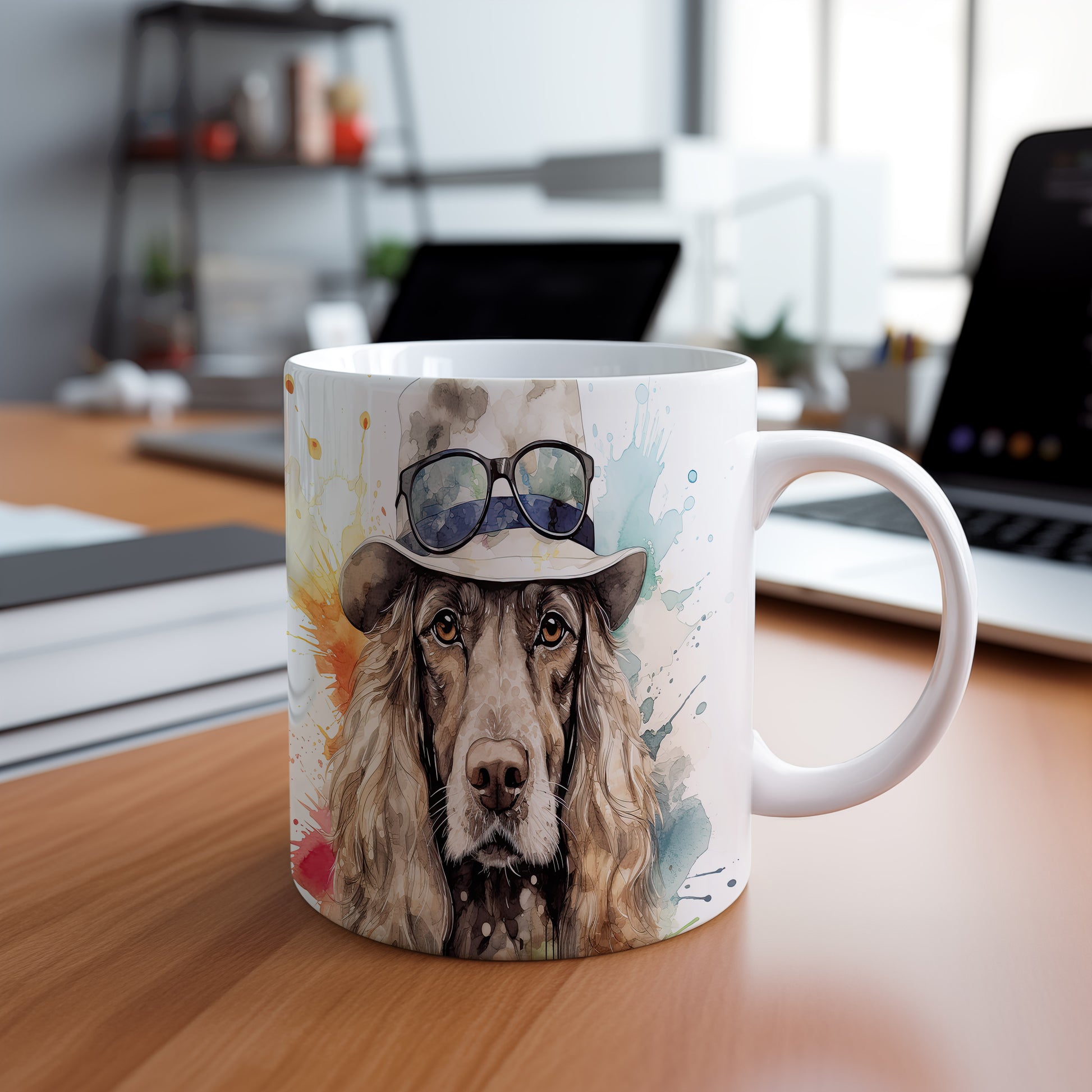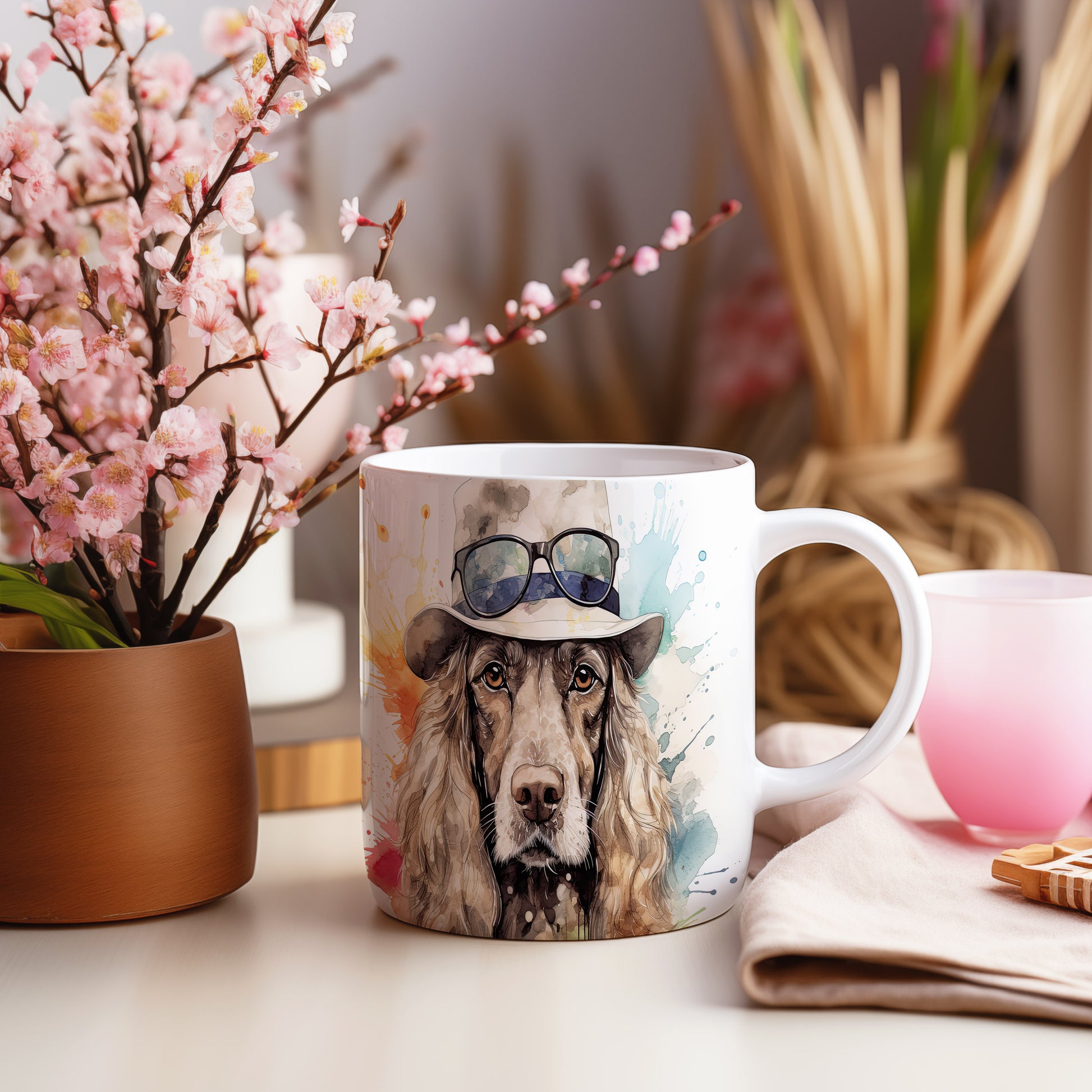 Hrnek se stylovým kokršpanělím psem v klobouku