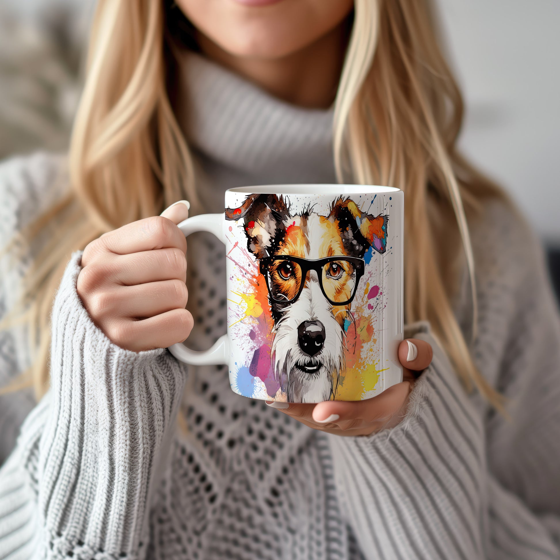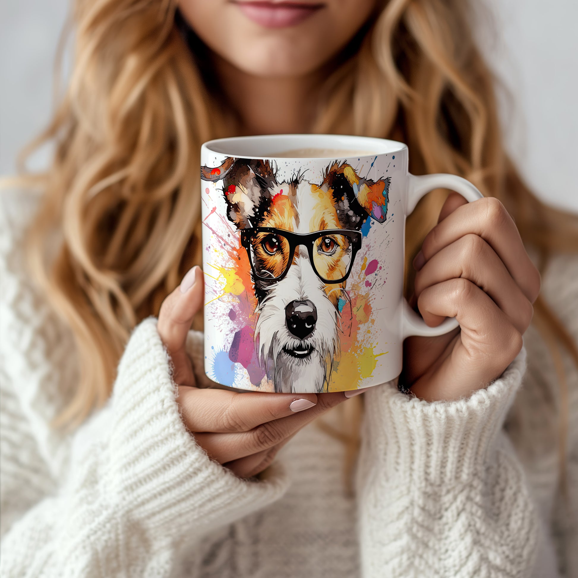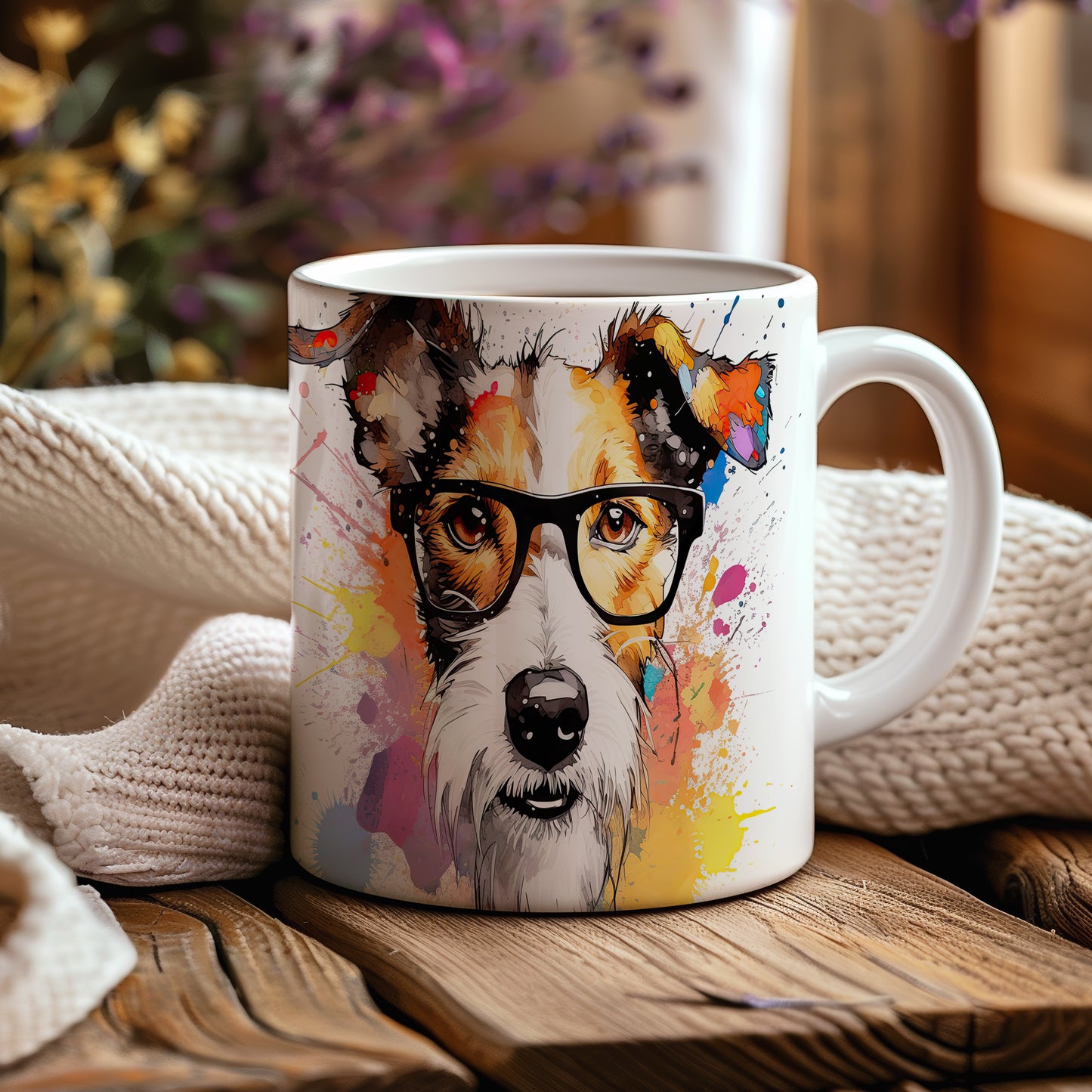 Na hrnku je zobrazen roztomilý pes v brýlích, obklopený barevnými skvrnami. Tento hrnek je ideální pro milovníky zvířat a skvělým dárkem pro přátele nebo rodinu. Materiál: keramika. Objem: 330 ml. Vhodné do myčky i mikrovlnky. Používání tohoto hrnku přináší radost a zábavu při každém doušku.