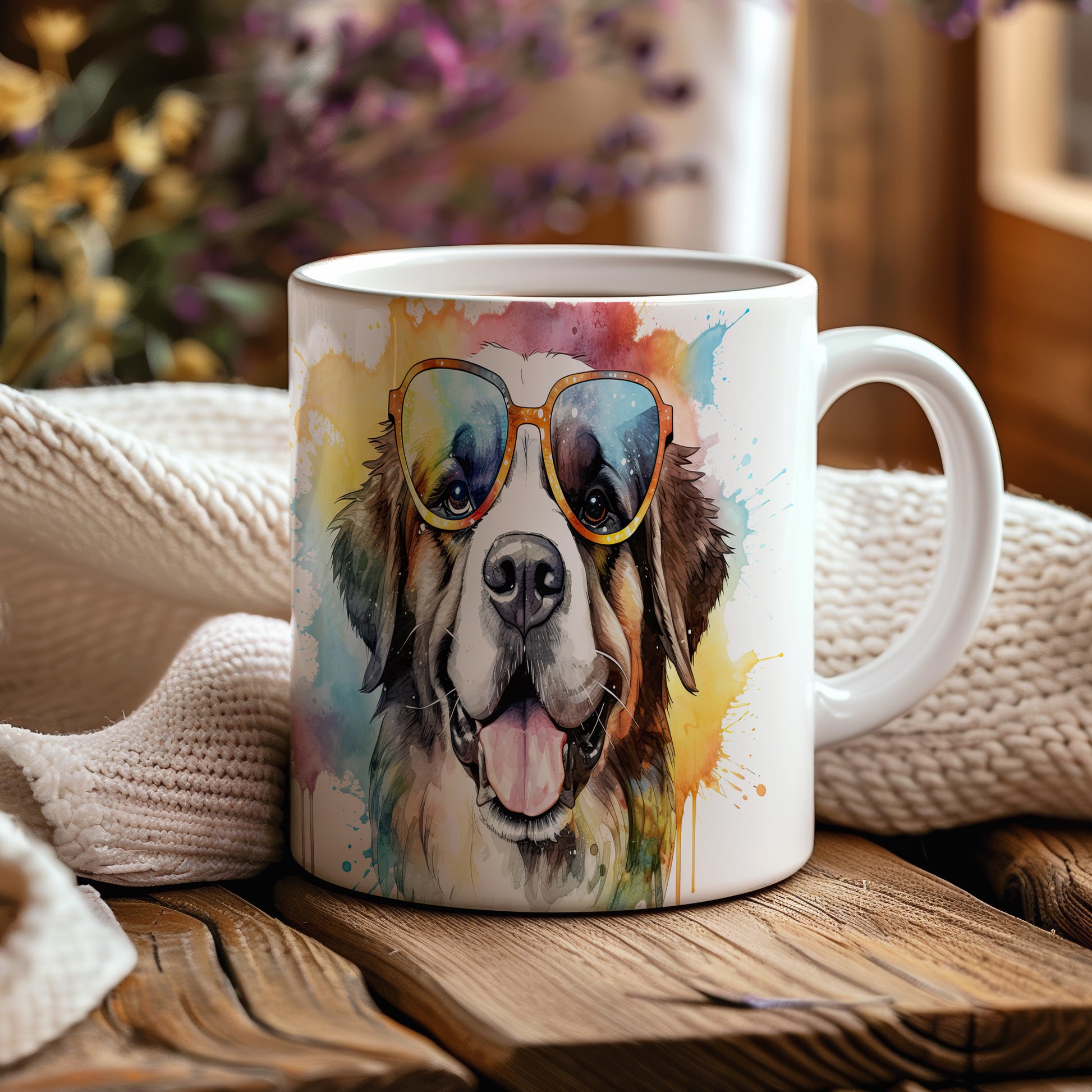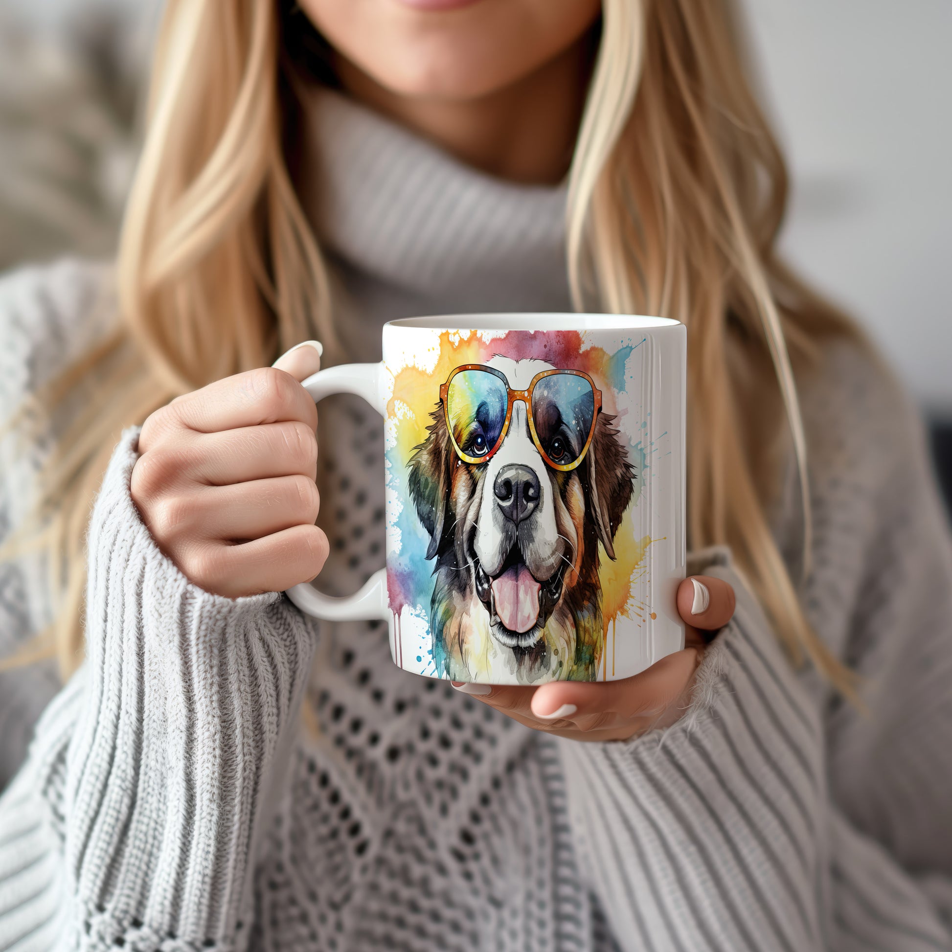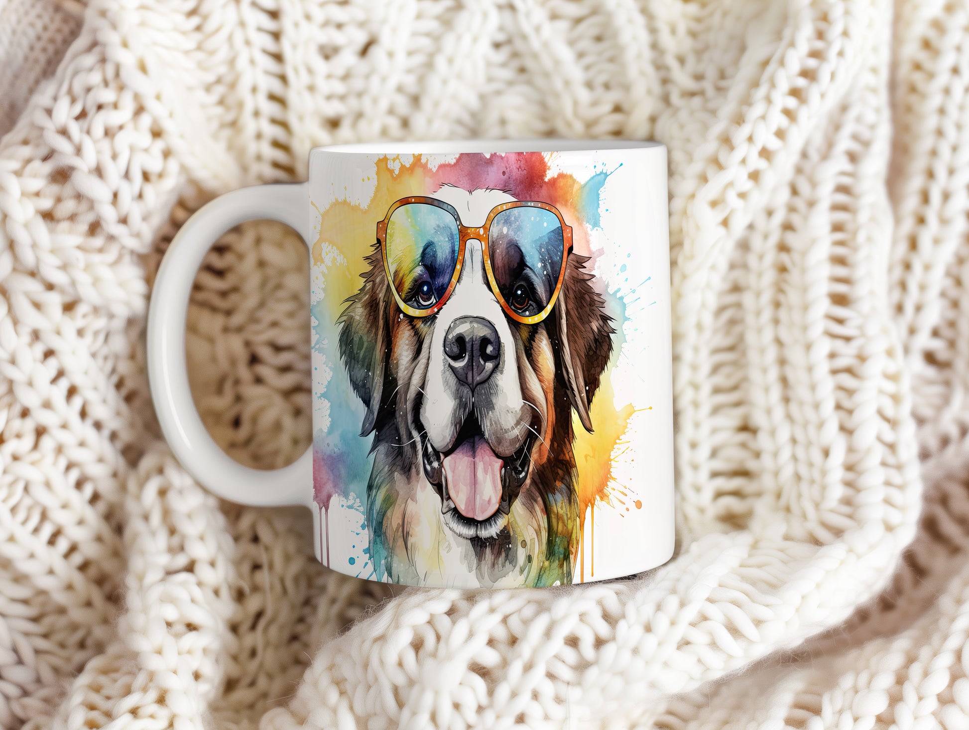 Hrnek se svatobernardským ovčákem a slunečními brýlemi