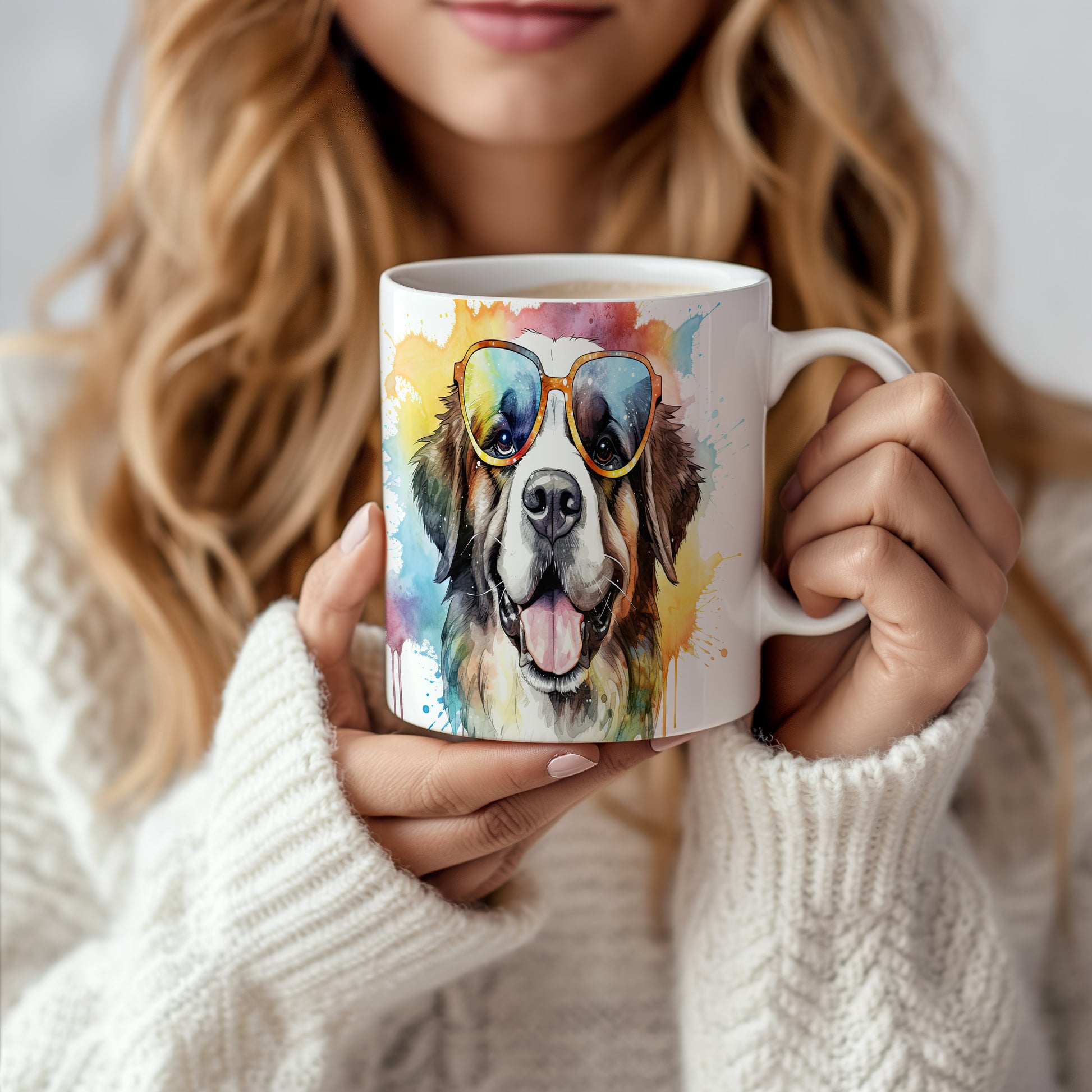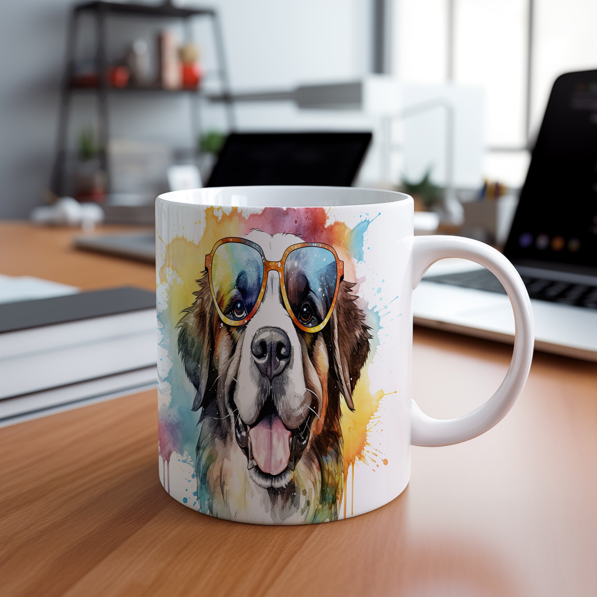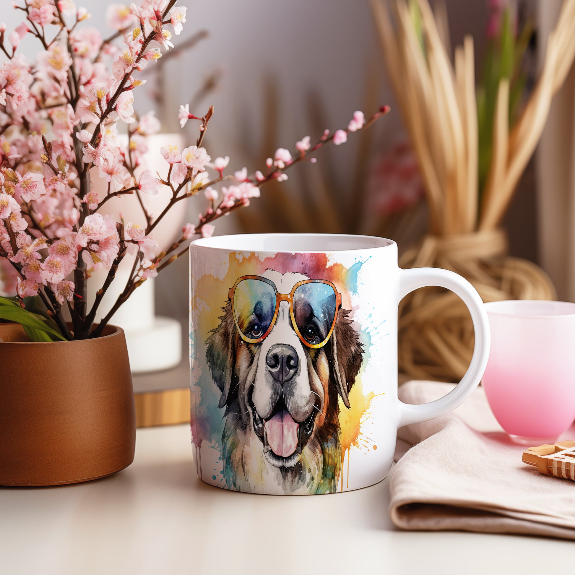 Hrnek se svatobernardským ovčákem a slunečními brýlemi