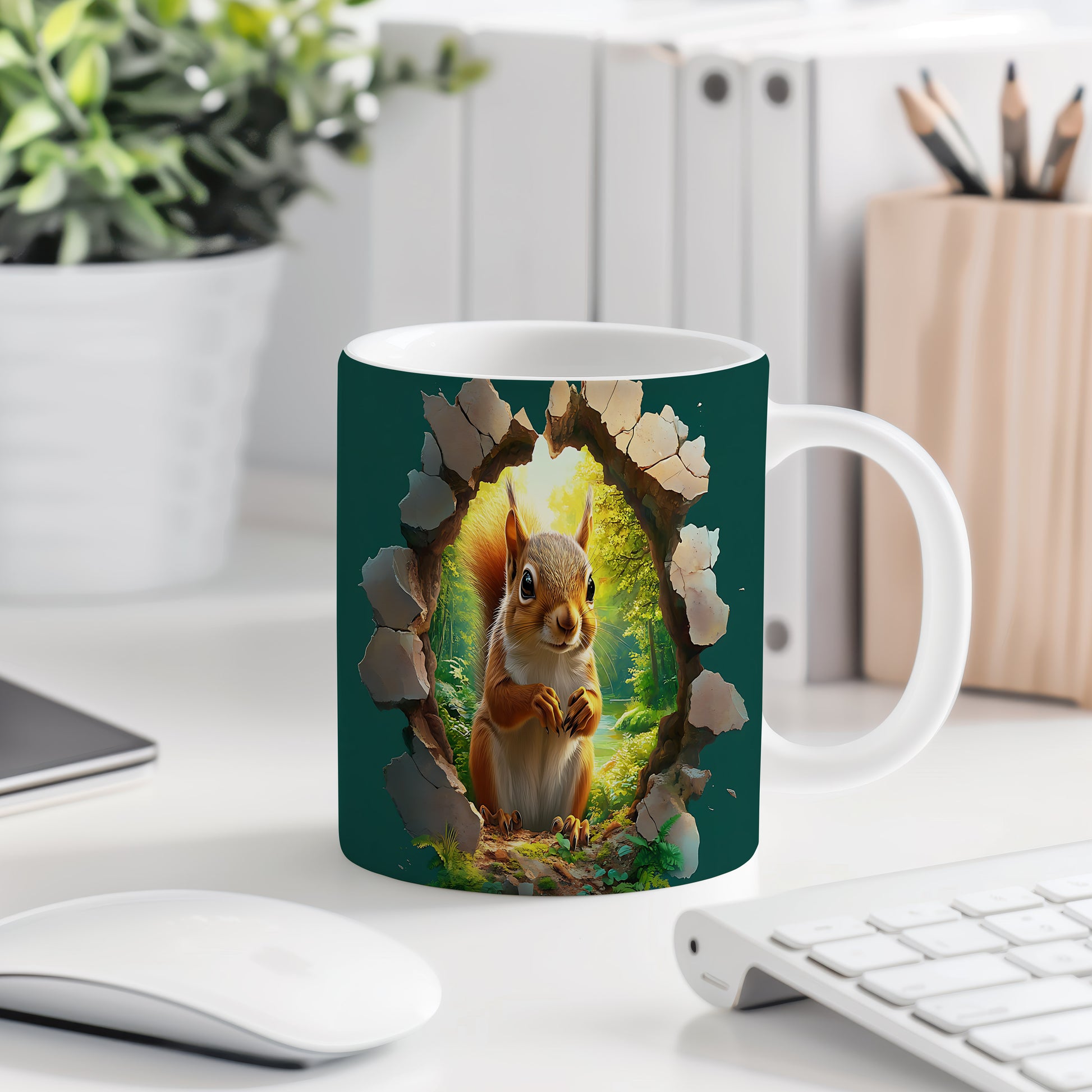 Hrnek se veverkou v přírodě je krásným keramickým kouskem s realistickým motivem. Tento hrnek potěší každého milovníka zvířat a přírody, skvělý tip na dárek pro přátele nebo rodinu. Materiál: keramika. Objem: 330 ml. Vhodné do myčky i mikrovlnky. Používáním tohoto hrnku si užijete nejen kávu nebo čaj, ale i příjemné chvíle v přírodě.