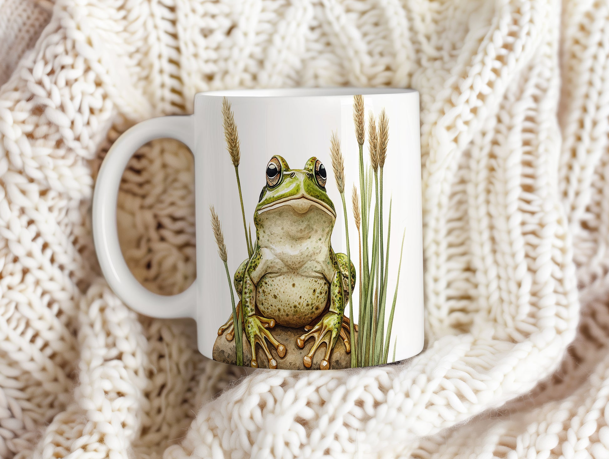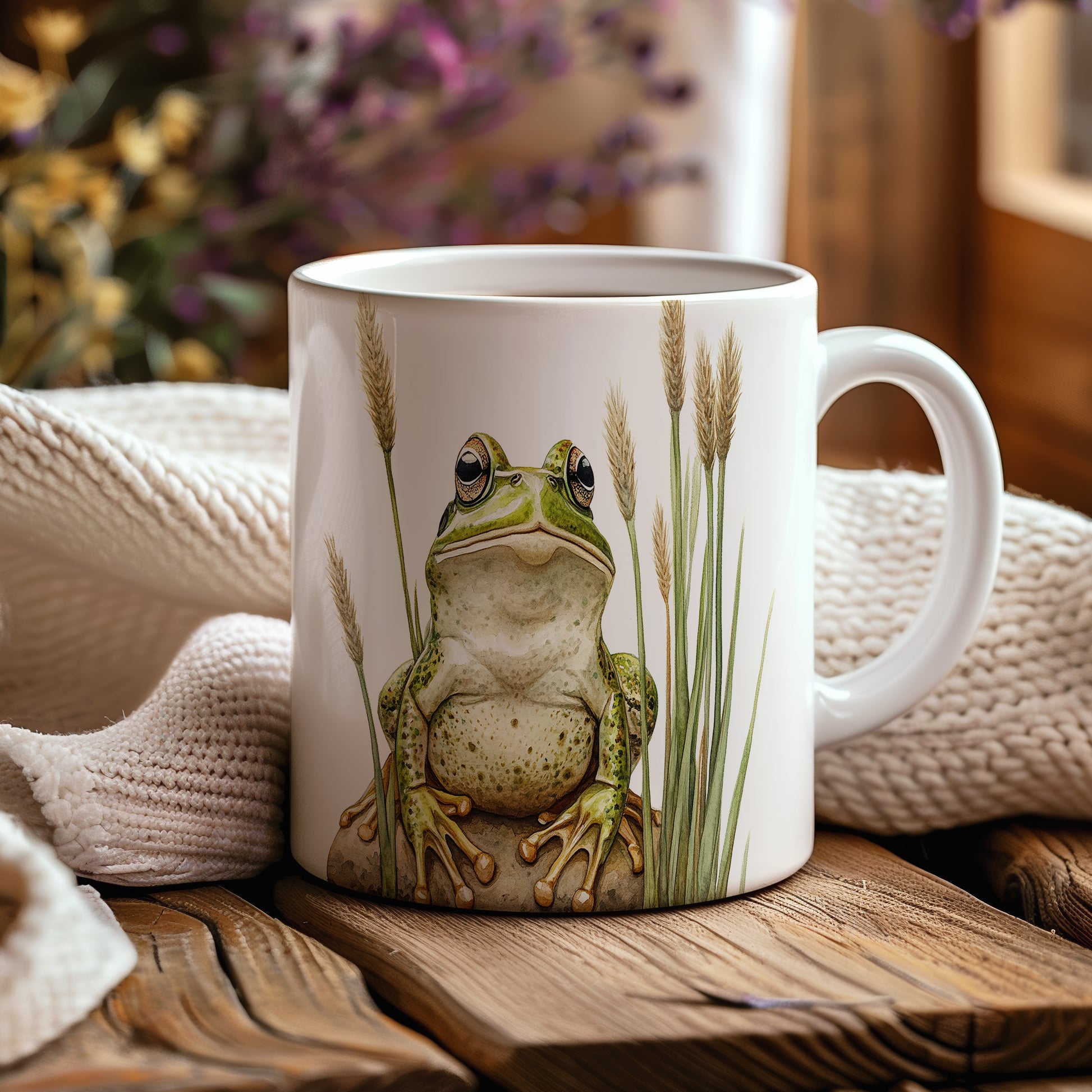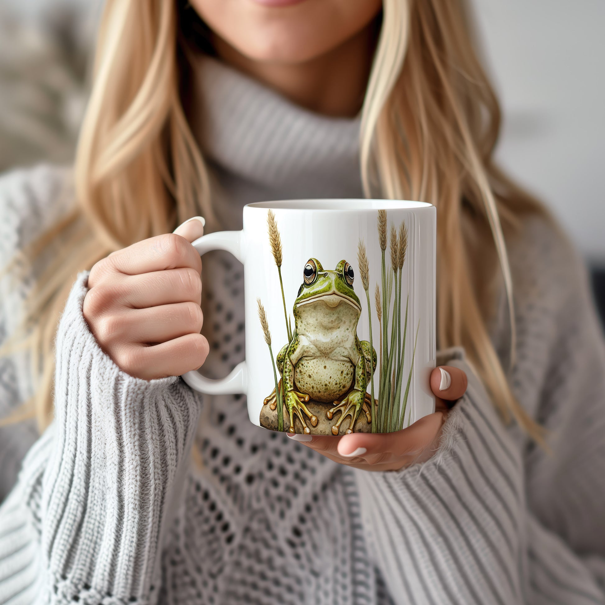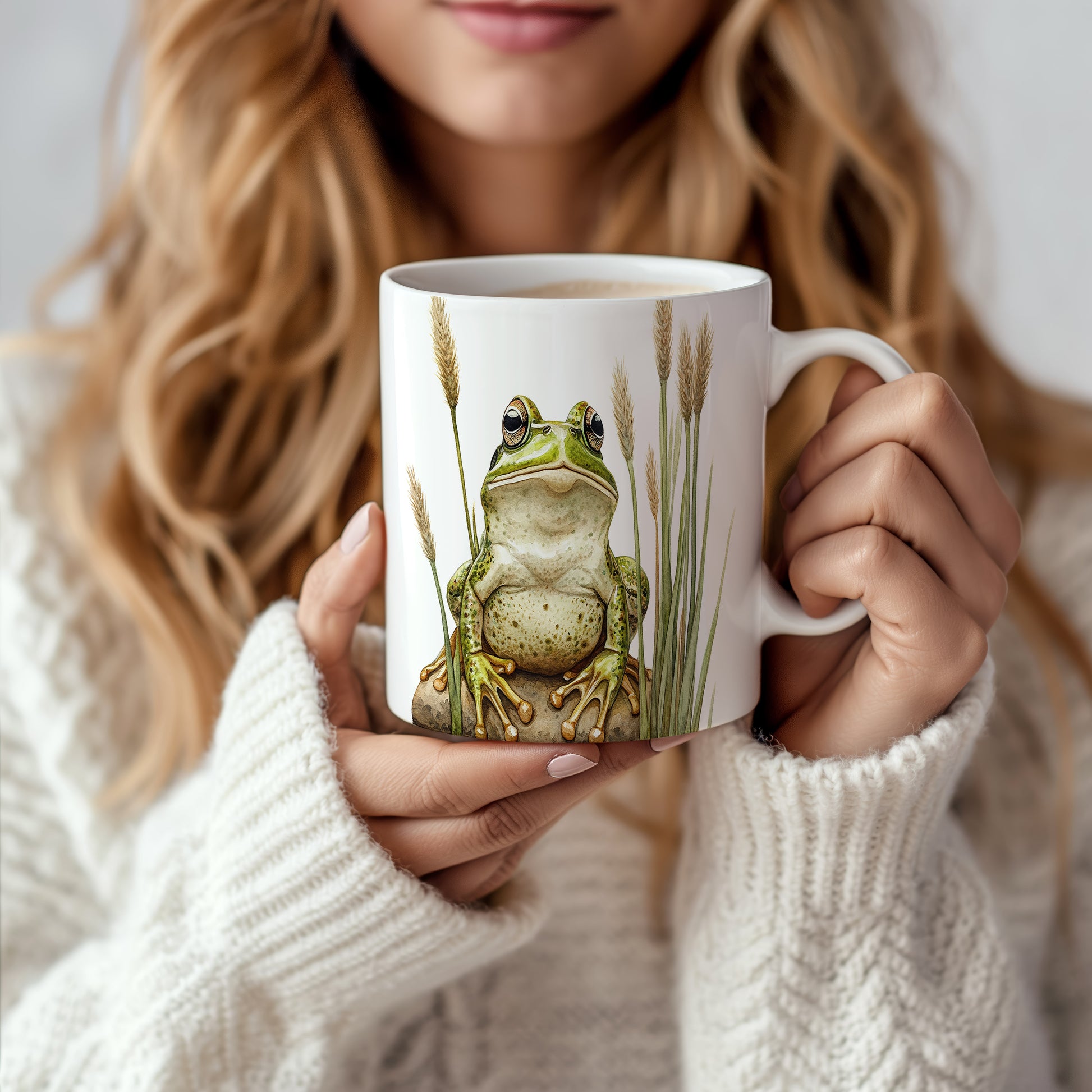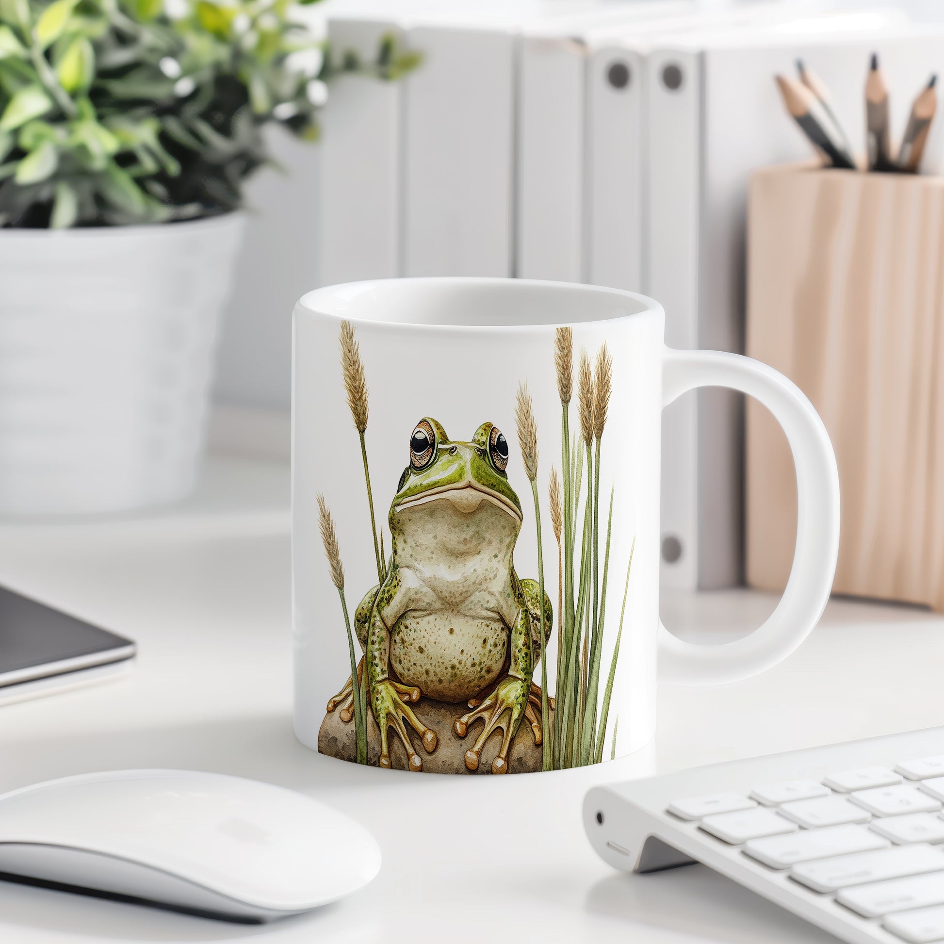 Tento hrnek s motivem žáby na kameni v přírodních barvách je skvělým doplňkem pro milovníky přírody a zvířat. Je ideální jako dárek pro přátele nebo rodinu, kteří ocení jedinečný design. Materiál: keramika. Objem: 330 ml. Vhodné do myčky i mikrovlnky. Používáním tohoto hrnku si užijete nejen kávu nebo čaj, ale také příjemný pohled na krásný motiv.
