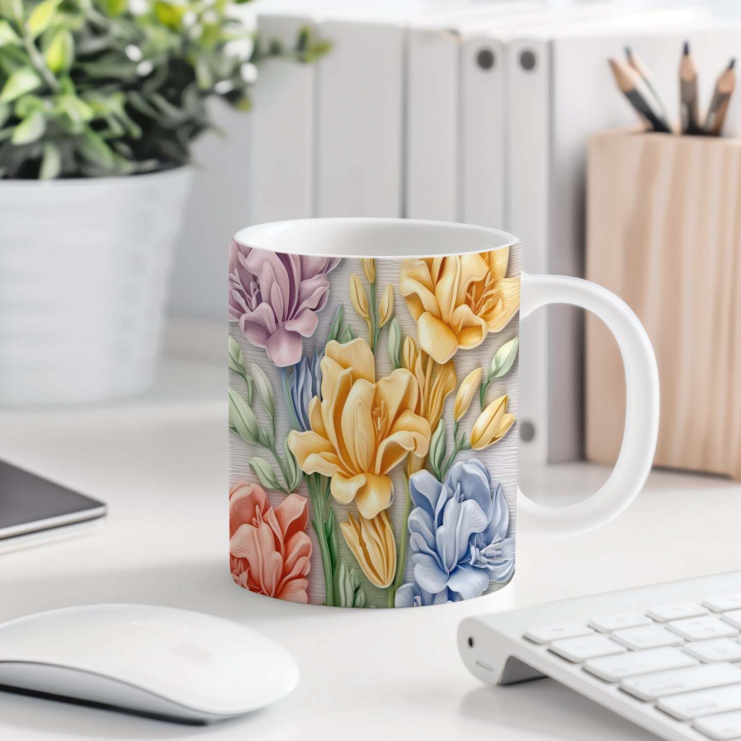 Stylový hrnek s realistickým květinovým motivem, který přináší do vašeho domova svěžest a barevnost. Je ideální pro milovníky přírody a květin, skvělý tip na dárek pro přátele nebo rodinu. Materiál: keramika. Objem: 330 ml. Vhodné do myčky i mikrovlnky. Tento hrnek vám zpříjemní každé ráno a dodá vám energii na celý den.