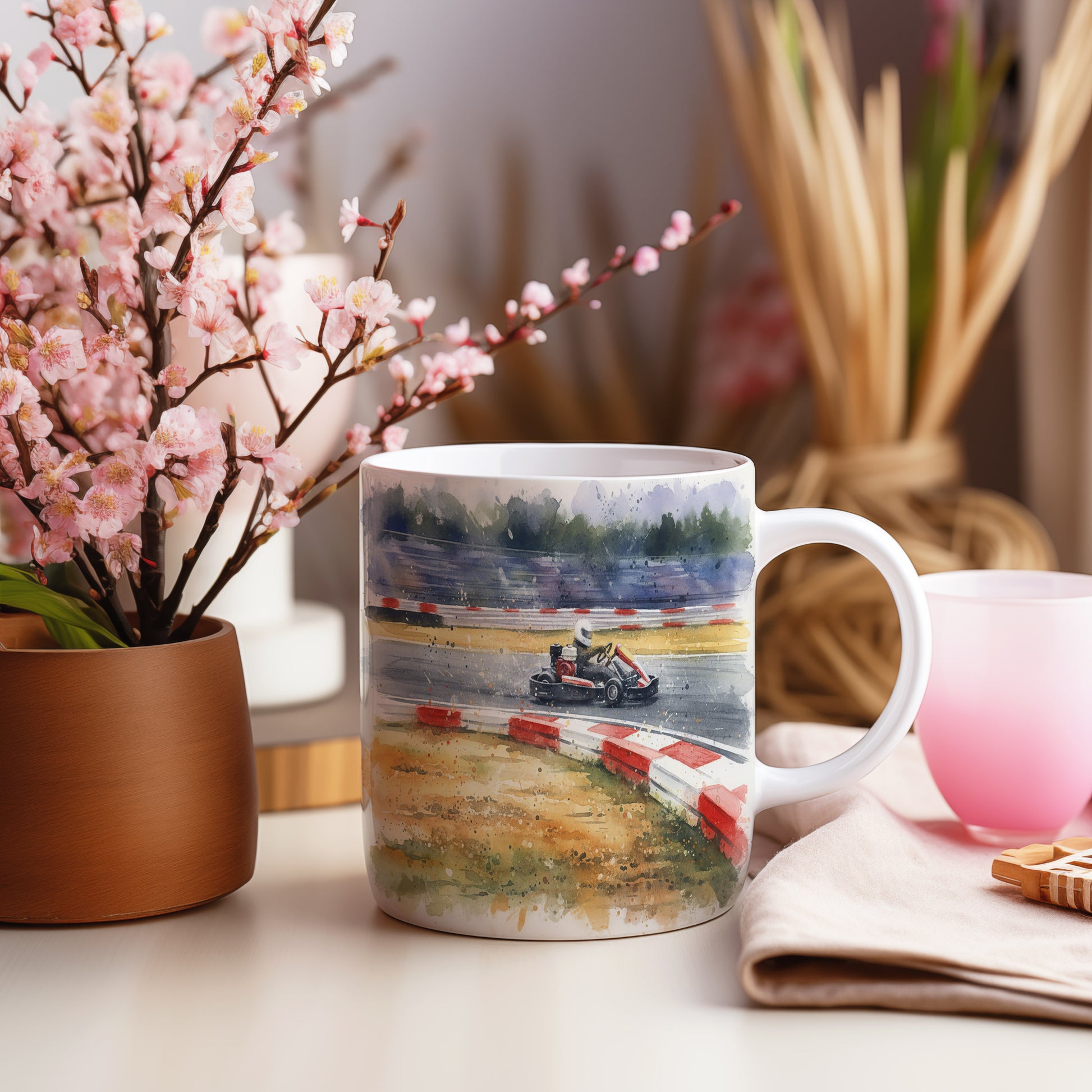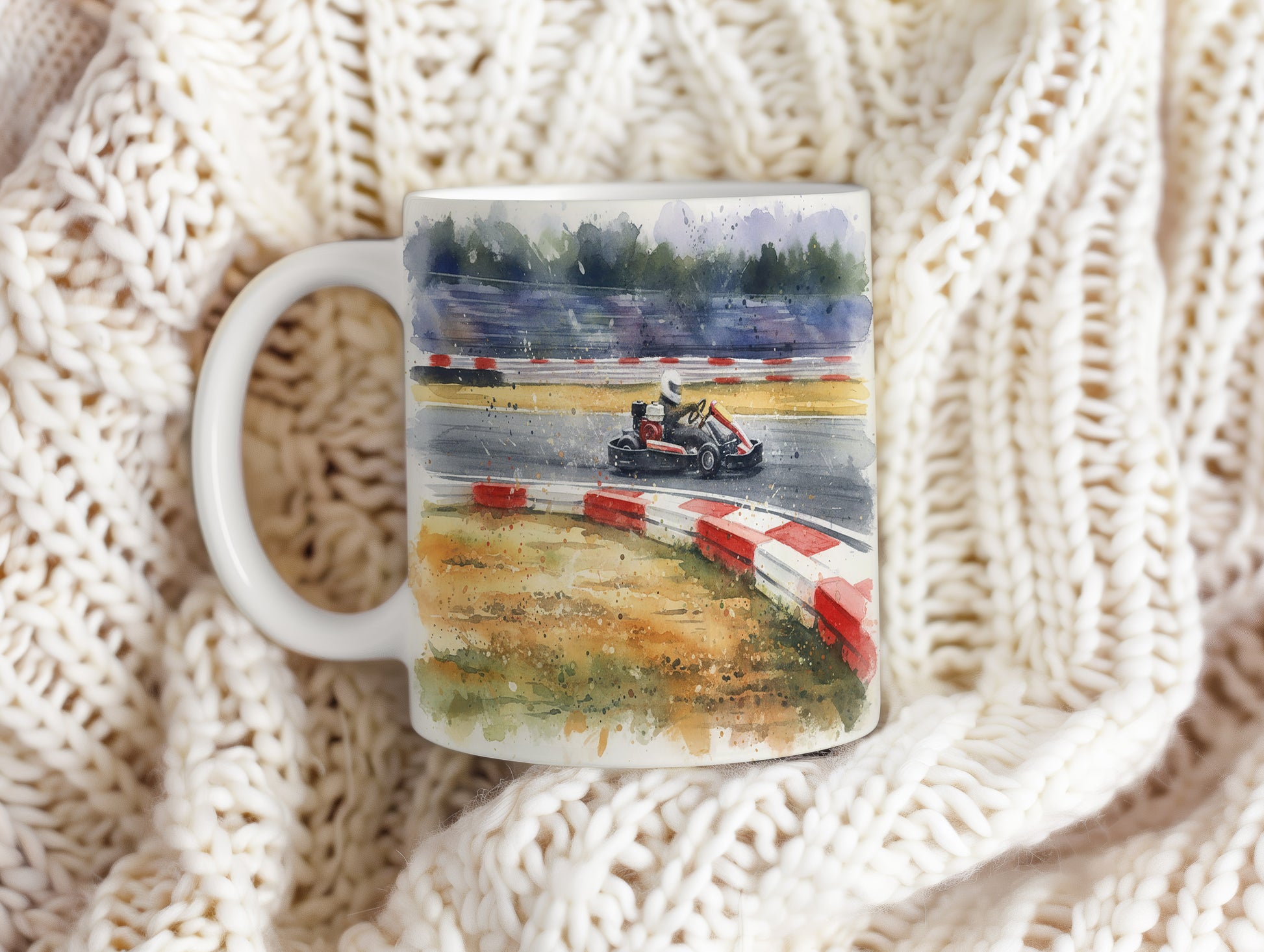 Objevte dynamiku závodní motokáry na akvarelovém hrnku, který přináší vzrušení z rychlosti. Hrnek 330 ml – vhodný do myčky i mikrovlnky.