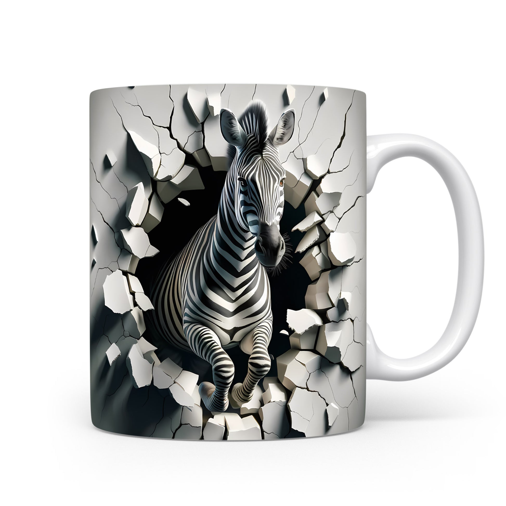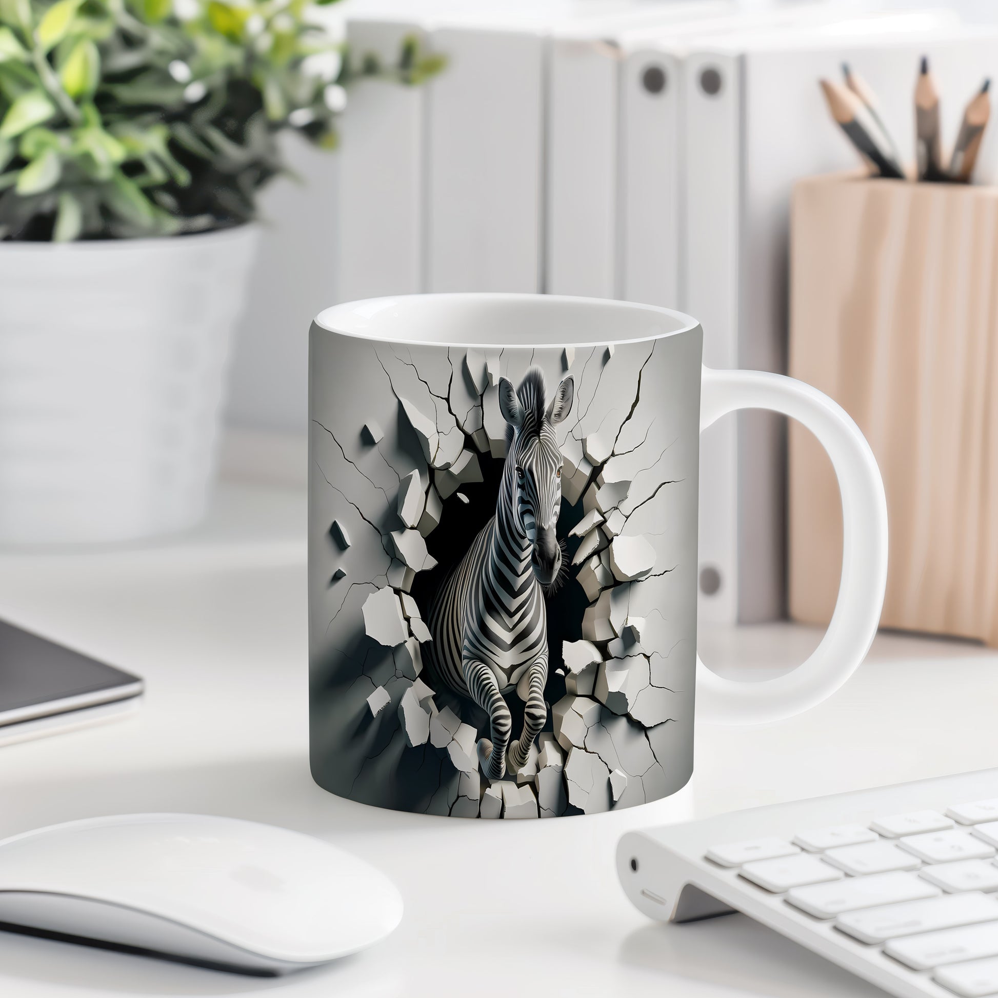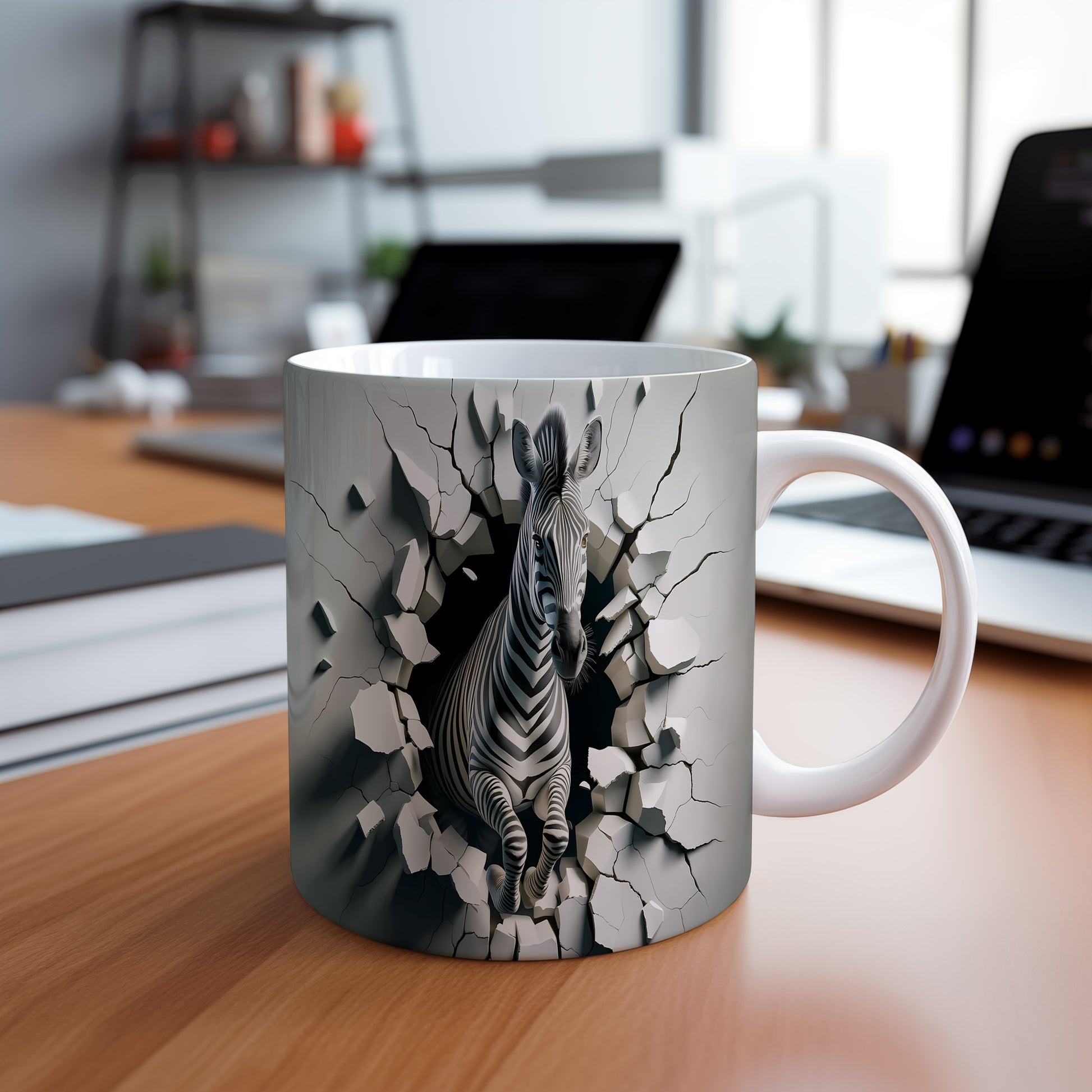 Tento hrnek s realistickým motivem zebry v 3D efektu přináší do vašeho dne jedinečný zážitek. Je ideální pro milovníky zvířat a skvělým dárkem pro přátele či rodinu. Materiál: keramika. Objem: 330 ml. Vhodné do myčky i mikrovlnky. Užijte si kávu nebo čaj s tímto originálním kouskem, který oživí každé posezení.