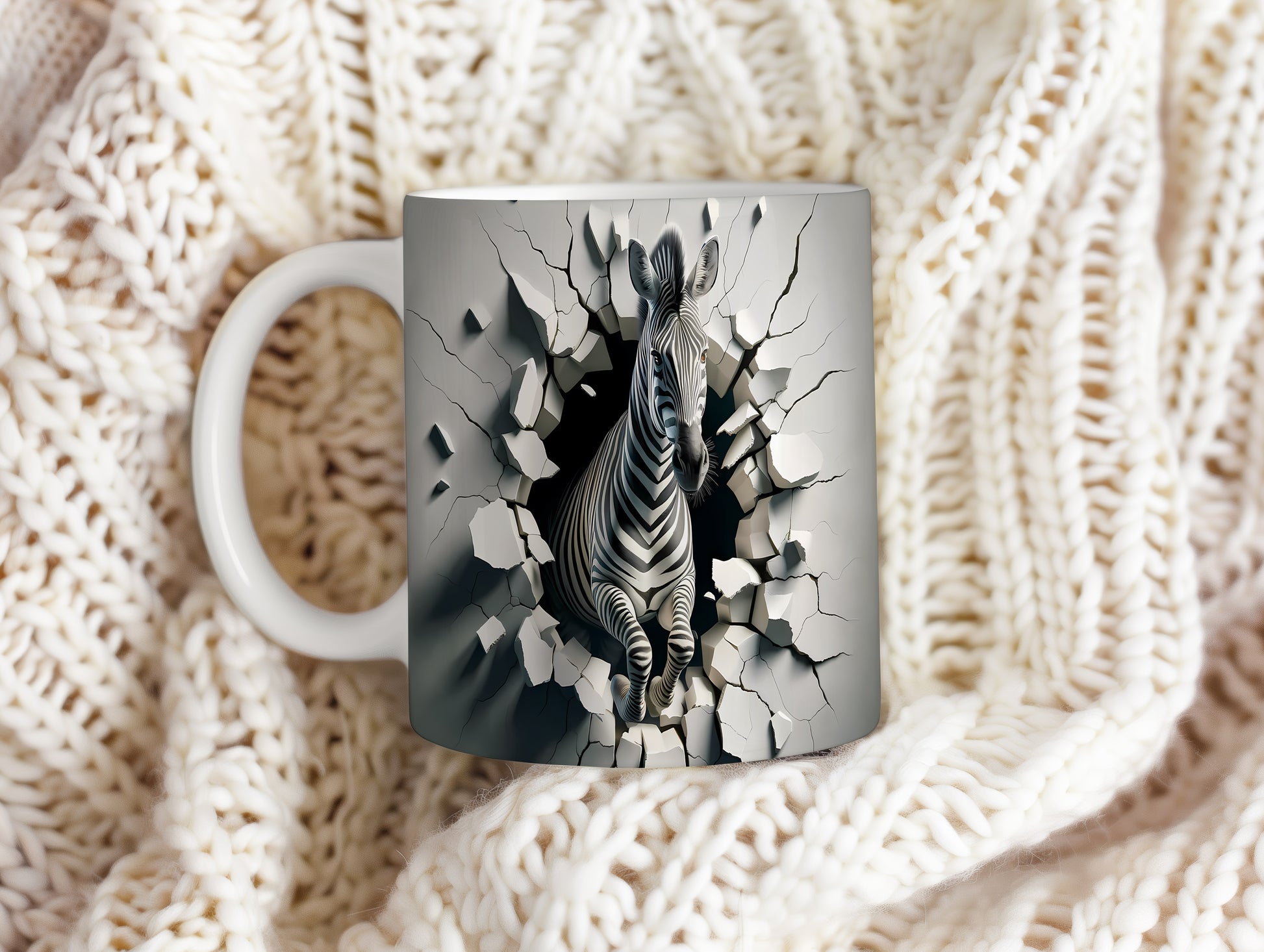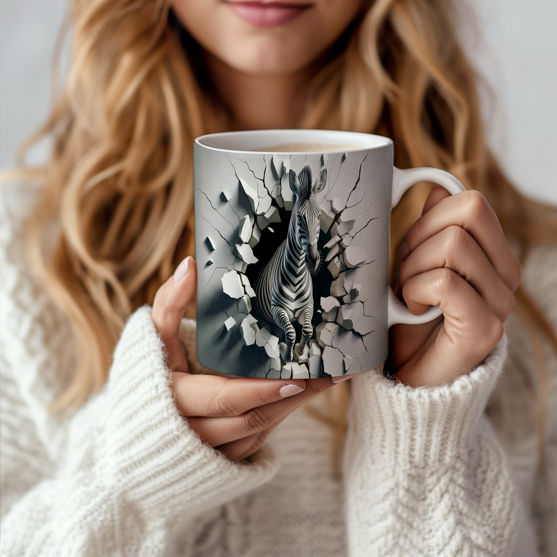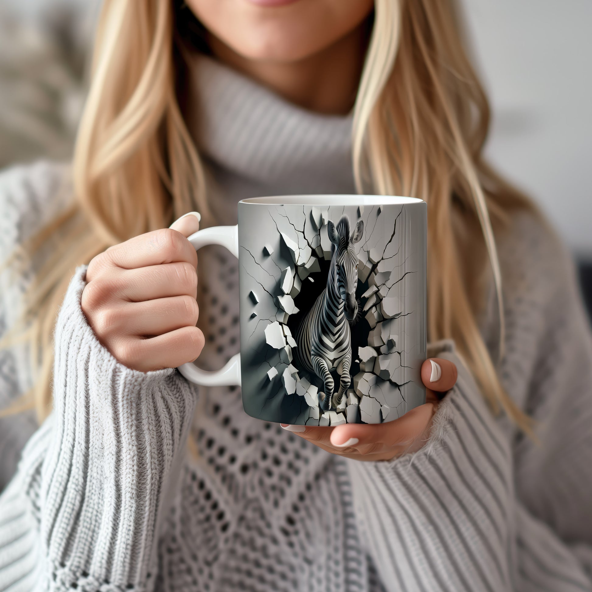 Tento hrnek s realistickým motivem zebry v 3D efektu přináší do vašeho dne jedinečný zážitek. Je ideální pro milovníky zvířat a skvělým dárkem pro přátele či rodinu. Materiál: keramika. Objem: 330 ml. Vhodné do myčky i mikrovlnky. Užijte si kávu nebo čaj s tímto originálním kouskem, který oživí každé posezení.