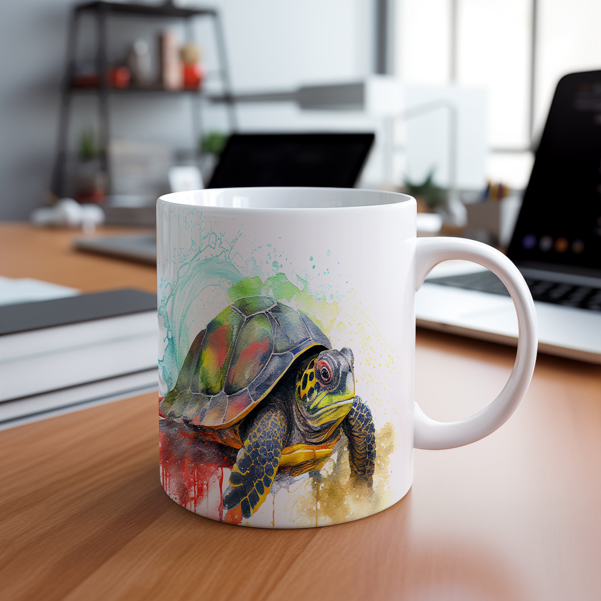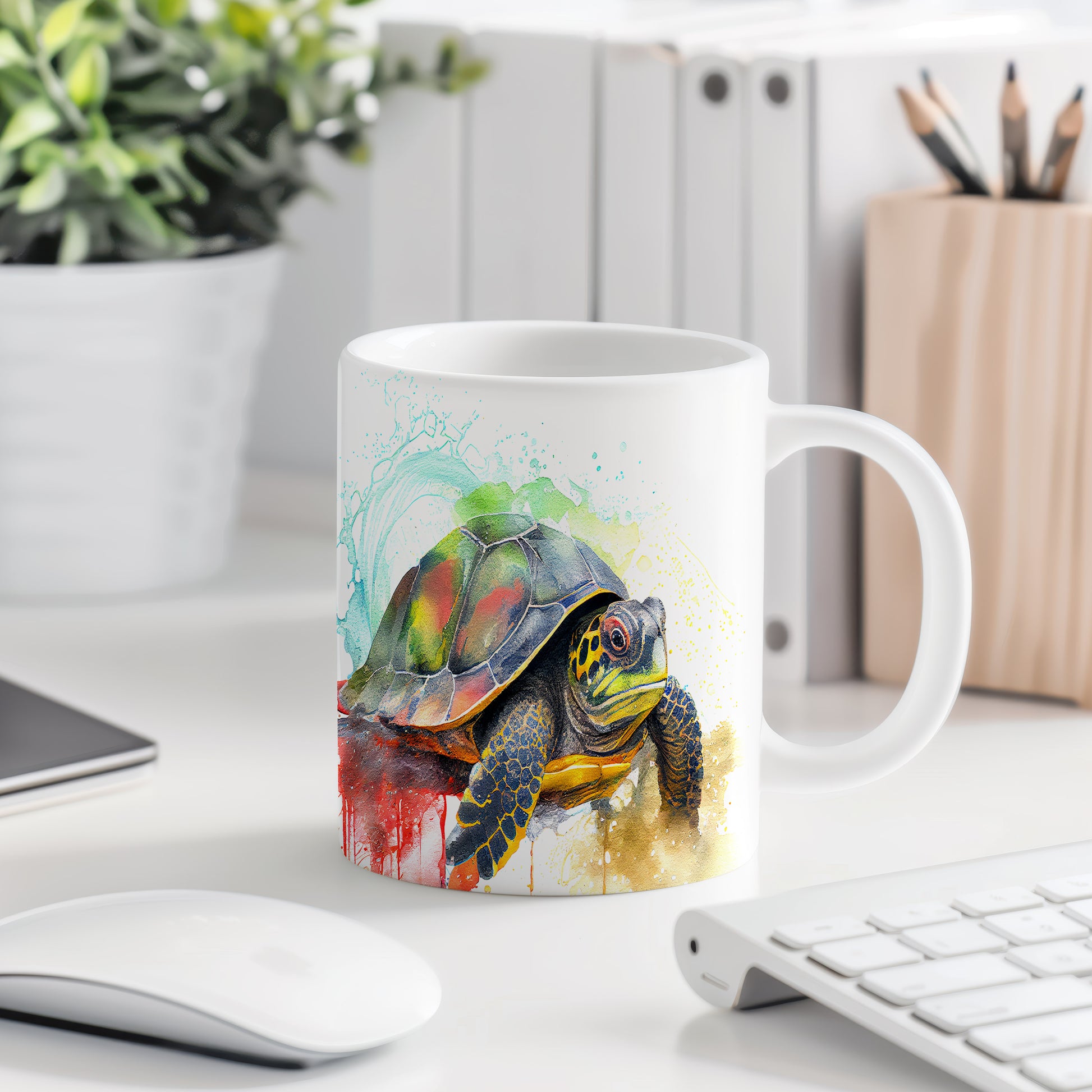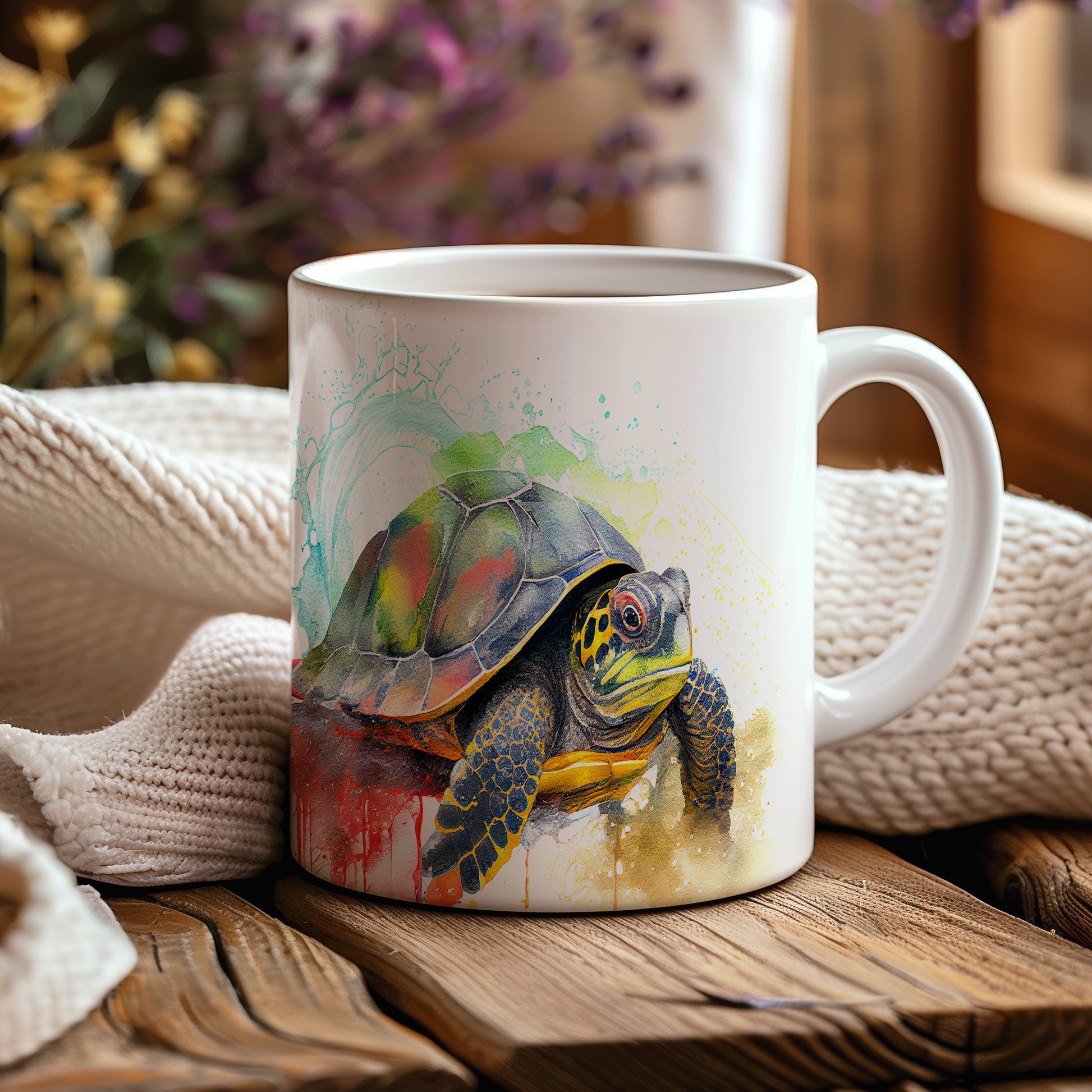 Tento hrnek zobrazuje krásnou želvu s barevným krunýřem a akvarelovými efekty. Je ideální pro milovníky přírody a skvělým dárkem pro každého, kdo ocení přírodní motivy. Materiál: keramika. Objem: 330 ml. Vhodné do myčky i mikrovlnky. Používání tohoto hrnku přináší radost z každého doušku.