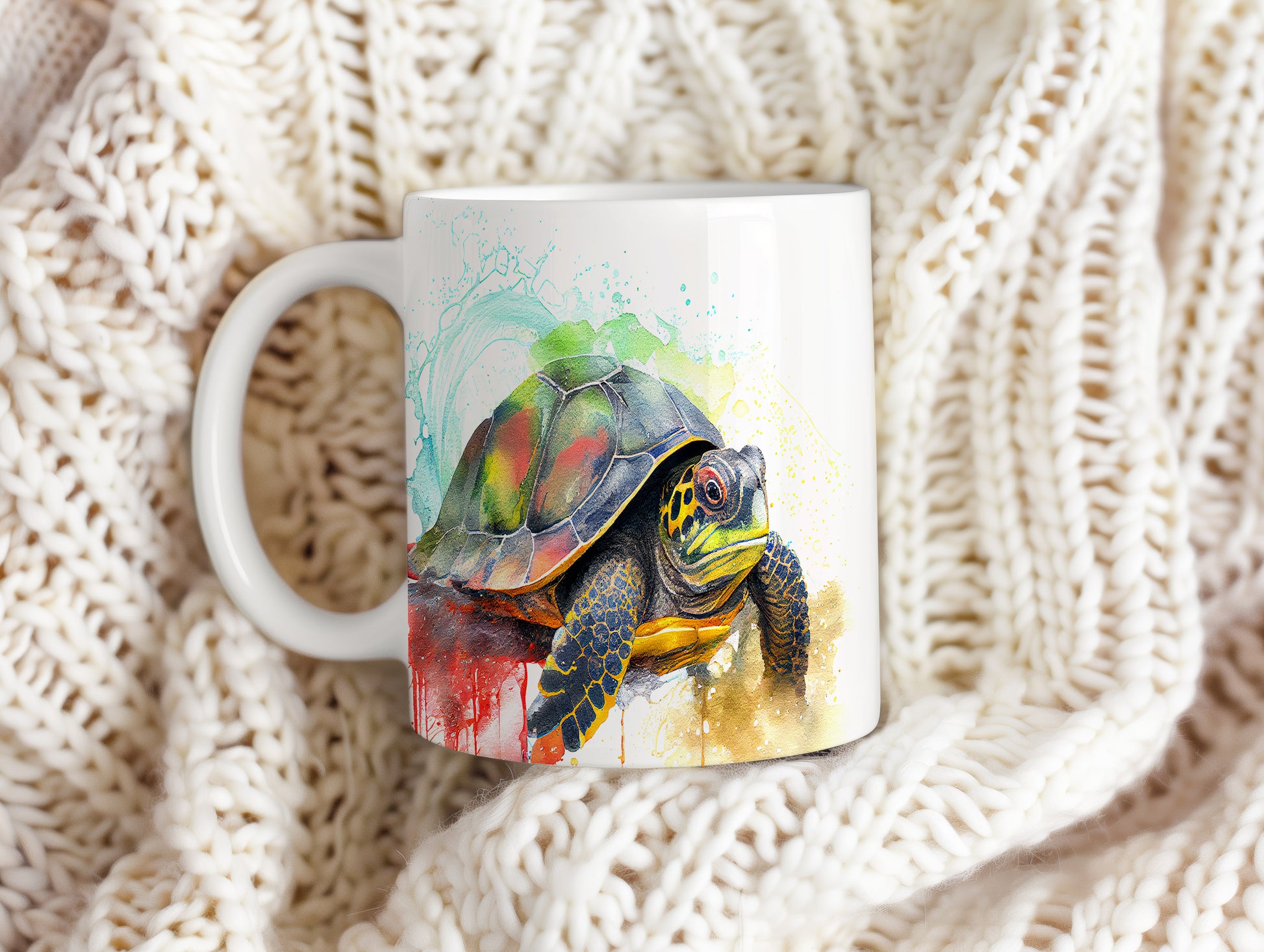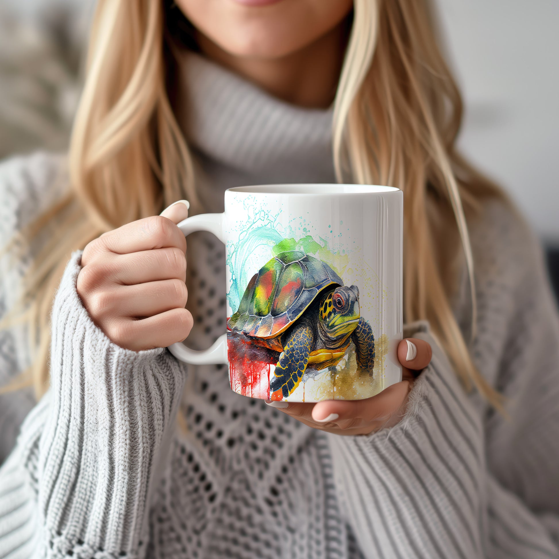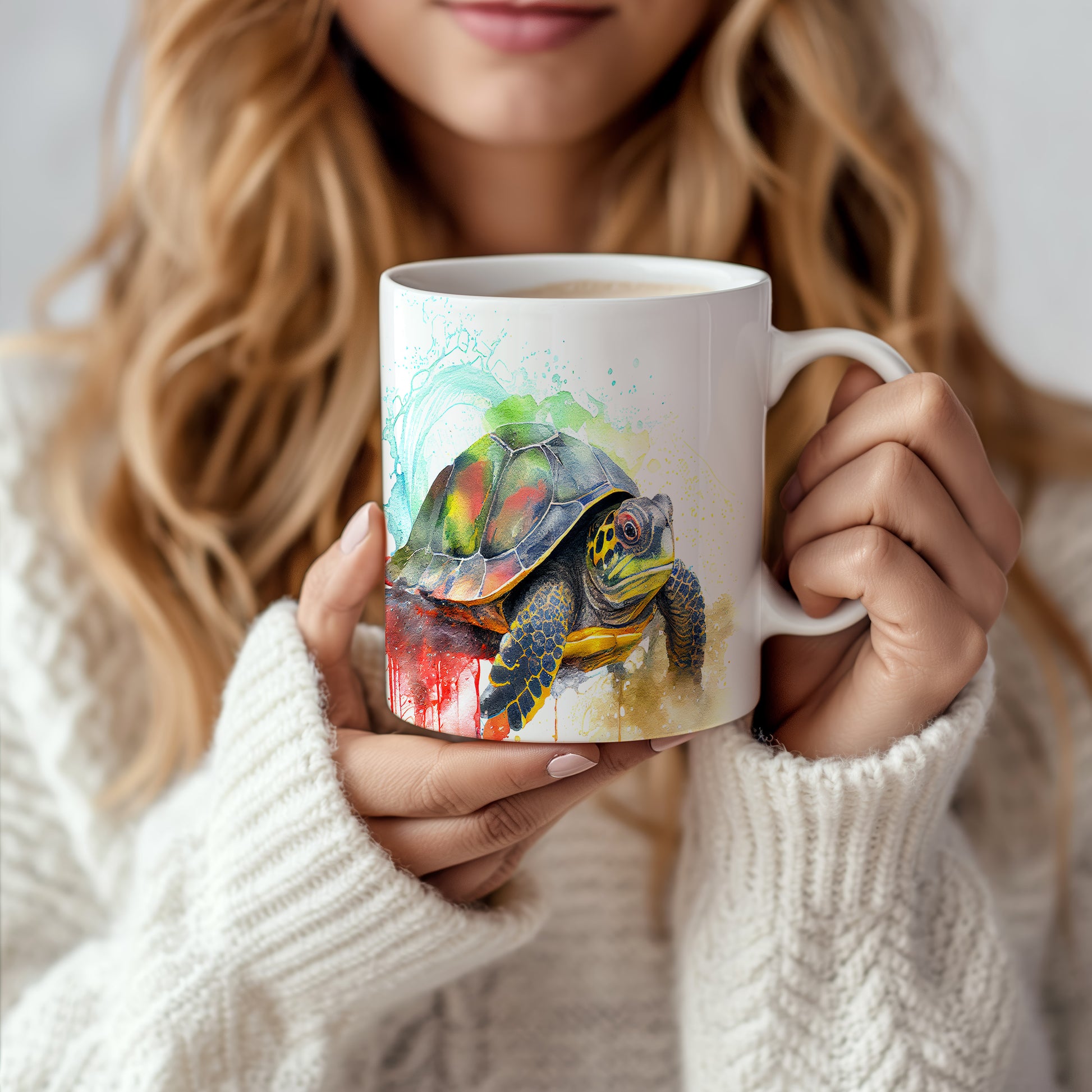 Tento hrnek zobrazuje krásnou želvu s barevným krunýřem a akvarelovými efekty. Je ideální pro milovníky přírody a skvělým dárkem pro každého, kdo ocení přírodní motivy. Materiál: keramika. Objem: 330 ml. Vhodné do myčky i mikrovlnky. Používání tohoto hrnku přináší radost z každého doušku.