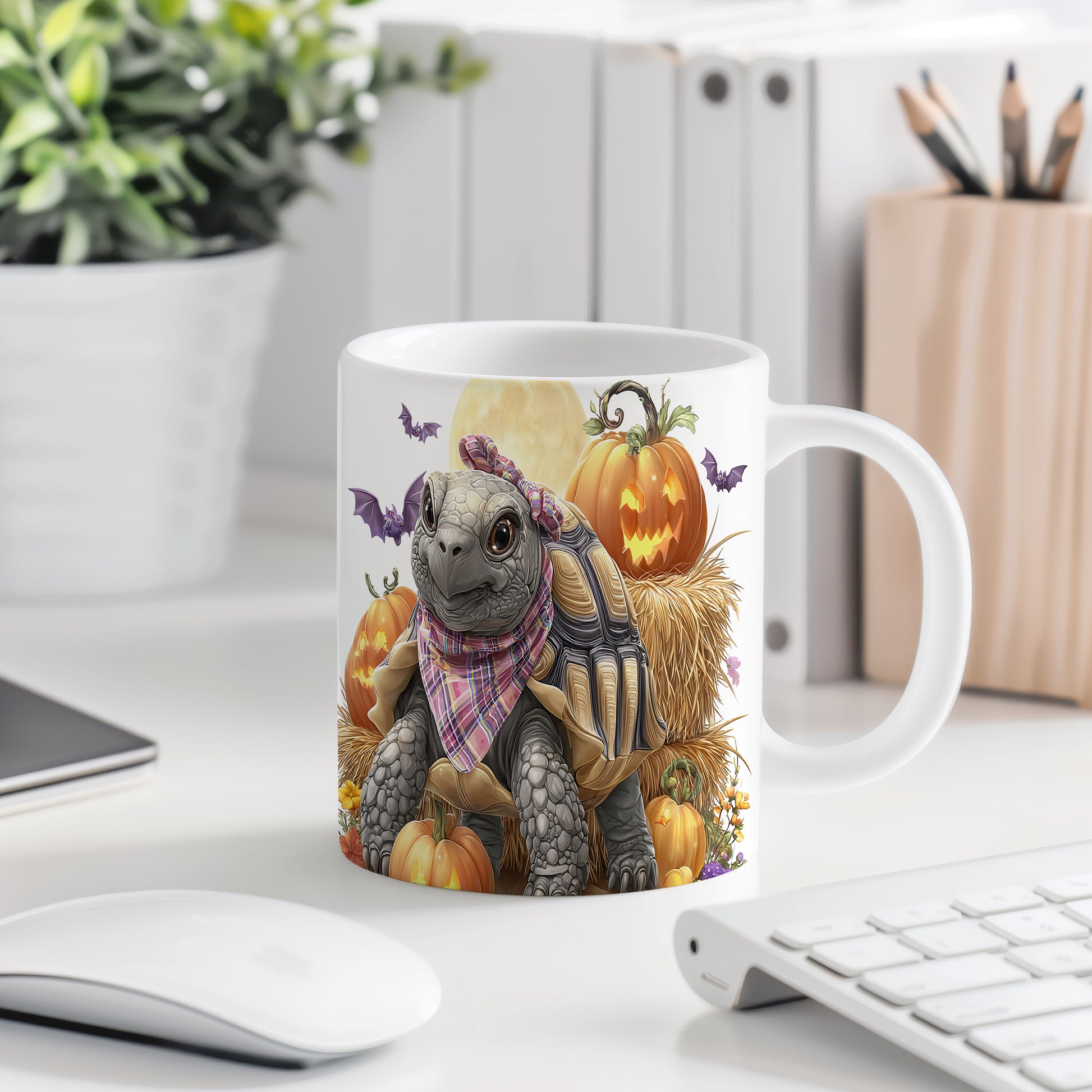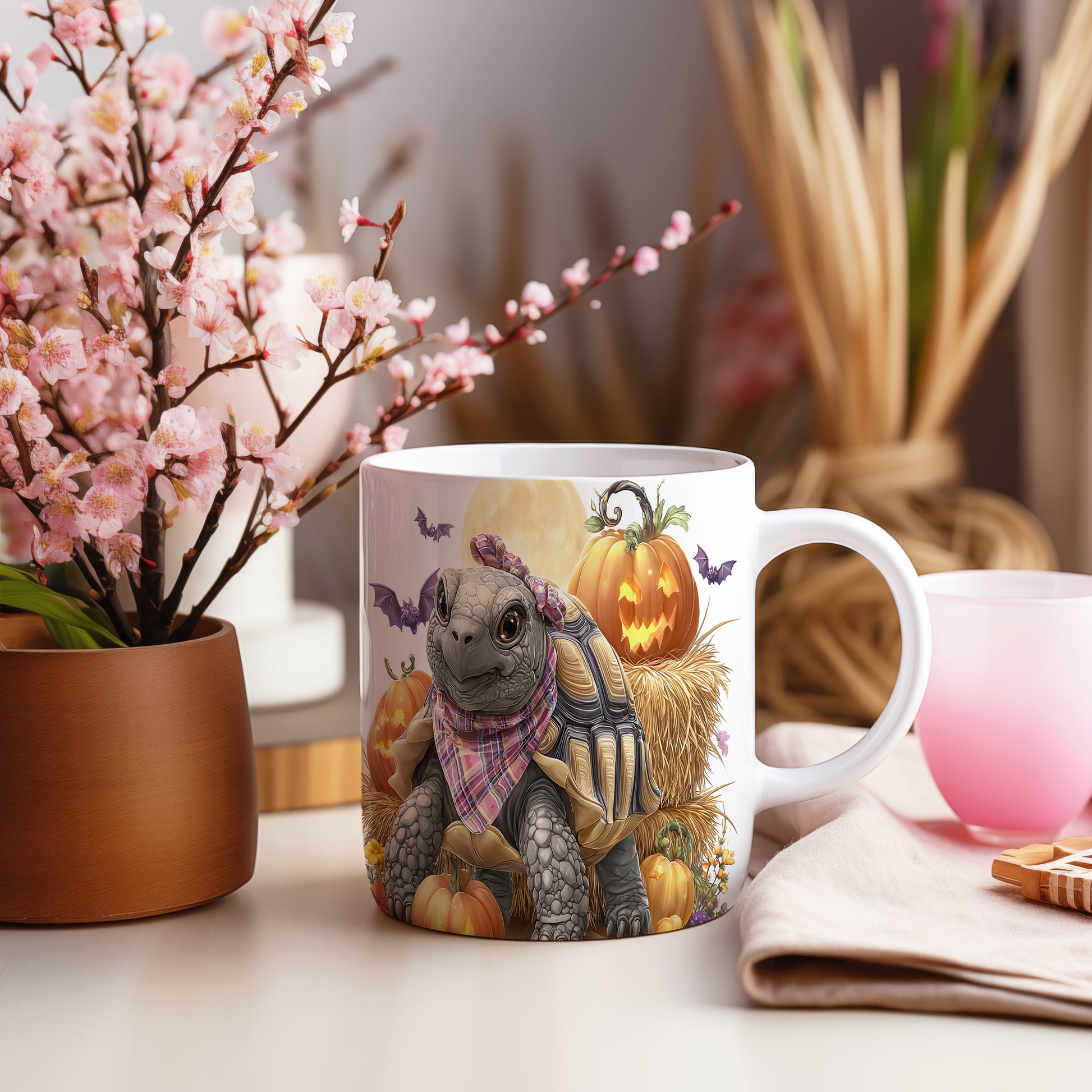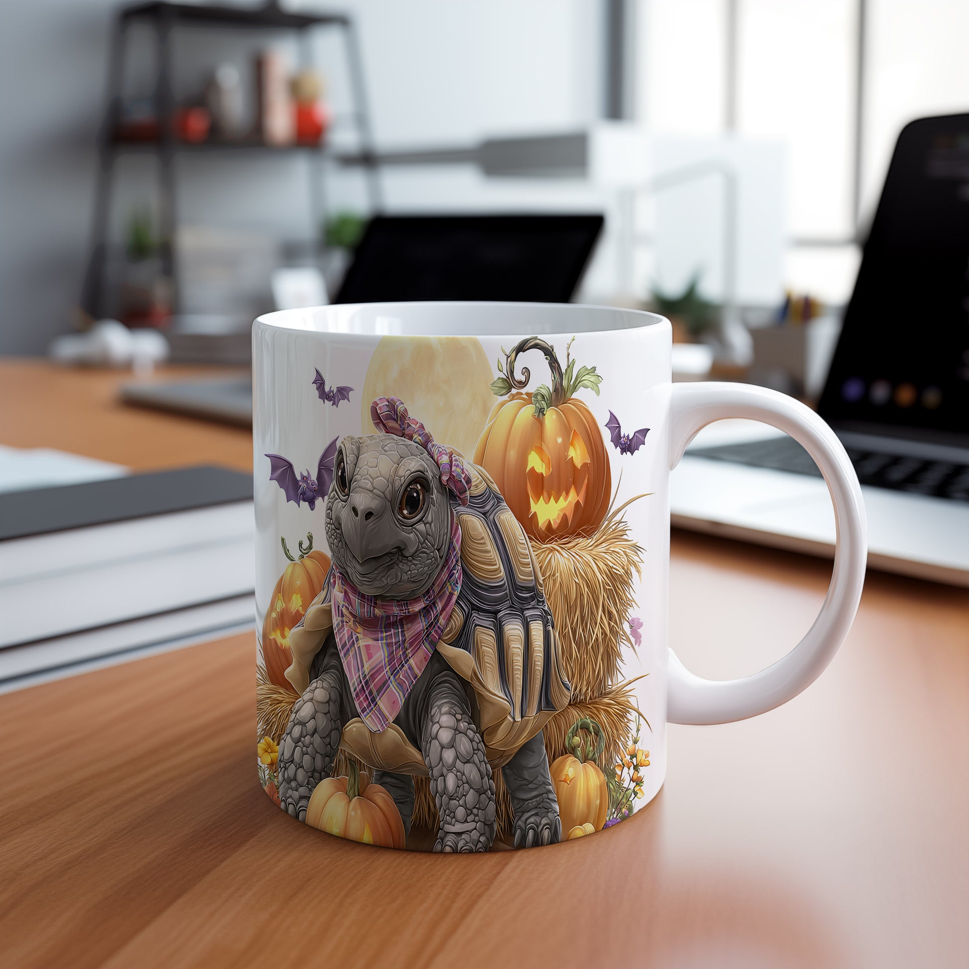 Hrnek s motivem želvy a dýní v podzimním stylu je skvělým doplňkem pro každého milovníka zvířat. Tento hrnek je ideální jako dárek pro přátele nebo rodinu, kteří ocení originální design. Materiál: keramika. Objem: 330 ml. Vhodné do myčky i mikrovlnky. Používání tohoto hrnku přináší radost a pohodlí při každém doušku.