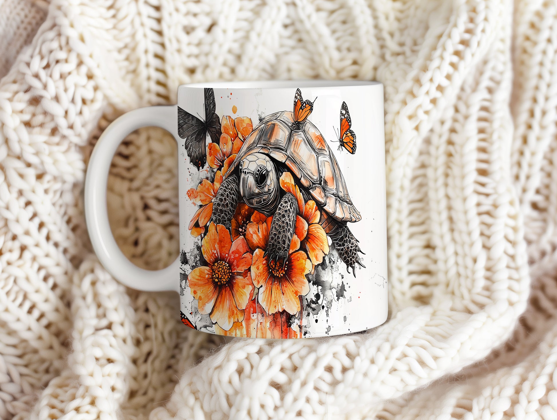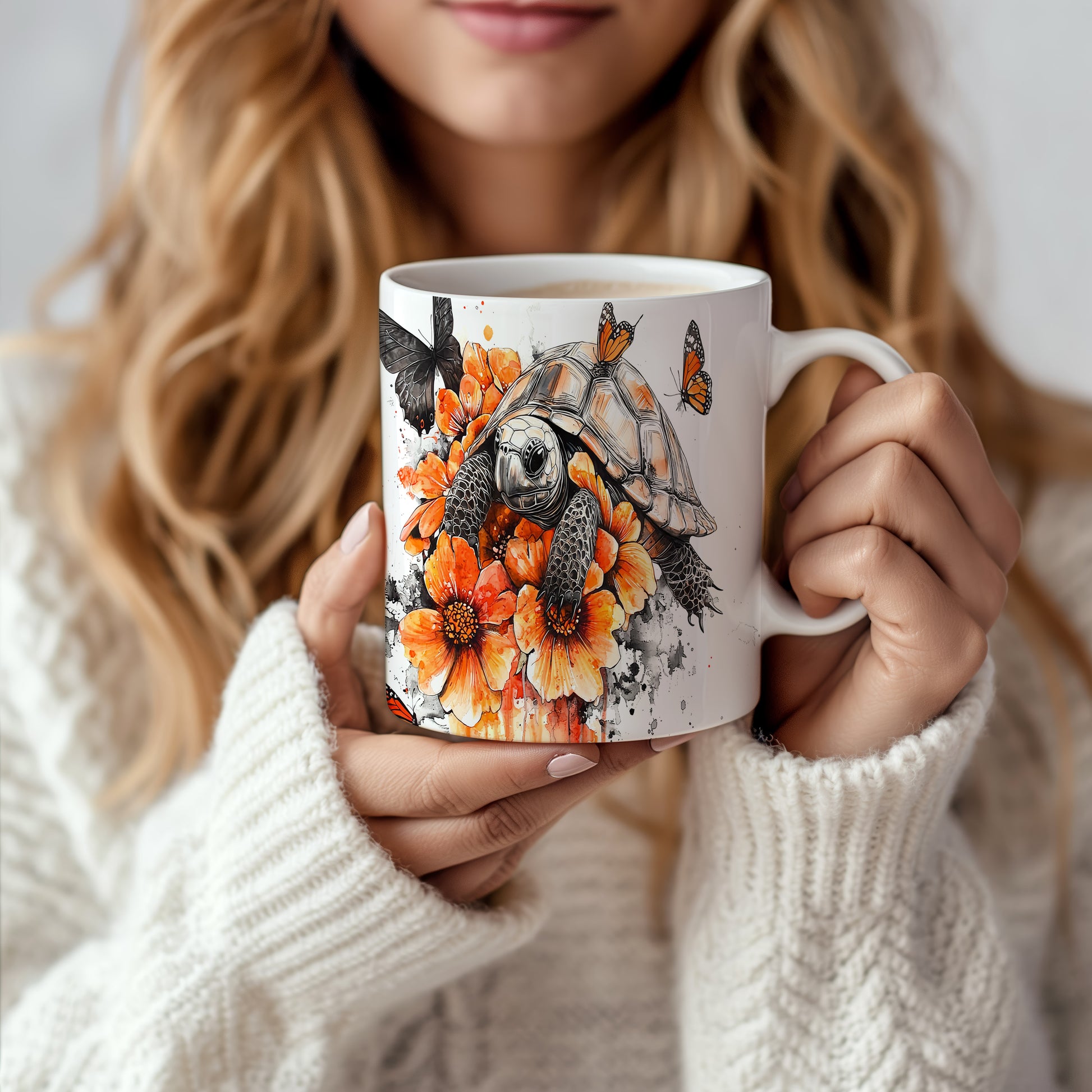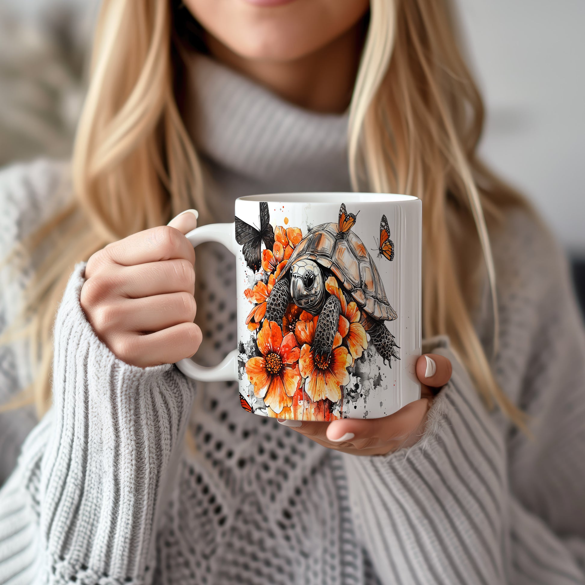 Tento hrnek s motivem želvy a květin je skvělým kouskem pro milovníky přírody a zvířat. Je ideální jako dárek pro přátele nebo rodinu, kteří ocení originální design. Materiál: keramika. Objem: 330 ml. Vhodné do myčky i mikrovlnky. Díky svému stylovému vzhledu přináší radost do každodenního pití.