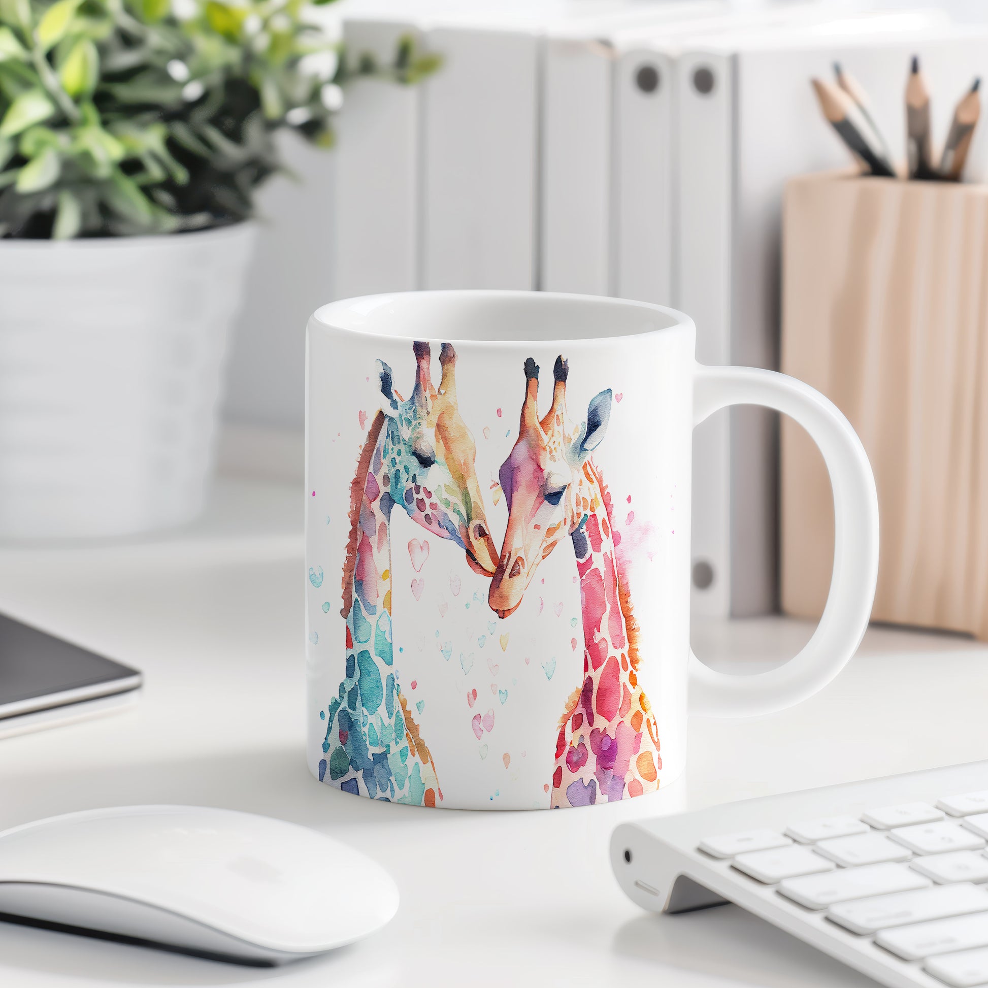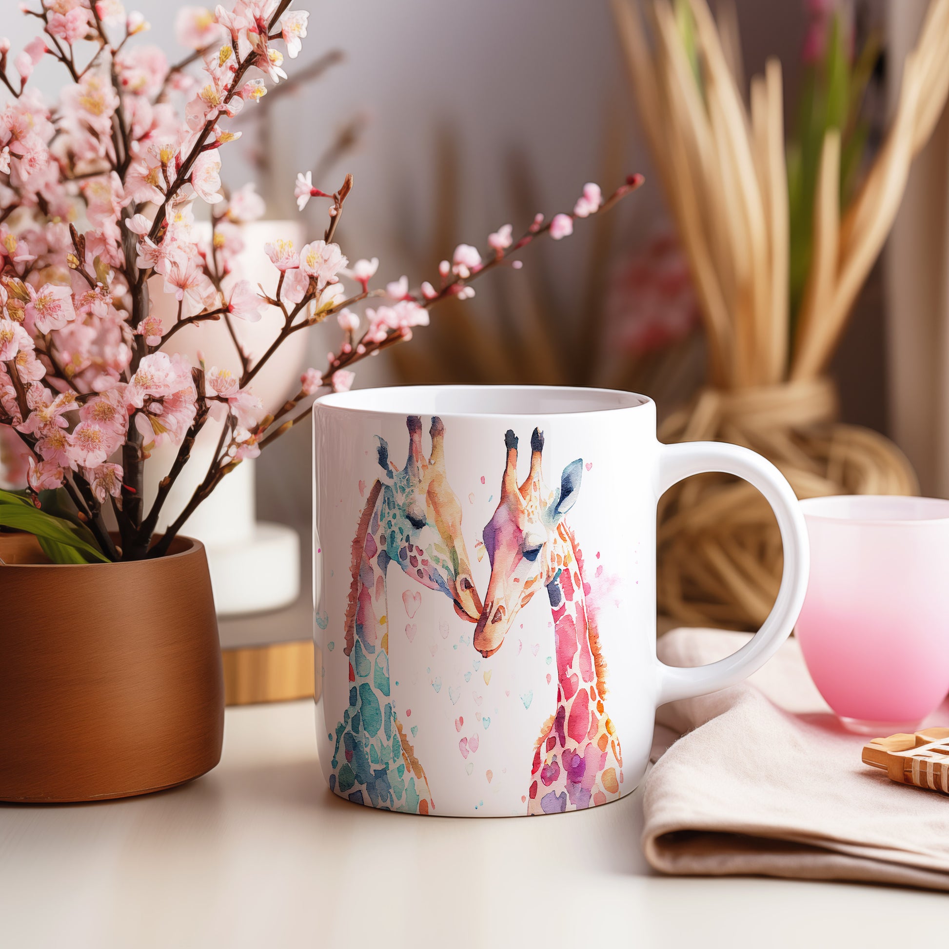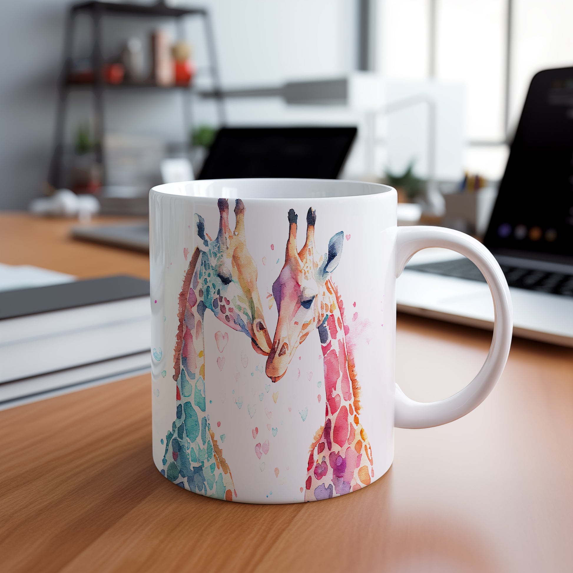 Hrnek s motivem žiraf v láskyplném stylu přináší veselou atmosféru. Je ideální pro milovníky zvířat a skvělým dárkem pro děti i dospělé. Materiál: keramika. Objem: 330 ml. Vhodné do myčky i mikrovlnky. Používáním tohoto hrnku si užijete každé sousto a nápoj s úsměvem.