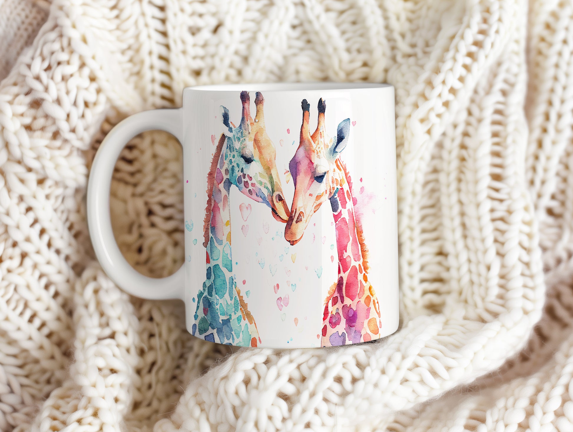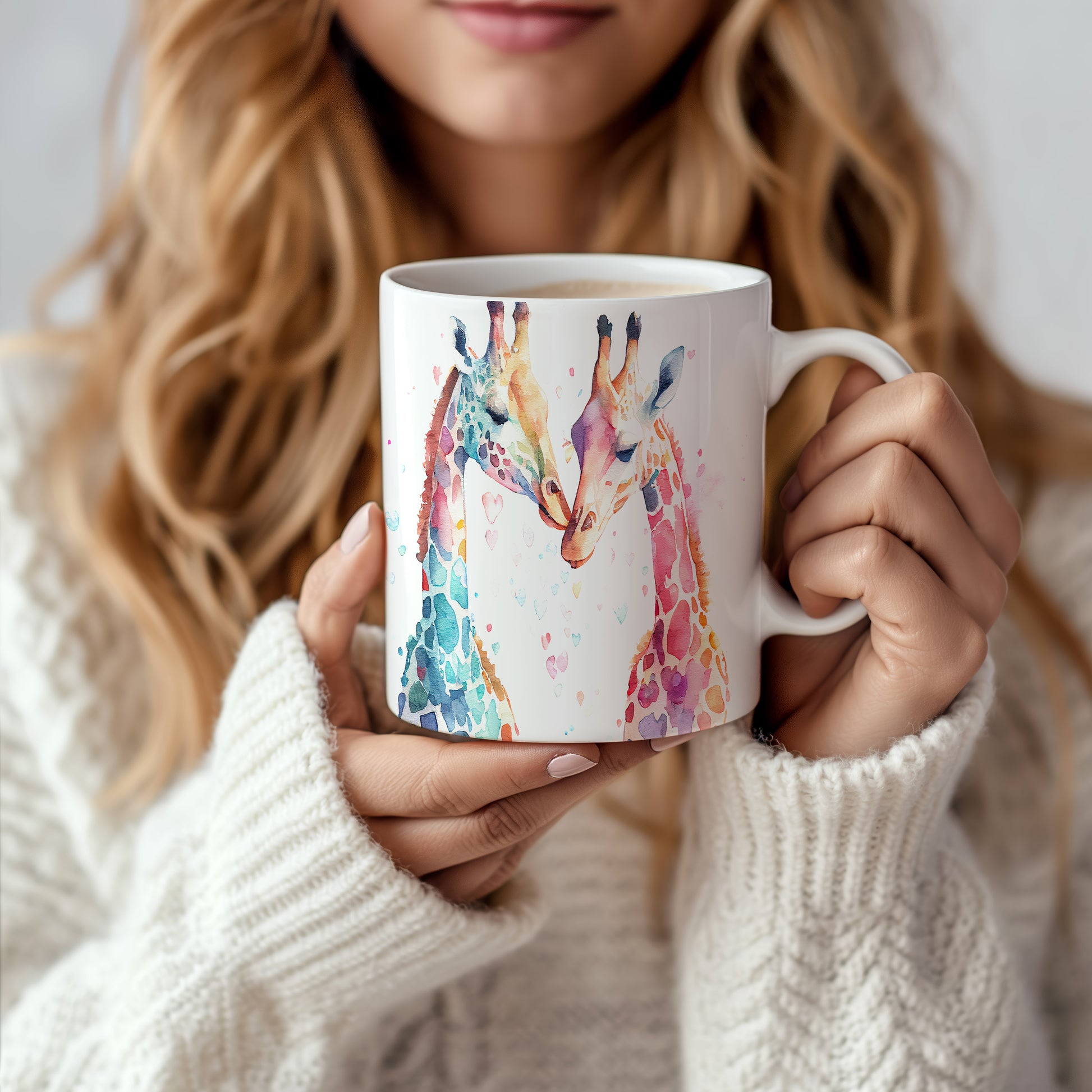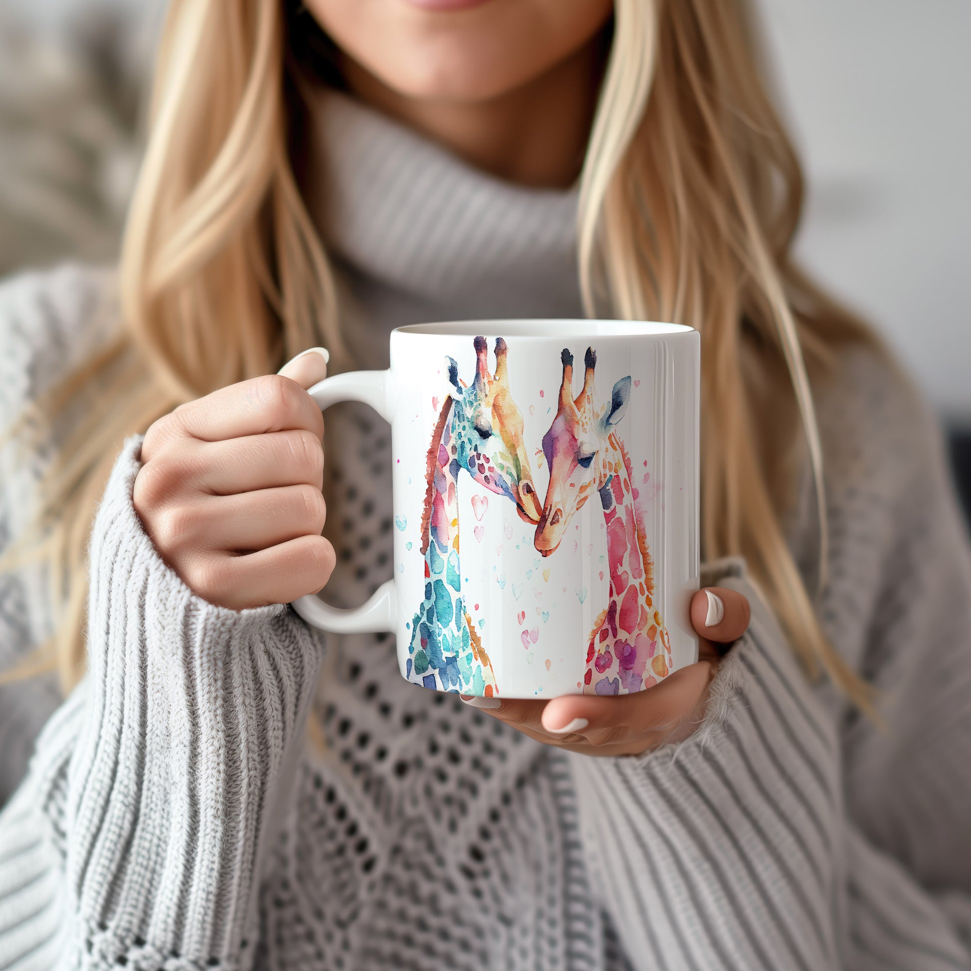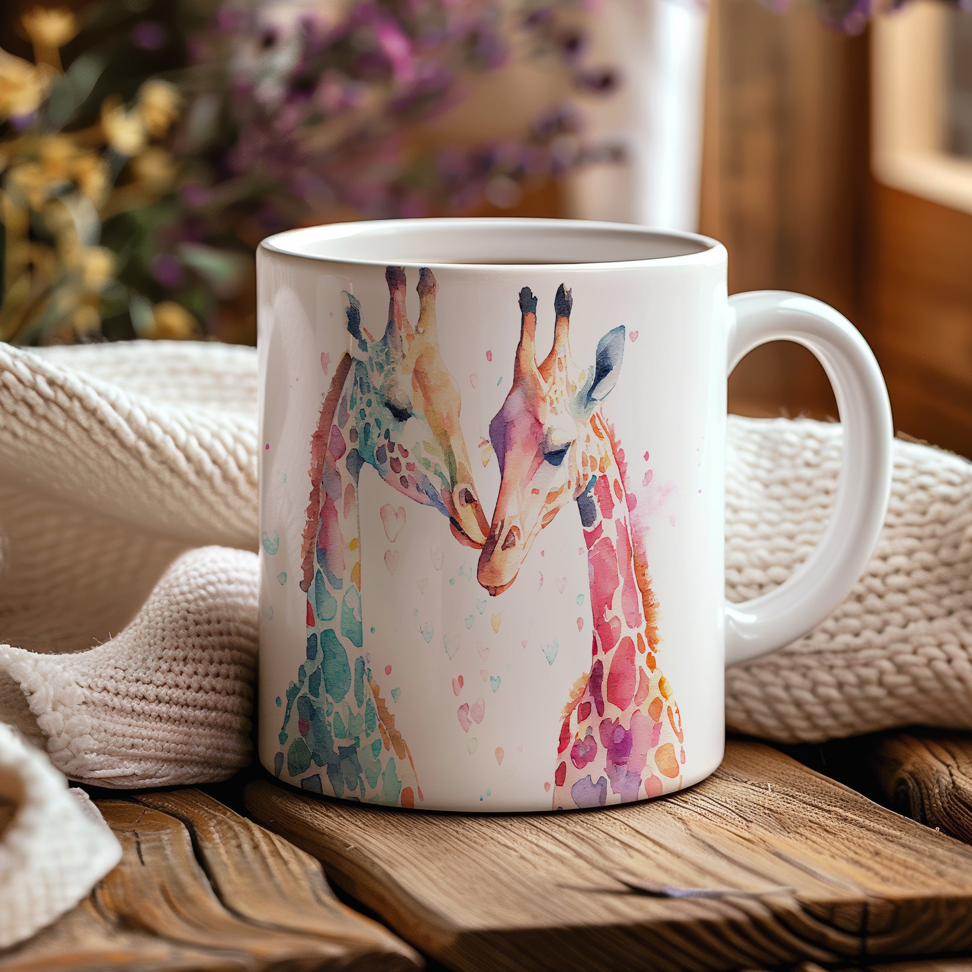 Hrnek s motivem žiraf v láskyplném stylu přináší veselou atmosféru. Je ideální pro milovníky zvířat a skvělým dárkem pro děti i dospělé. Materiál: keramika. Objem: 330 ml. Vhodné do myčky i mikrovlnky. Používáním tohoto hrnku si užijete každé sousto a nápoj s úsměvem.