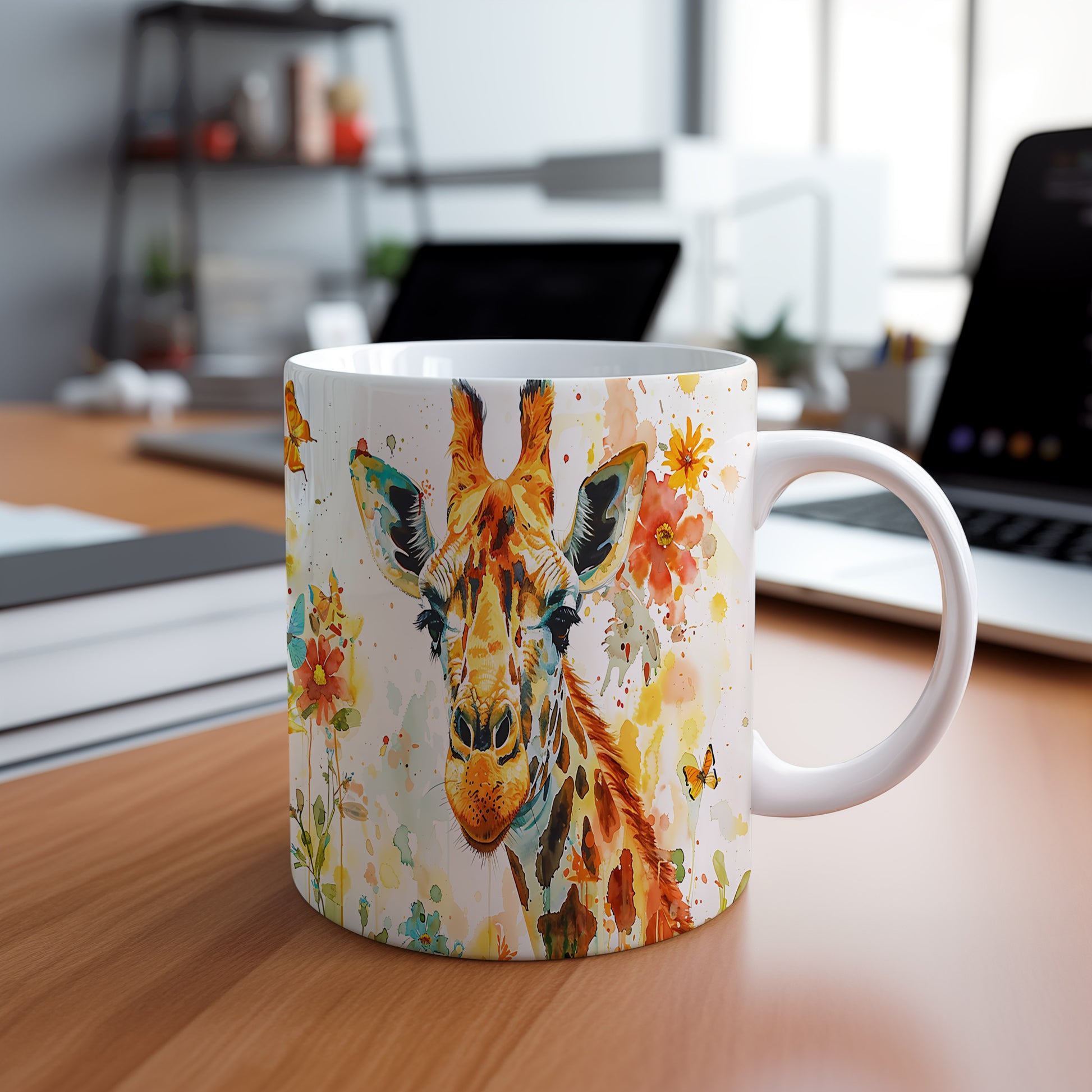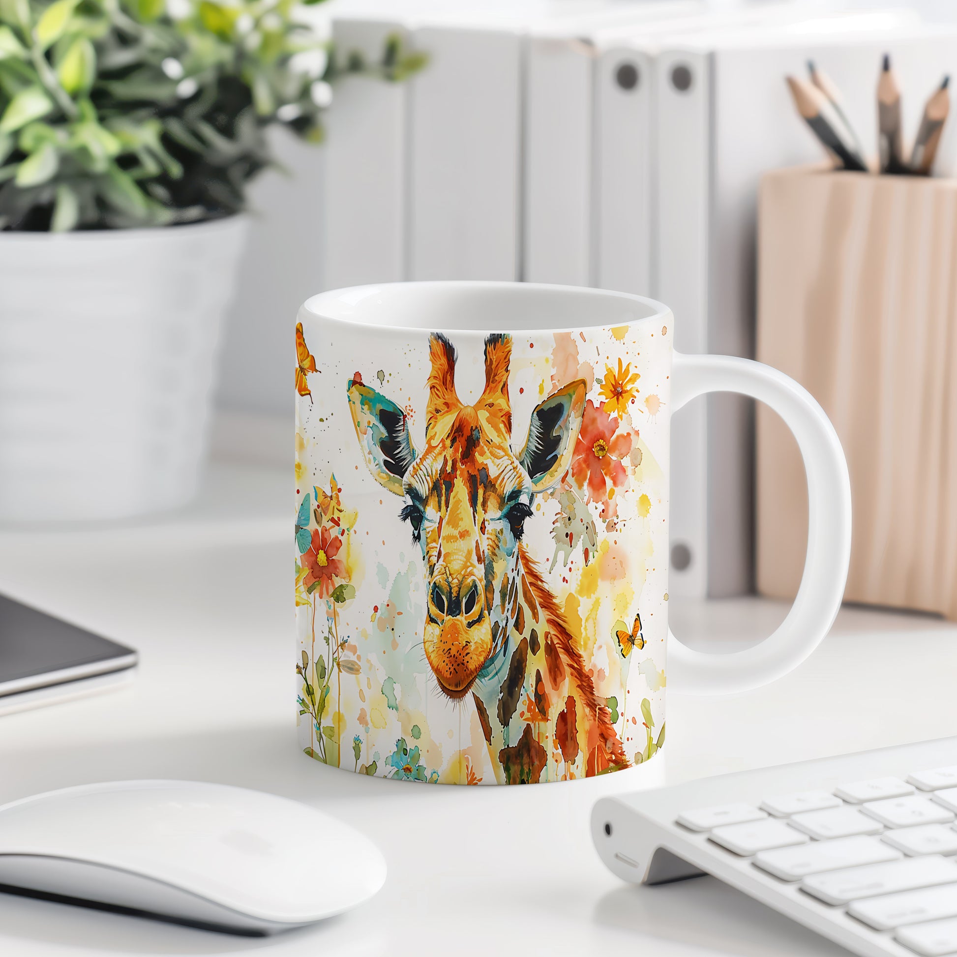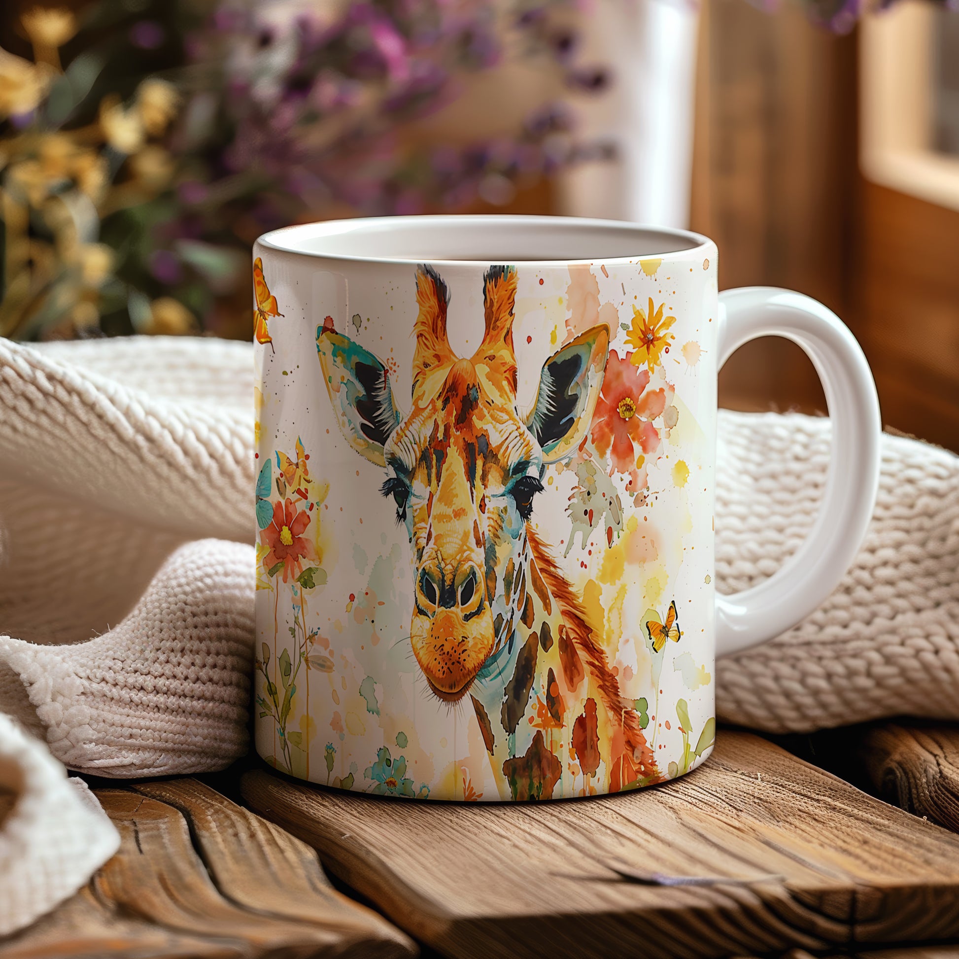 Tento hrnek s motivem žirafy a pestrými květinami přináší radost do každého dne. Je ideální pro milovníky zvířat a přírody, skvělý tip na dárek pro přátele nebo rodinu. Materiál: keramika. Objem: 330 ml. Vhodné do myčky i mikrovlnky. Užijte si svůj oblíbený nápoj s tímto stylovým hrnkem, který dodá každému okamžiku šmrnc.