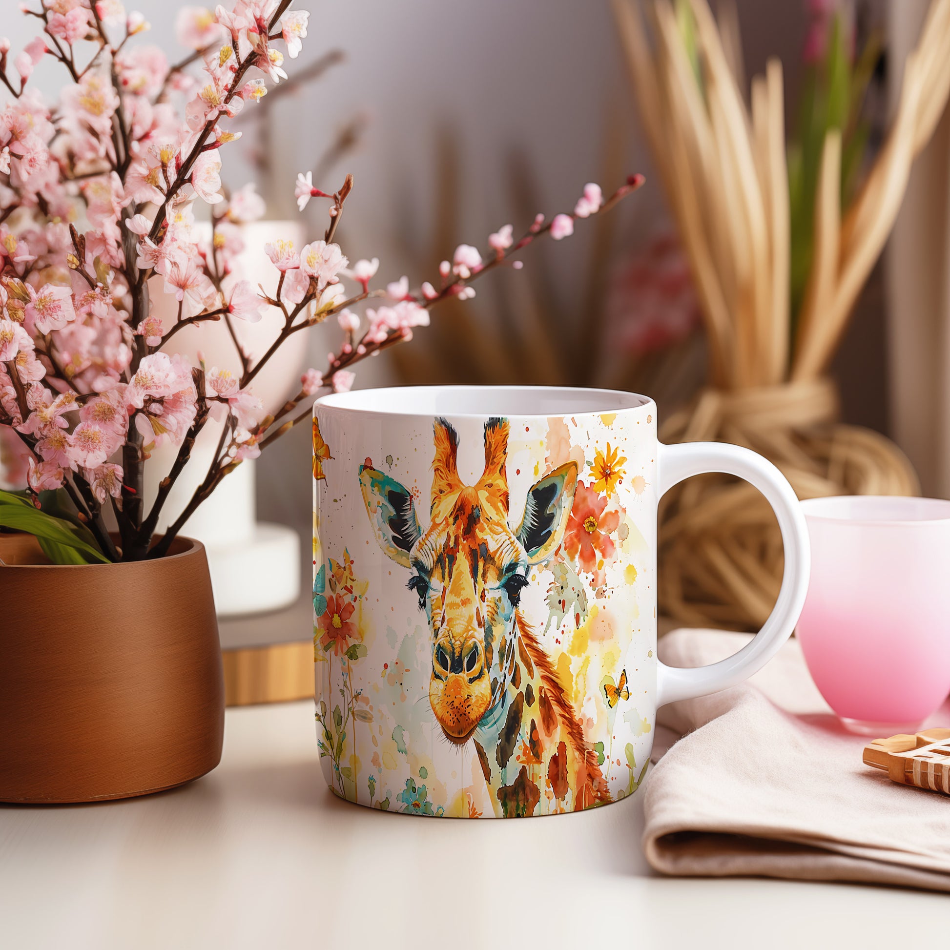 Hrnek se žirafou a barevným vzorem