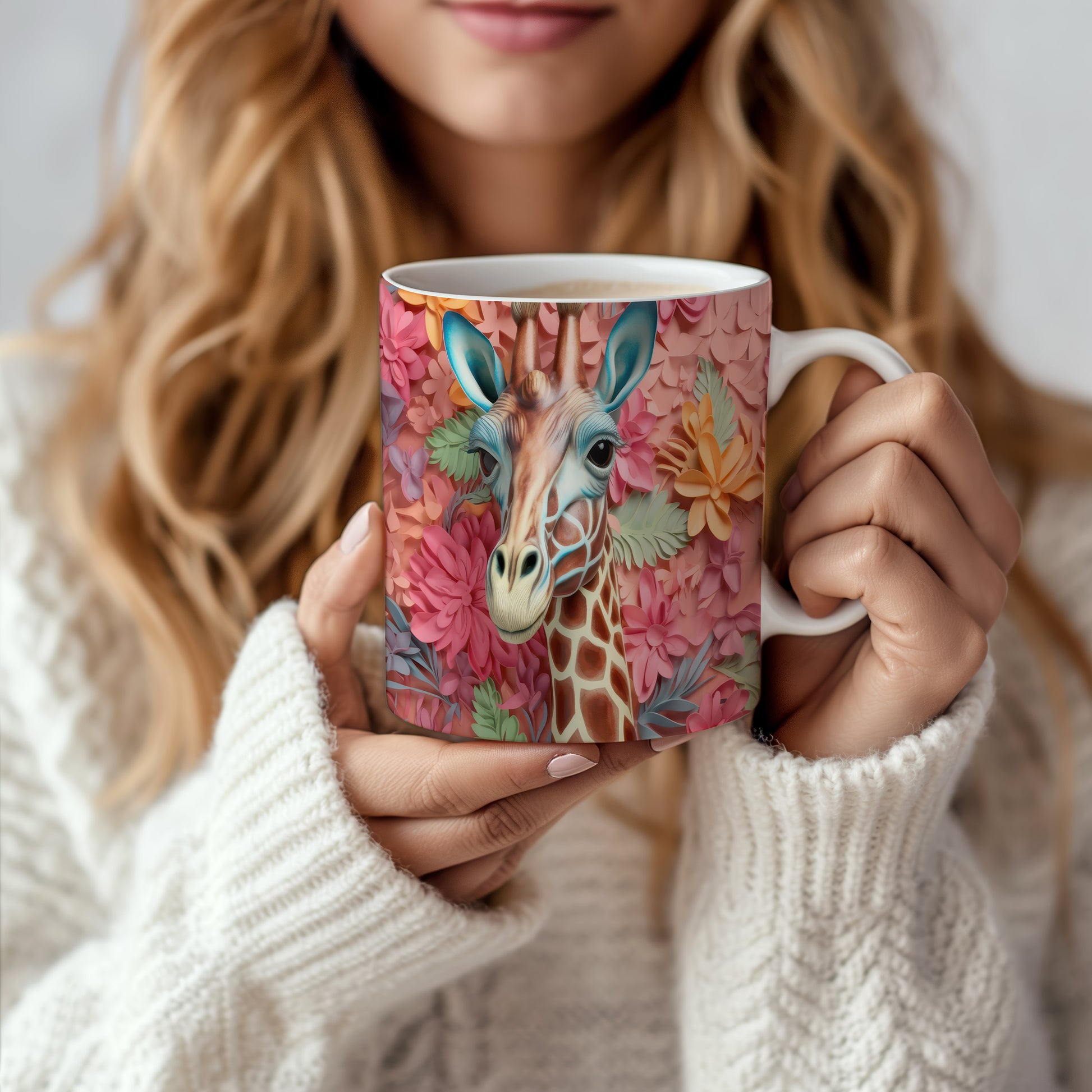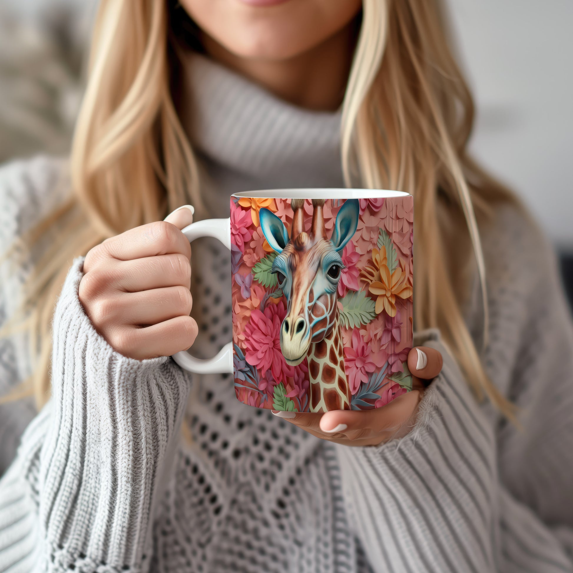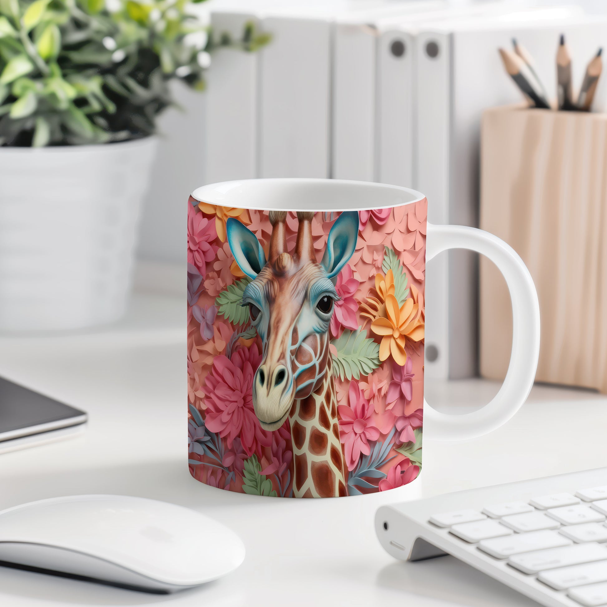 Tento hrnek zobrazuje žirafu obklopenou barevnými květinami, ideální pro milovníky přírody a zvířat. Skvělý tip na dárek pro přátele nebo rodinu, kteří ocení originální design. Materiál: keramika. Objem: 330 ml. Vhodné do myčky i mikrovlnky. Používání tohoto hrnku přidá každému dni šmrnc a radost.