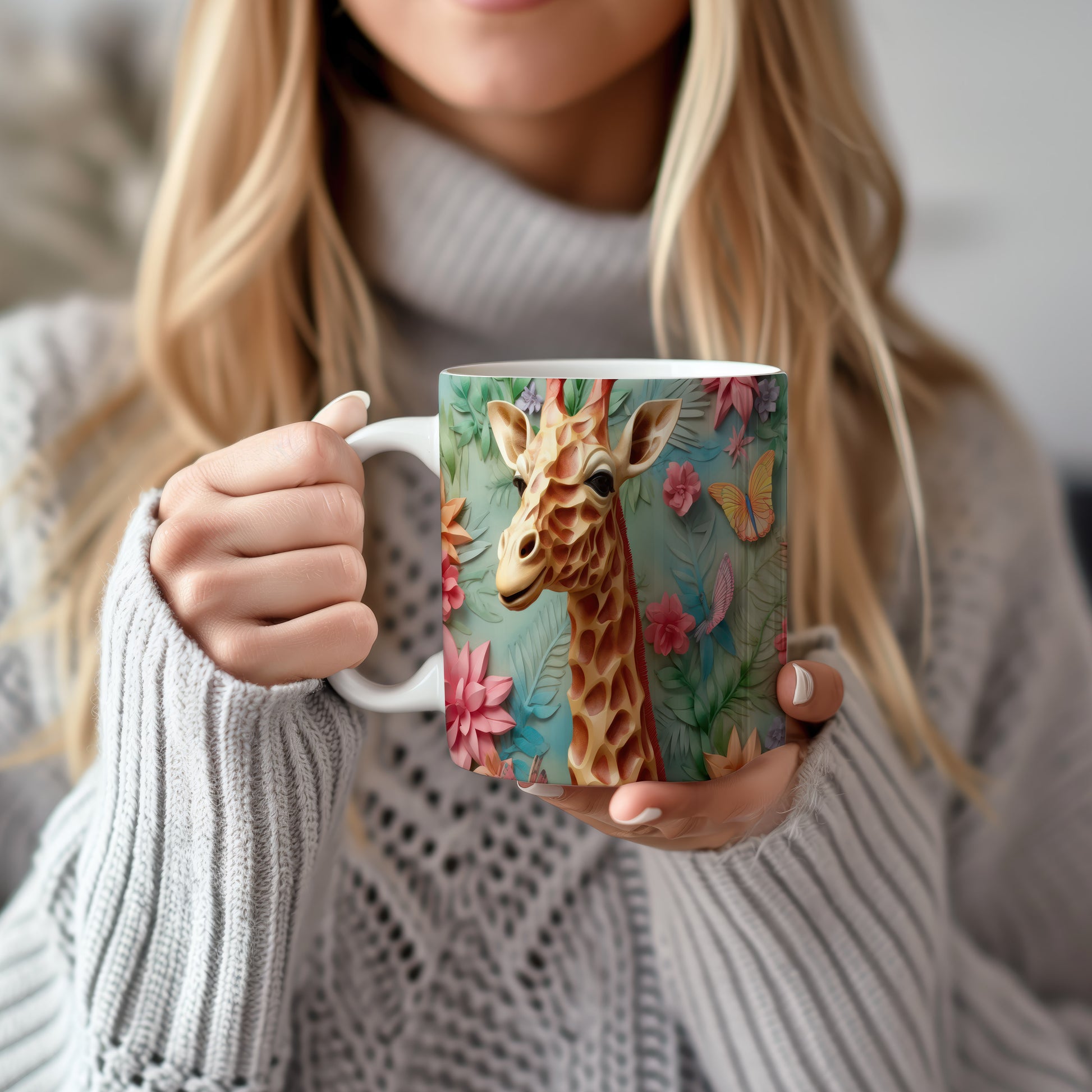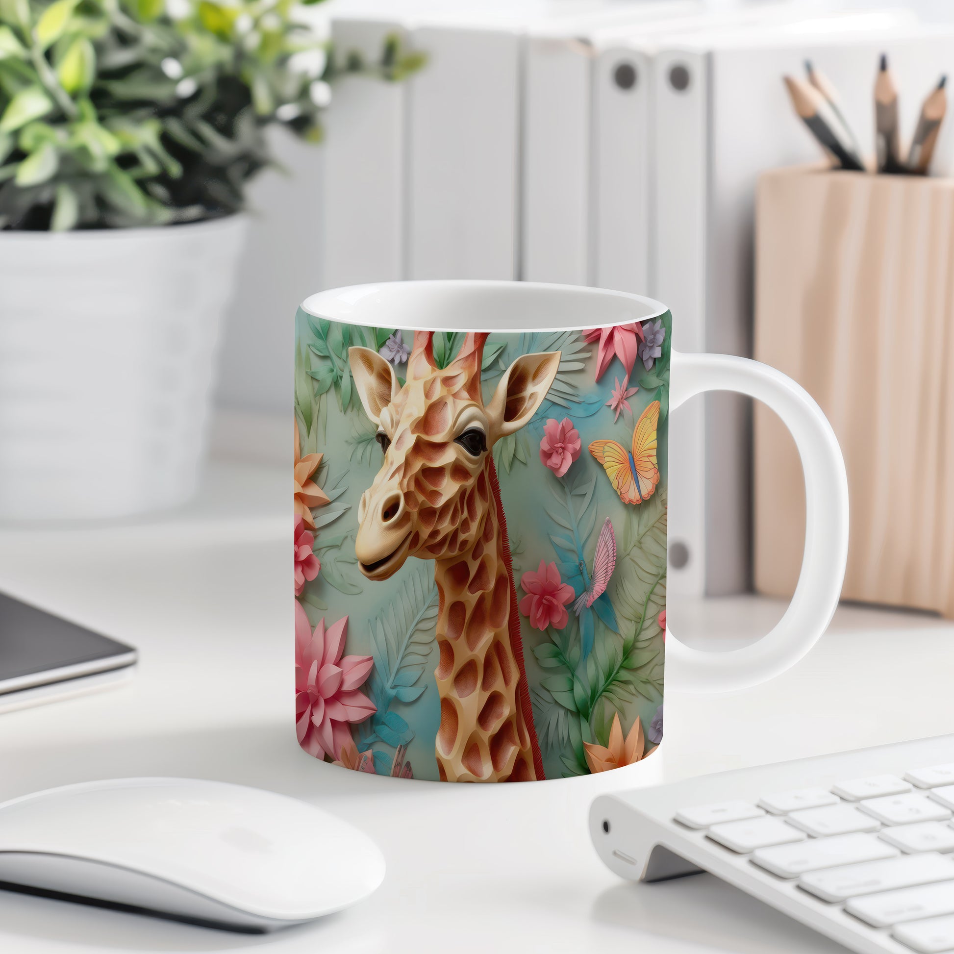 Keramický hrnek s motivem žirafy obklopené barevnými květinami. Tento hrnek je ideální pro milovníky přírody a skvělým dárkem pro přátele či rodinu. Materiál: keramika. Objem: 330 ml. Vhodné do myčky i mikrovlnky. Díky svému designu přináší radost do každodenního pití.