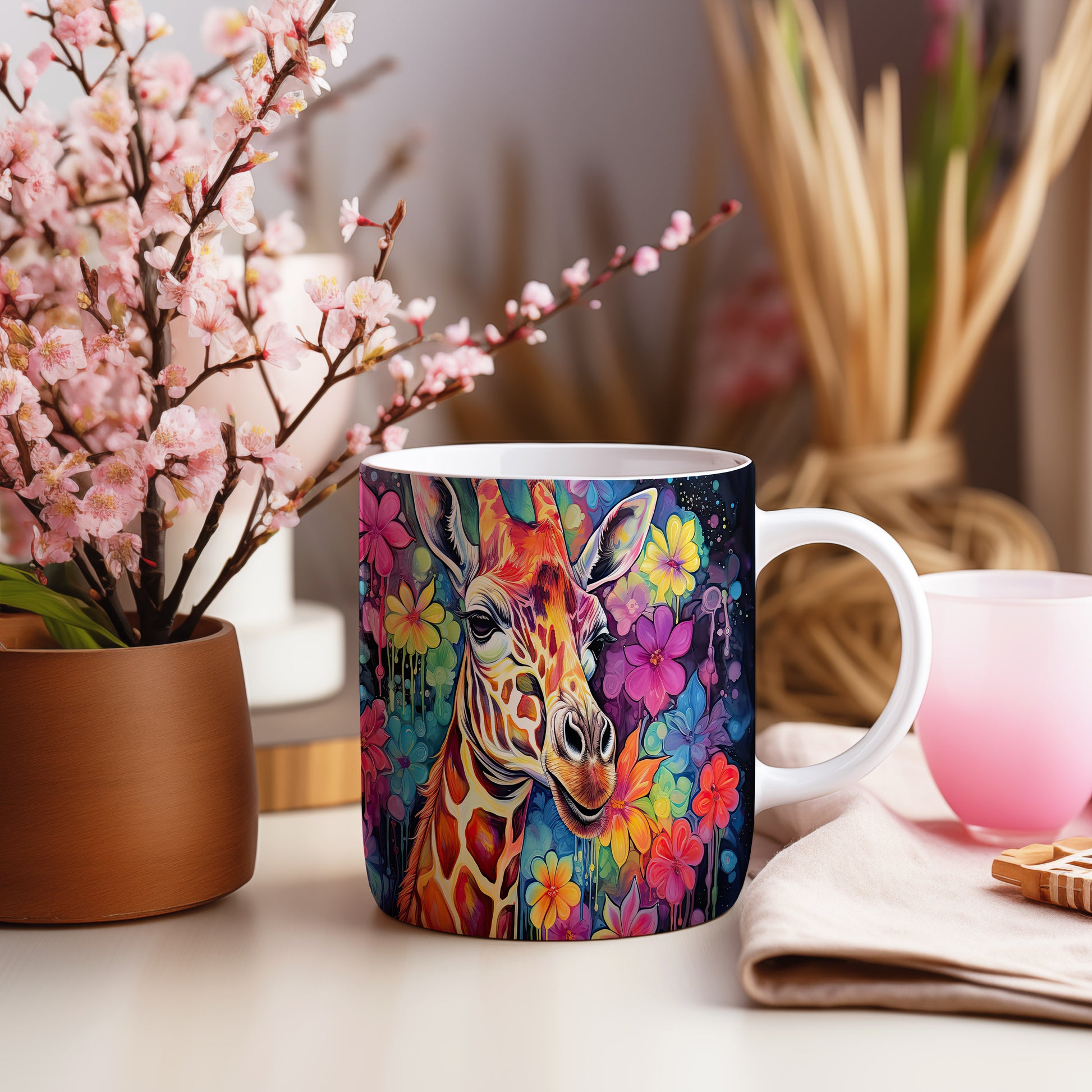 Tento keramický hrnek s motivem žirafy a květin je skvělým doplňkem pro milovníky zvířat a přírody. Je ideální jako dárek pro přátele nebo rodinu, kteří ocení originální design. Materiál: keramika. Objem: 330 ml. Vhodné do myčky i mikrovlnky. Používání tohoto hrnku přináší radost z každého doušku.