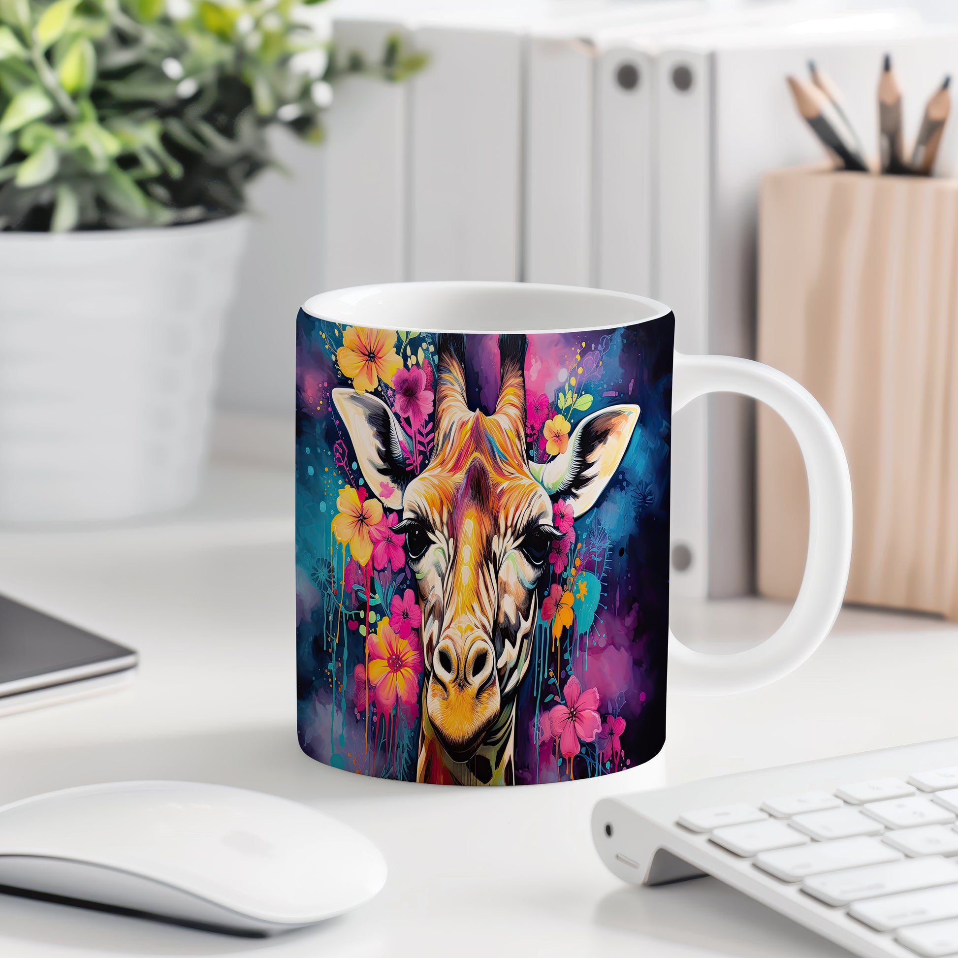 Hrnek se žirafou a květinovým motivem potěší všechny milovníky zvířat a přírody. Je skvělým dárkem pro přátele či rodinu, kteří ocení originální design. Materiál: keramika. Objem: 330 ml. Vhodné do myčky i mikrovlnky. Tento hrnek přináší radost při každém doušku oblíbeného nápoje.