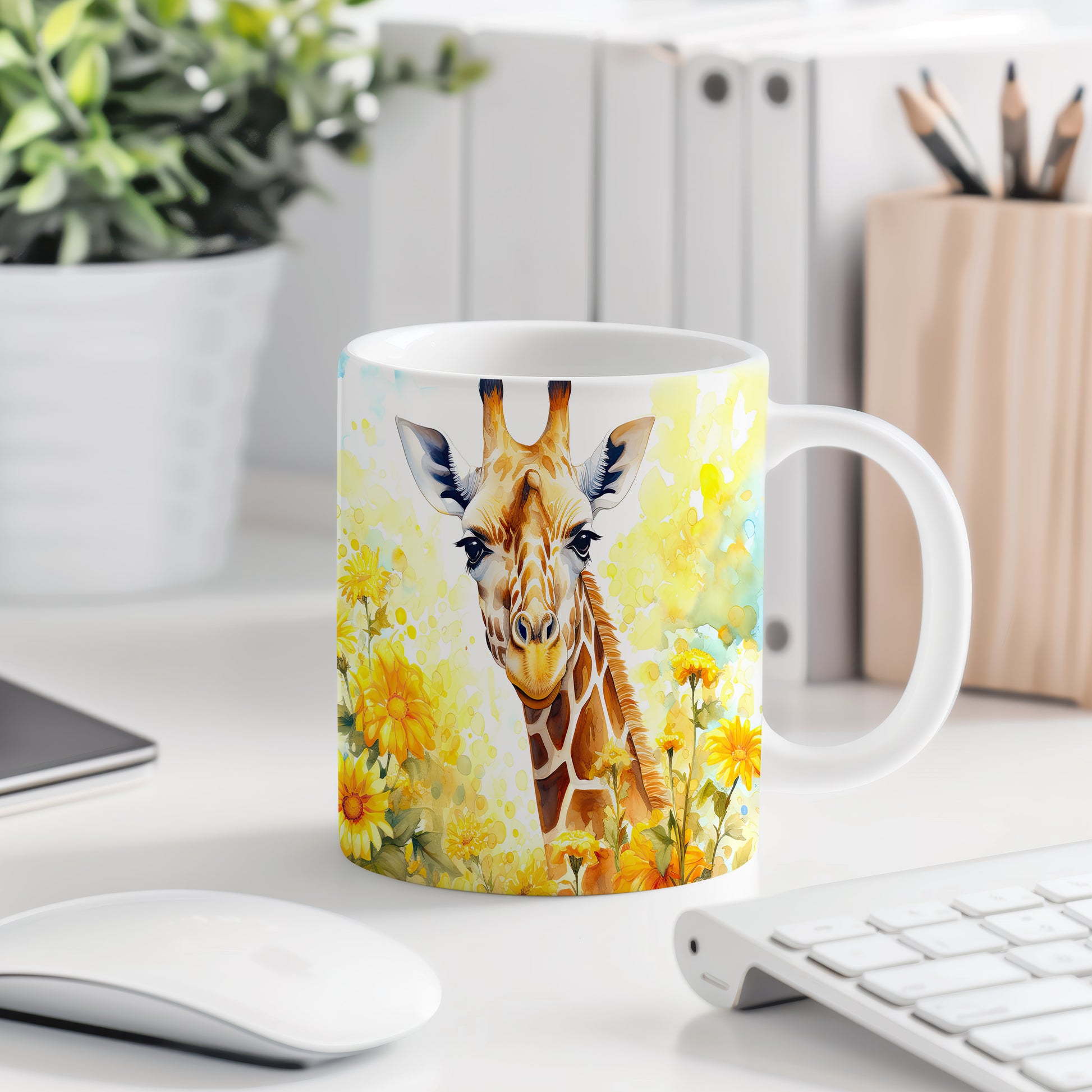 Tento hrnek zobrazuje žirafu obklopenou květinami v jemných odstínech. Je ideální pro milovníky zvířat a přírody, skvělý tip na dárek pro přátele nebo rodinu. Materiál: keramika. Objem: 330 ml. Vhodné do myčky i mikrovlnky. Užívejte si kávu nebo čaj s tímto originálním kouskem, který přinese radost do každého dne.