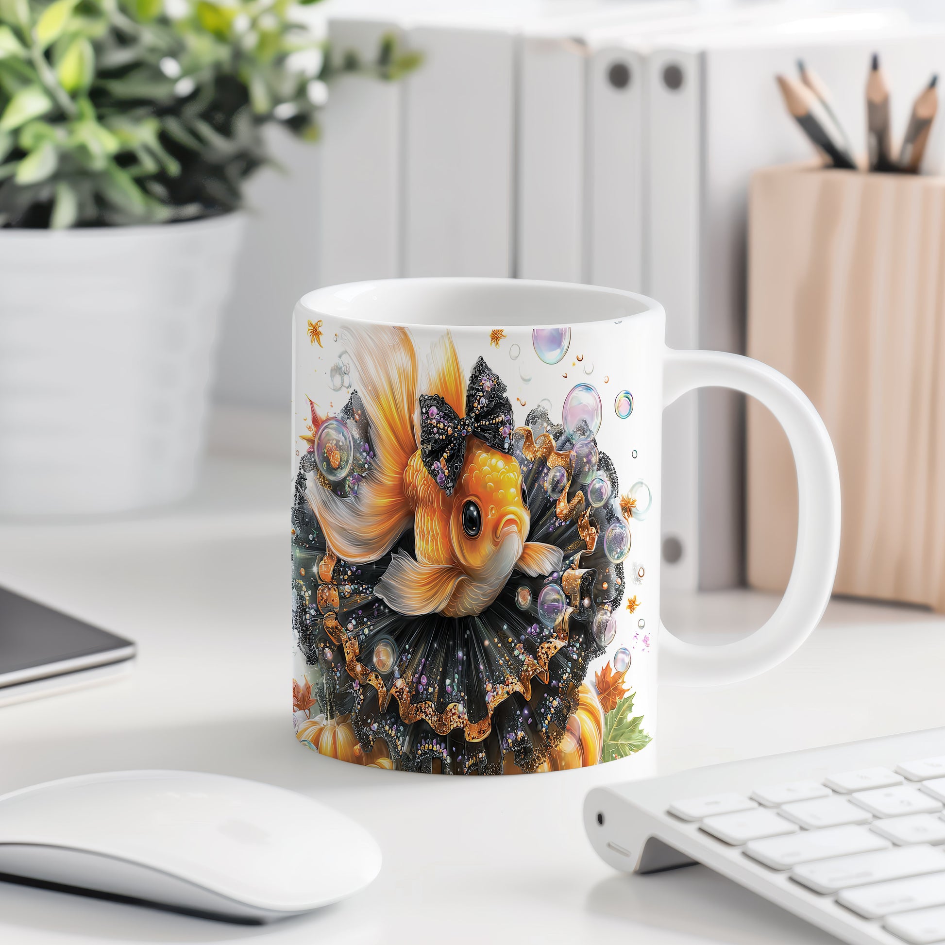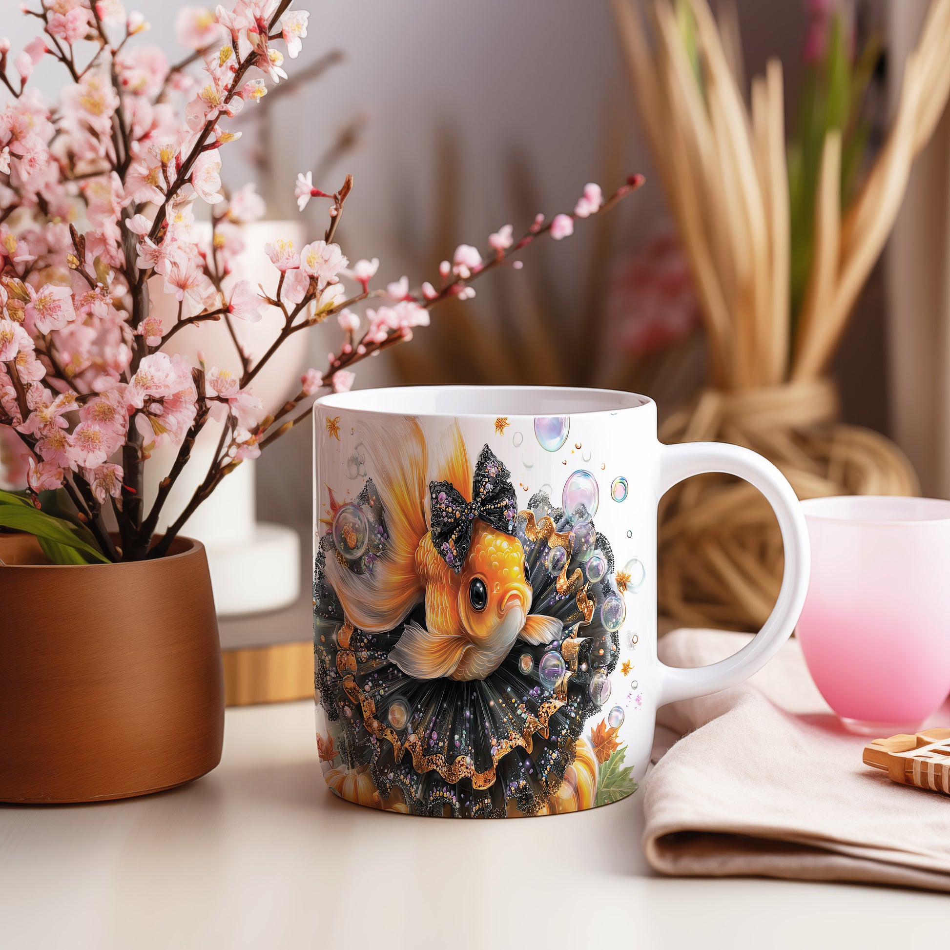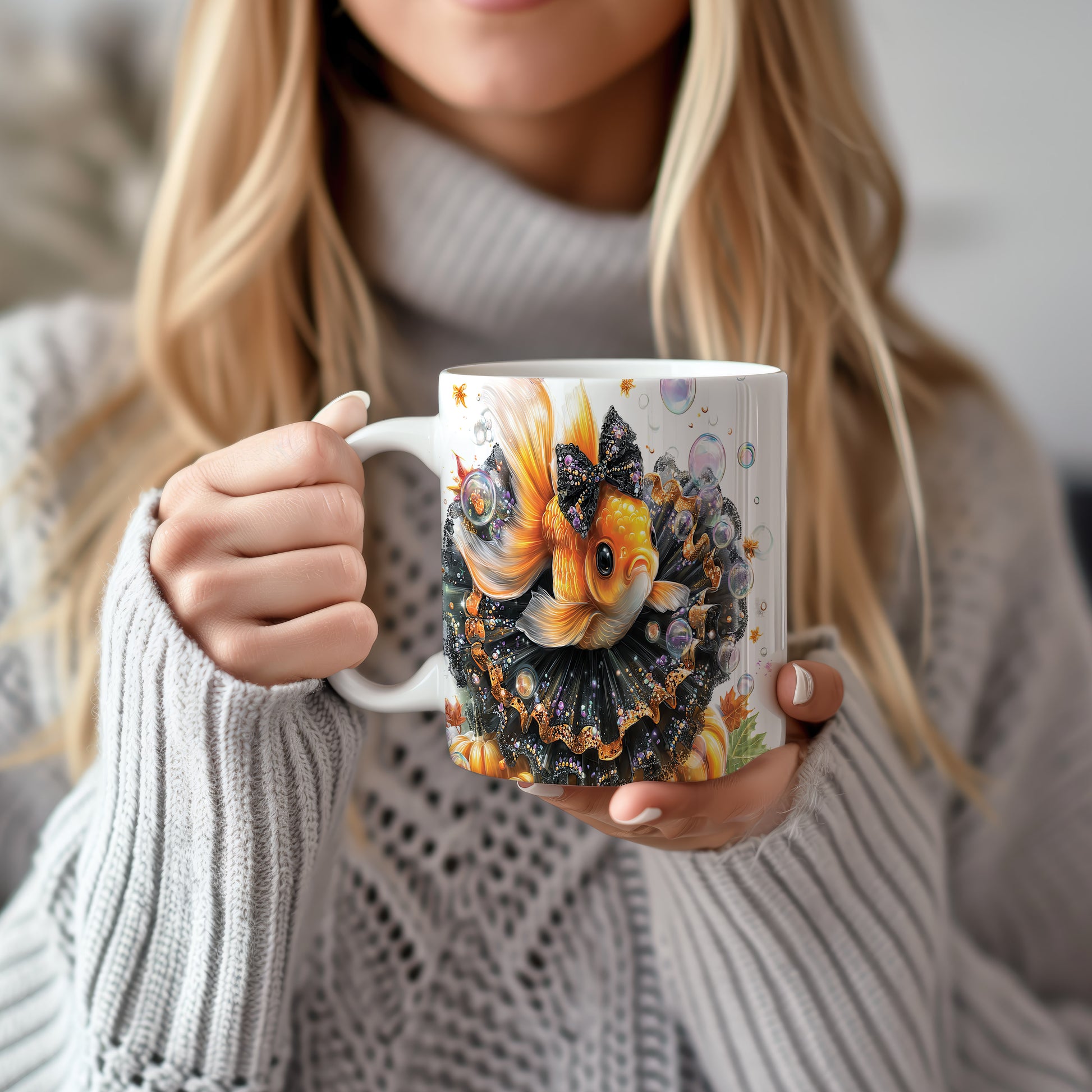 Tento keramický hrnek zobrazuje zlatou rybku v elegantním outfitu. Je ideální pro milovníky akvaristiky a ryb, skvělý tip na dárek pro každého, kdo má rád vodní svět. Materiál: keramika. Objem: 330 ml. Vhodné do myčky i mikrovlnky. Díky svému designu přináší do každodenního pití radost a styl.